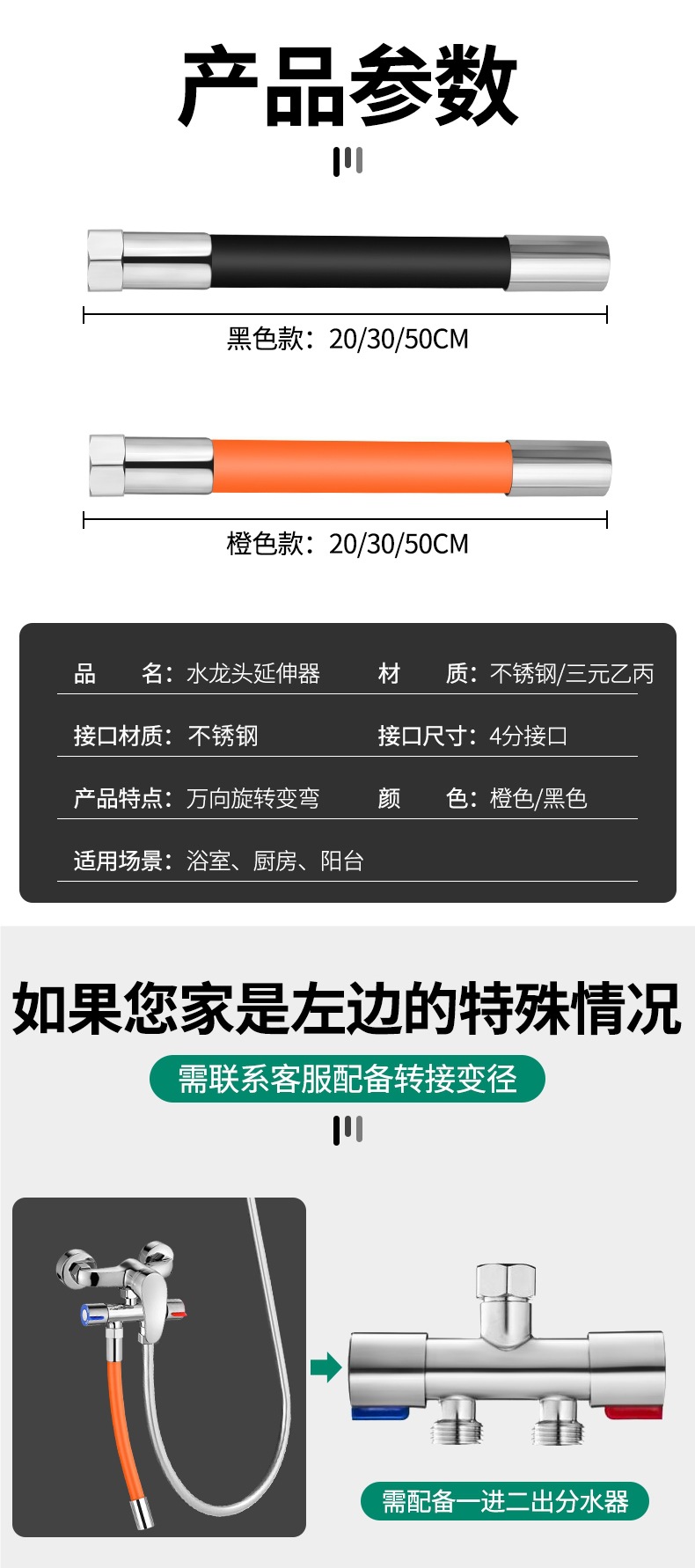 • 【30cm】수전 확장기 + 미세 치아 어댑터◆검은색