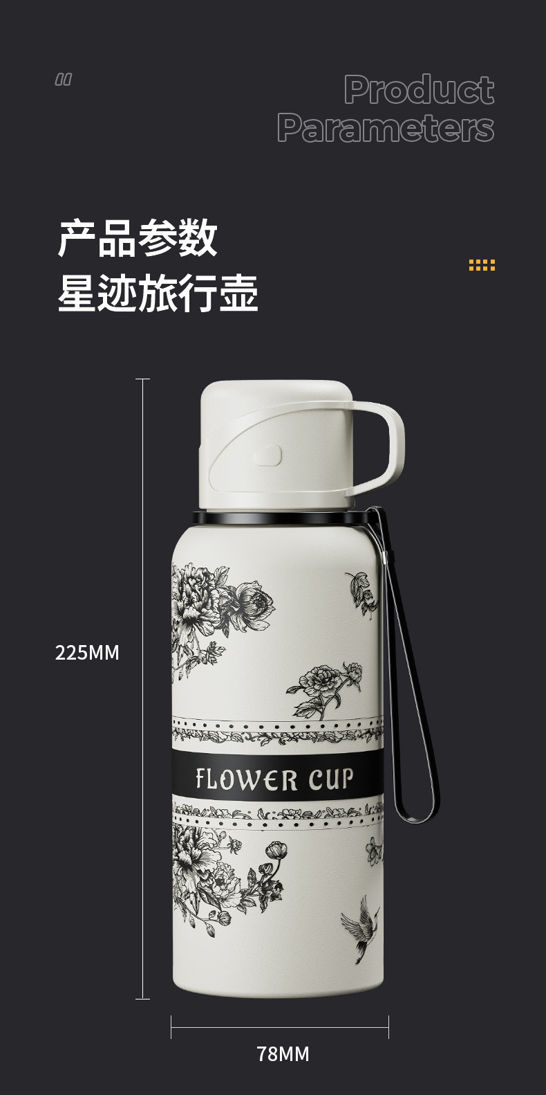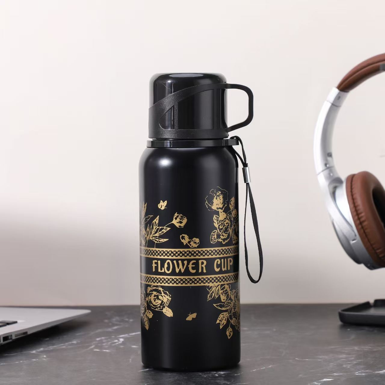 새로운 Gardenia 보온병 컵 316 스테인레스 스틸 대용량 물 컵 야외 휴대용 고가 소녀 티 컵