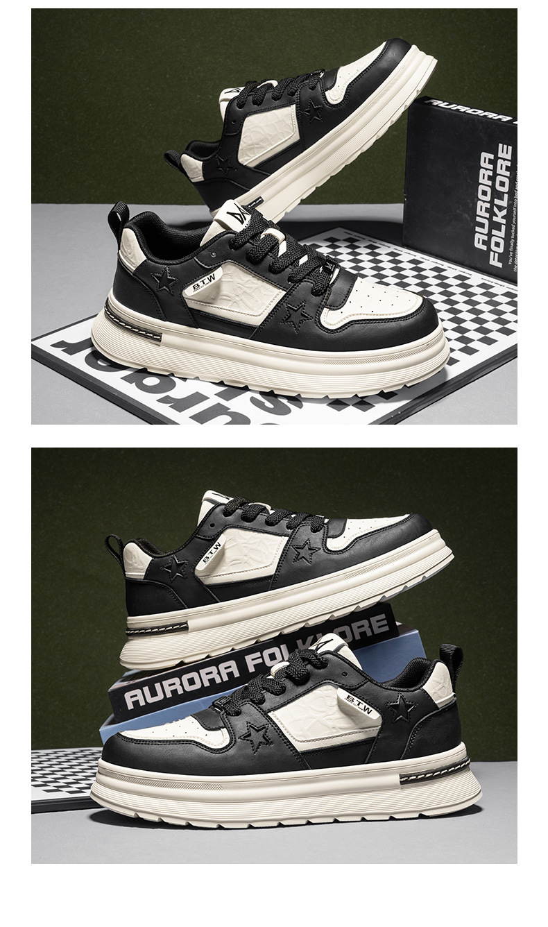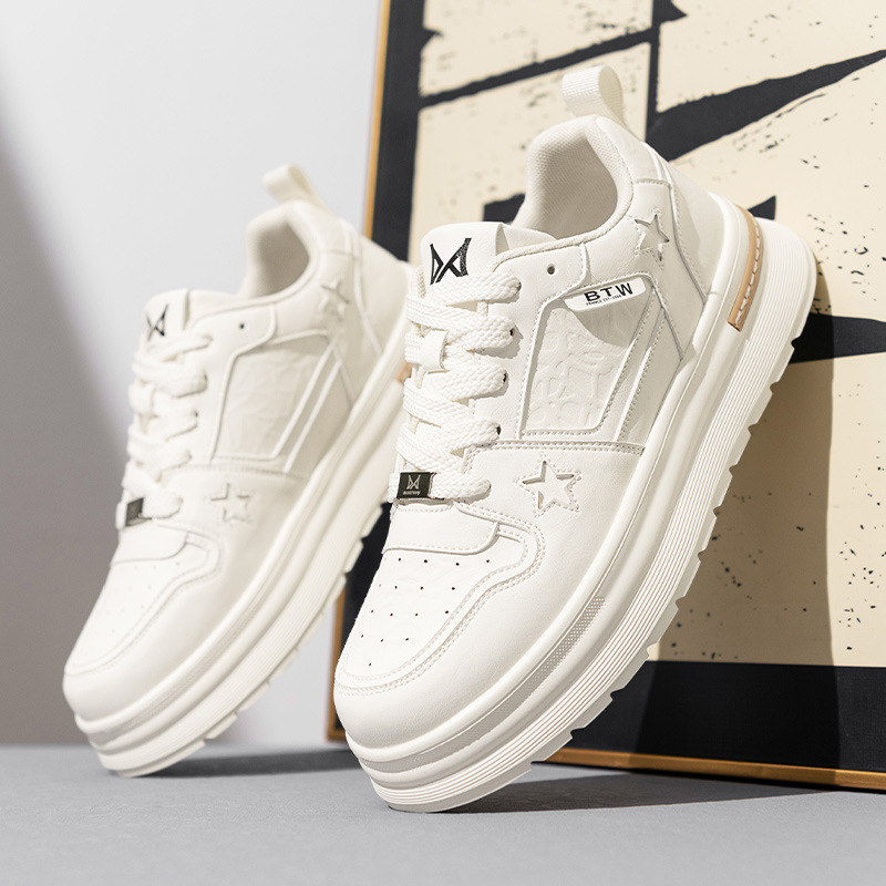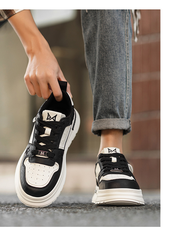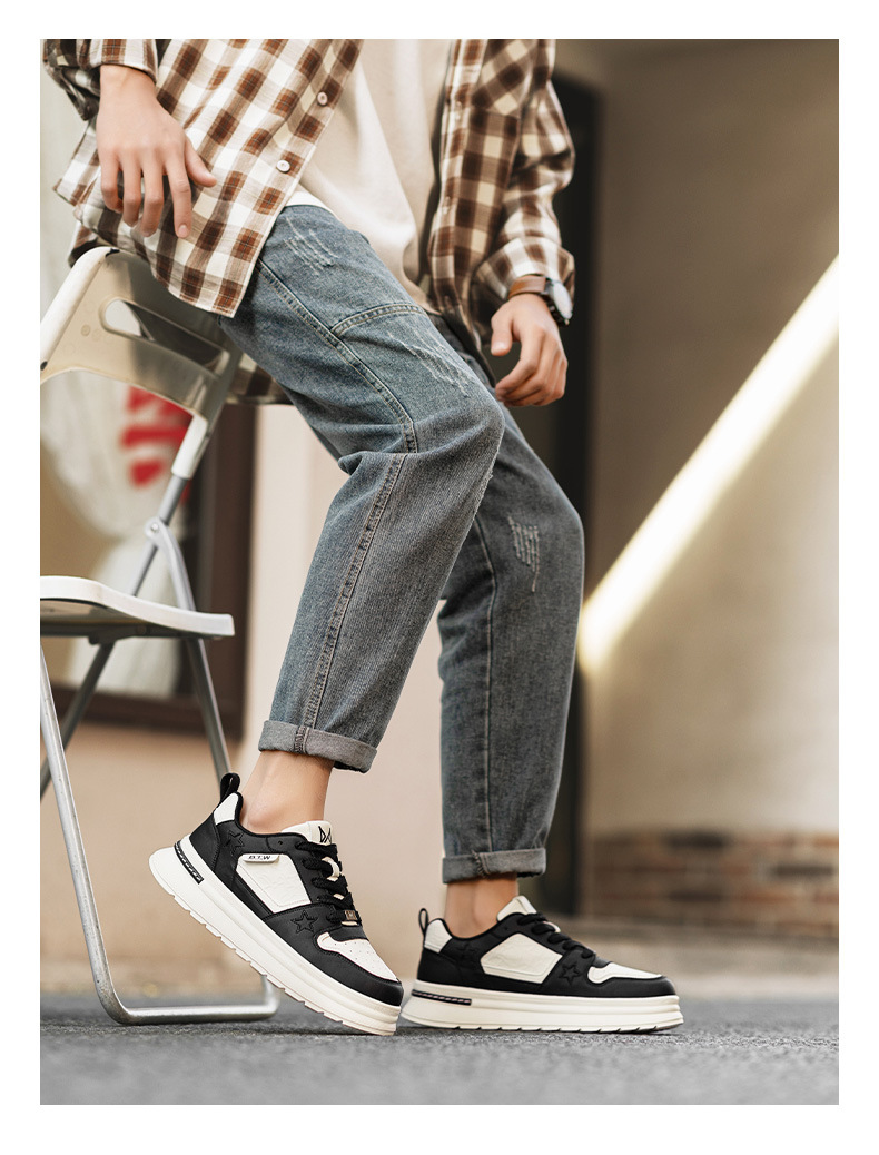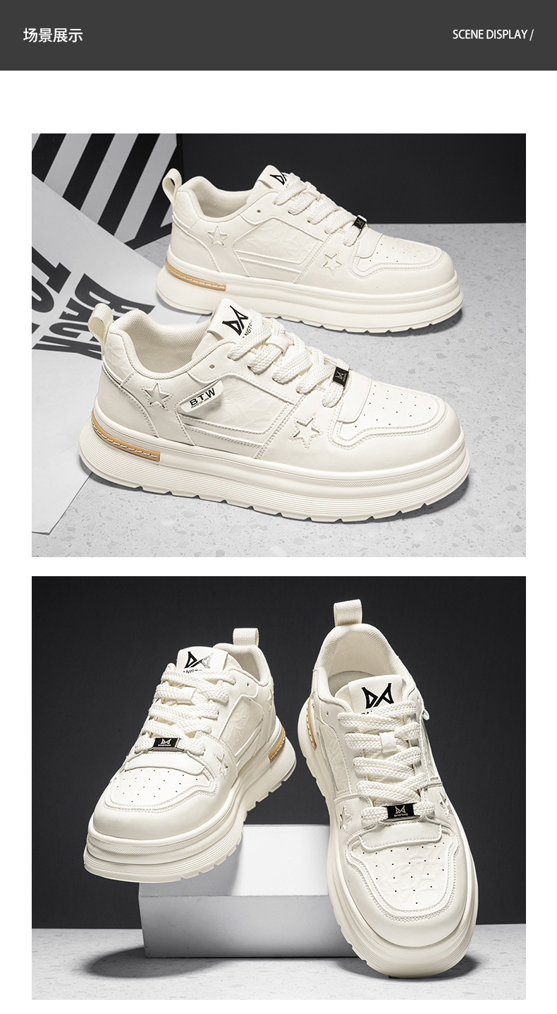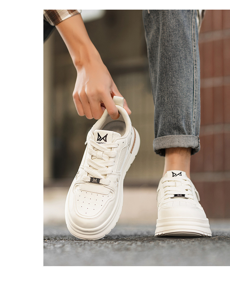 남성 신발 2025 새로운 봄 패션 브랜드 올 매치 스포츠 캐주얼 스니커즈 남성 가죽 탑 두꺼운 단독 증가 흰색 신발스토어 가기