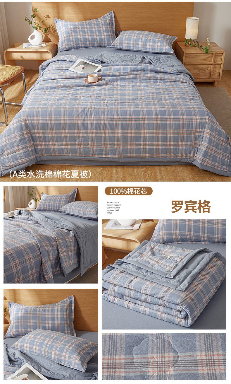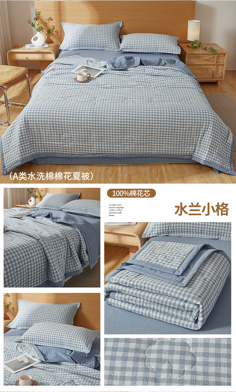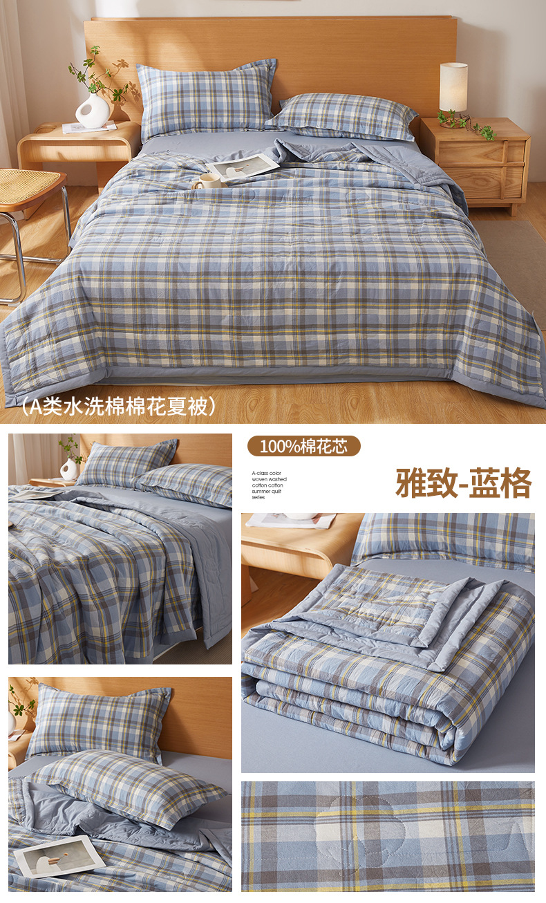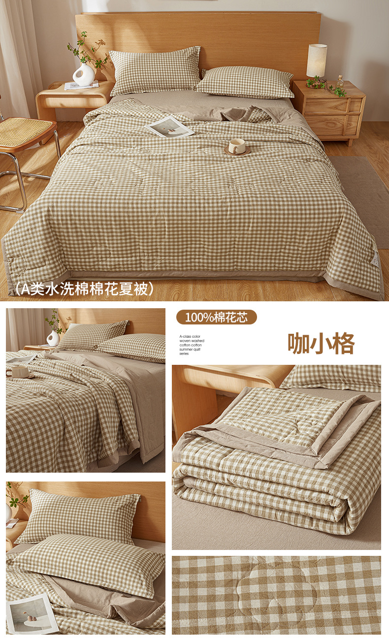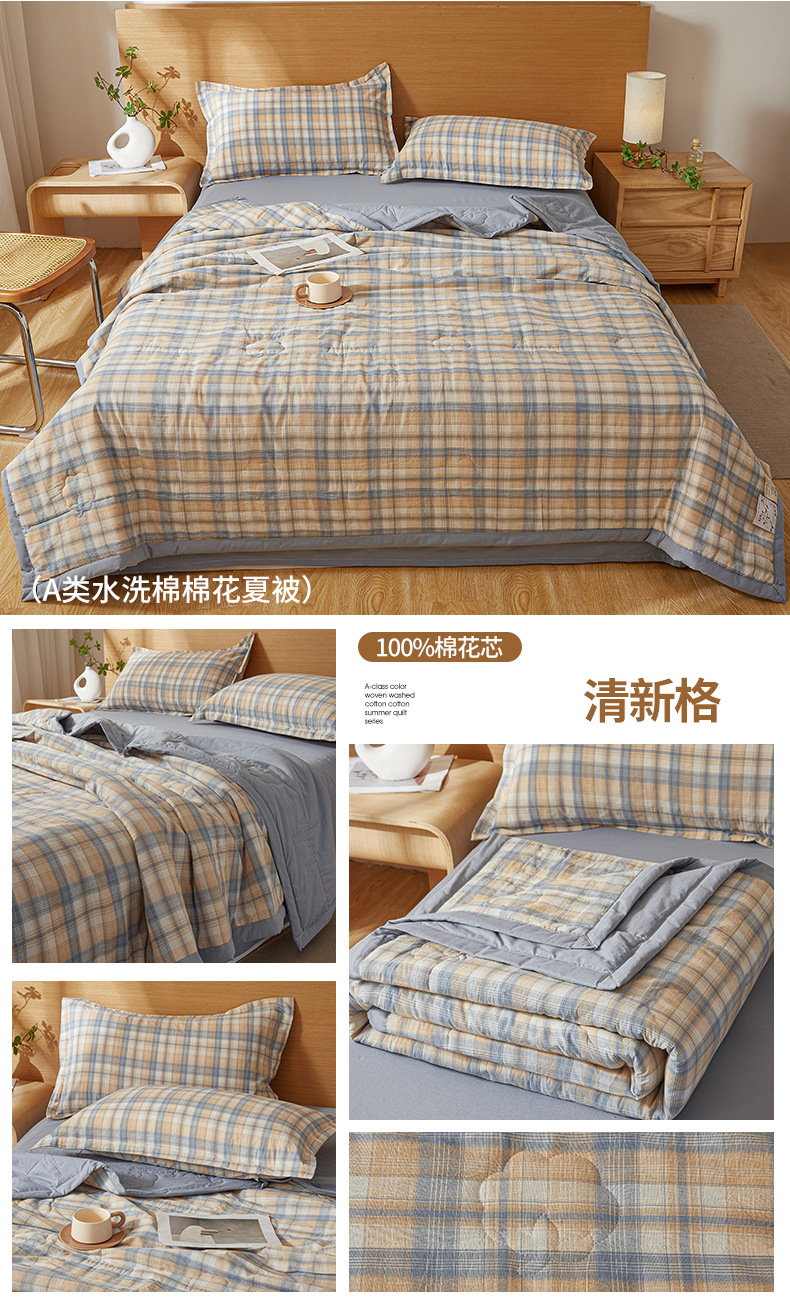 A급 100% 신장산 면 여름 이불, 워싱 면 에어컨 이불, 학생 기숙사 체크무늬 여름 이불, 여름용 얇은 이불