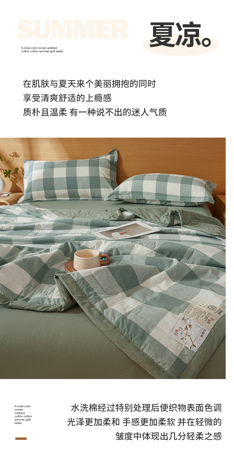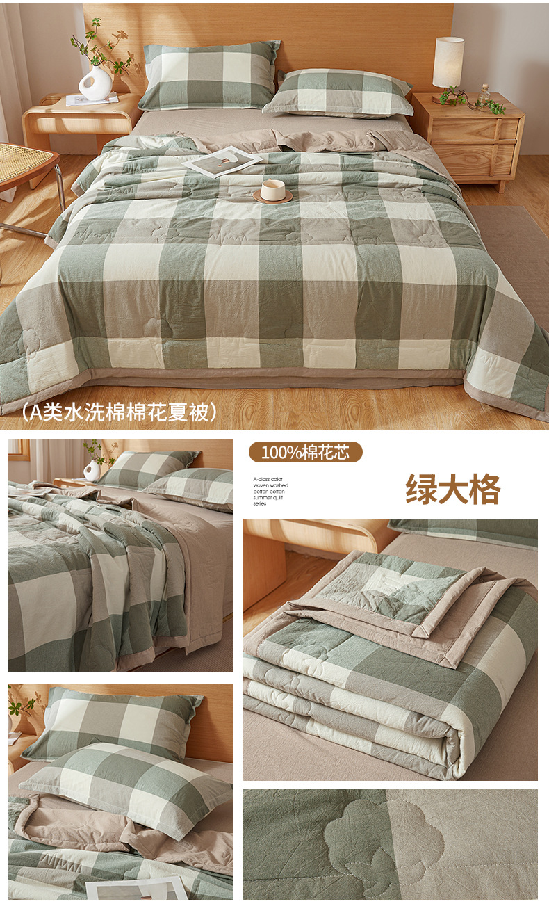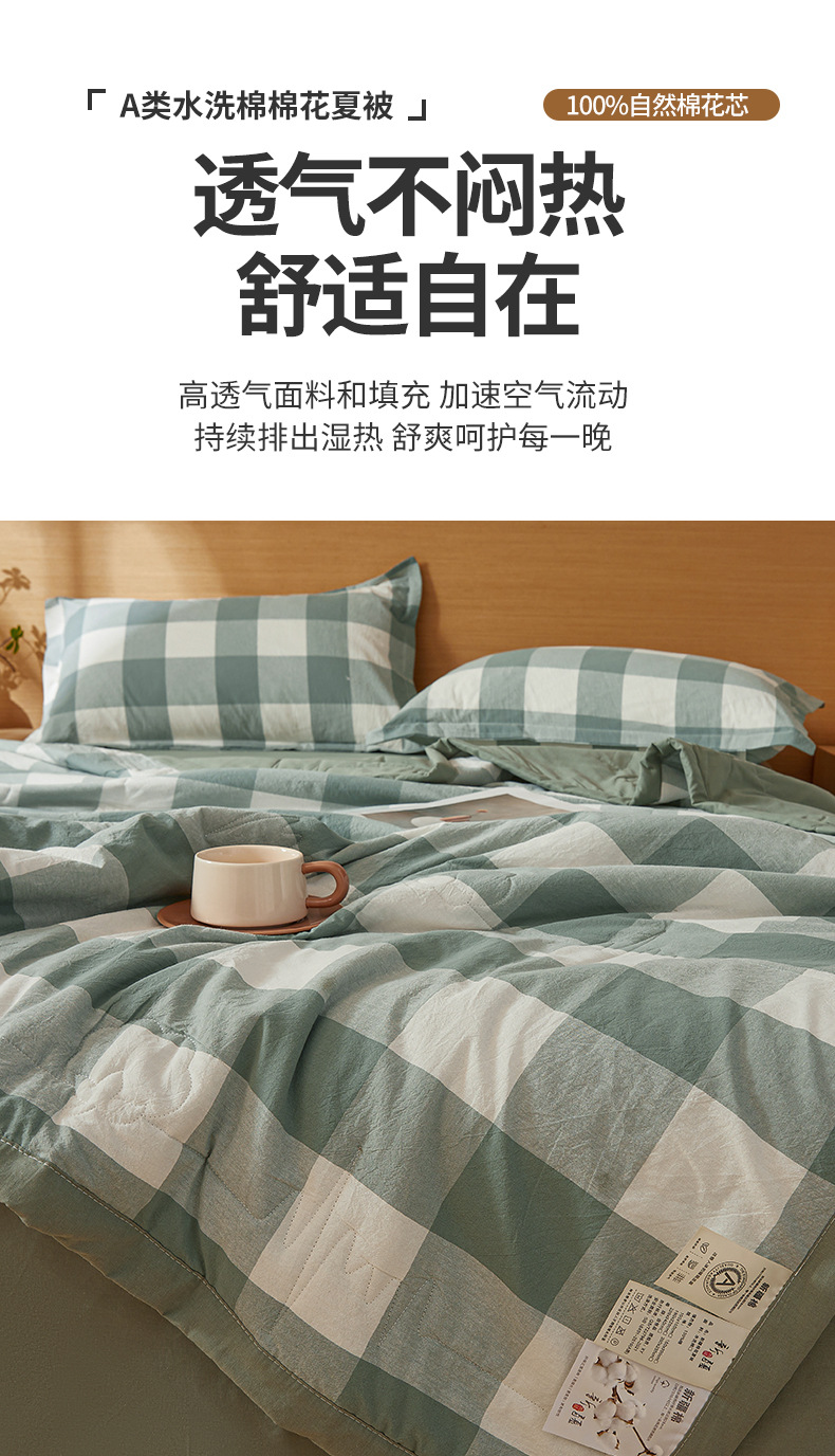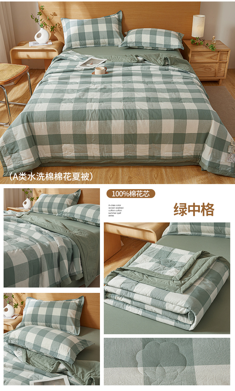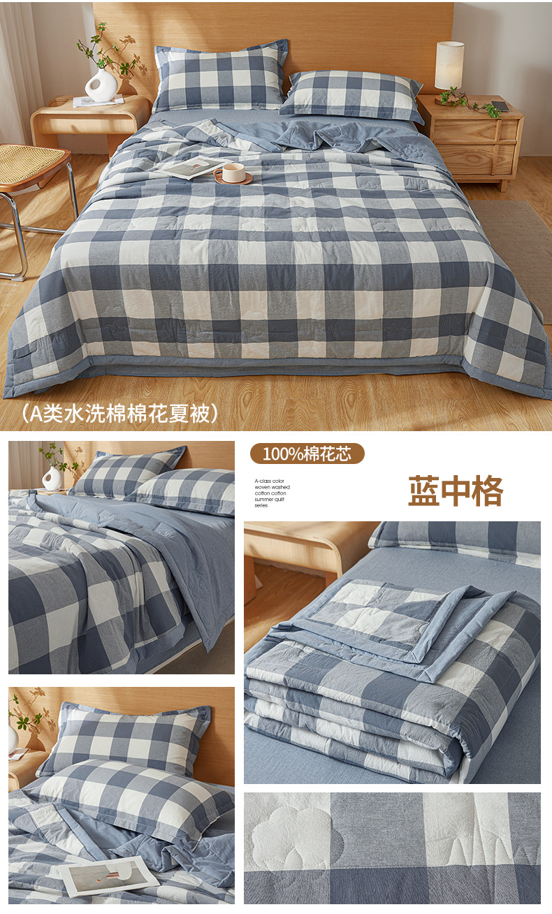 A급 100% 신장산 면 여름 이불, 워싱 면 에어컨 이불, 학생 기숙사 체크무늬 여름 이불, 여름용 얇은 이불