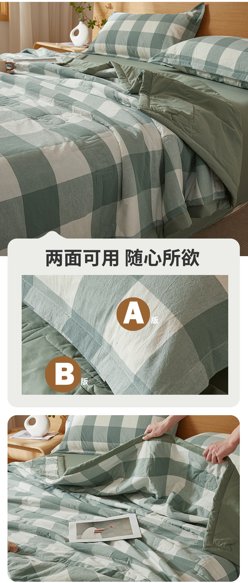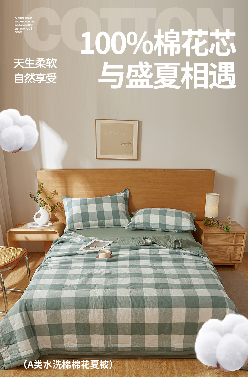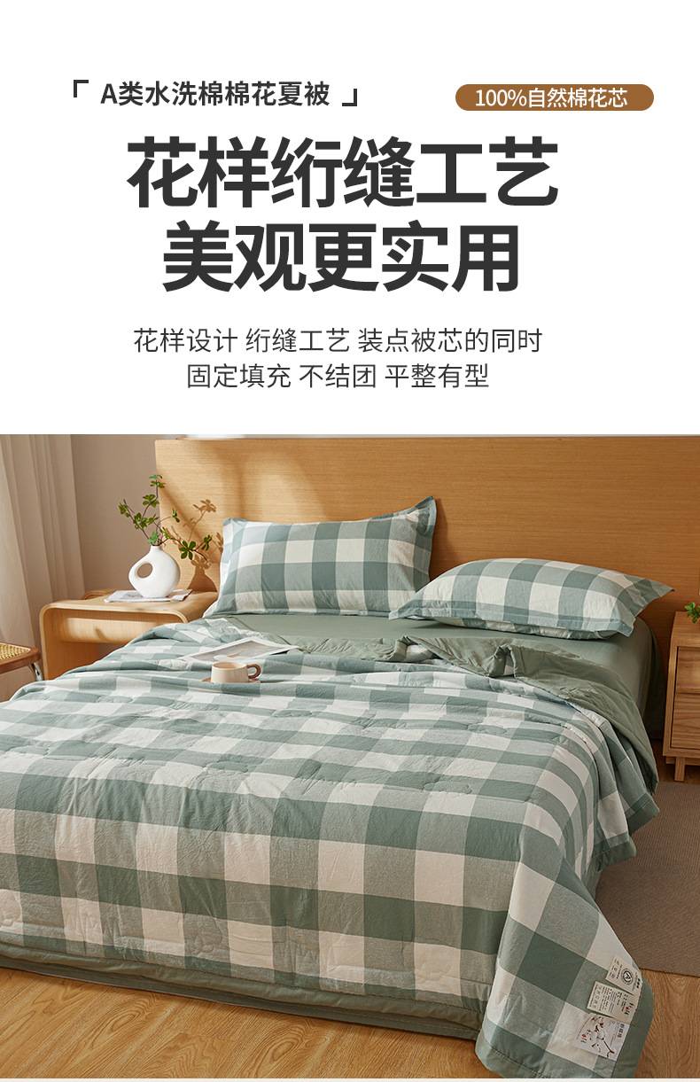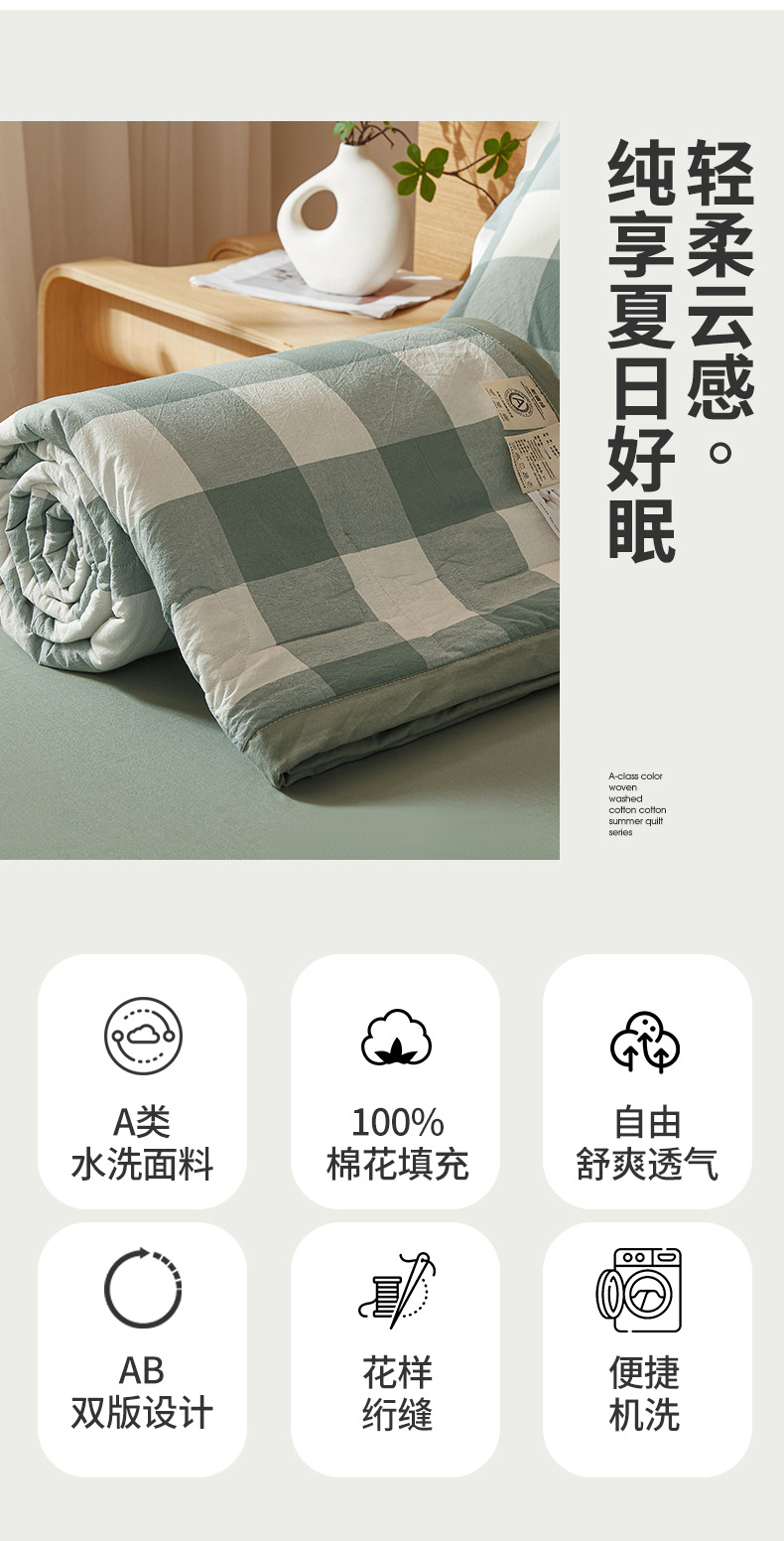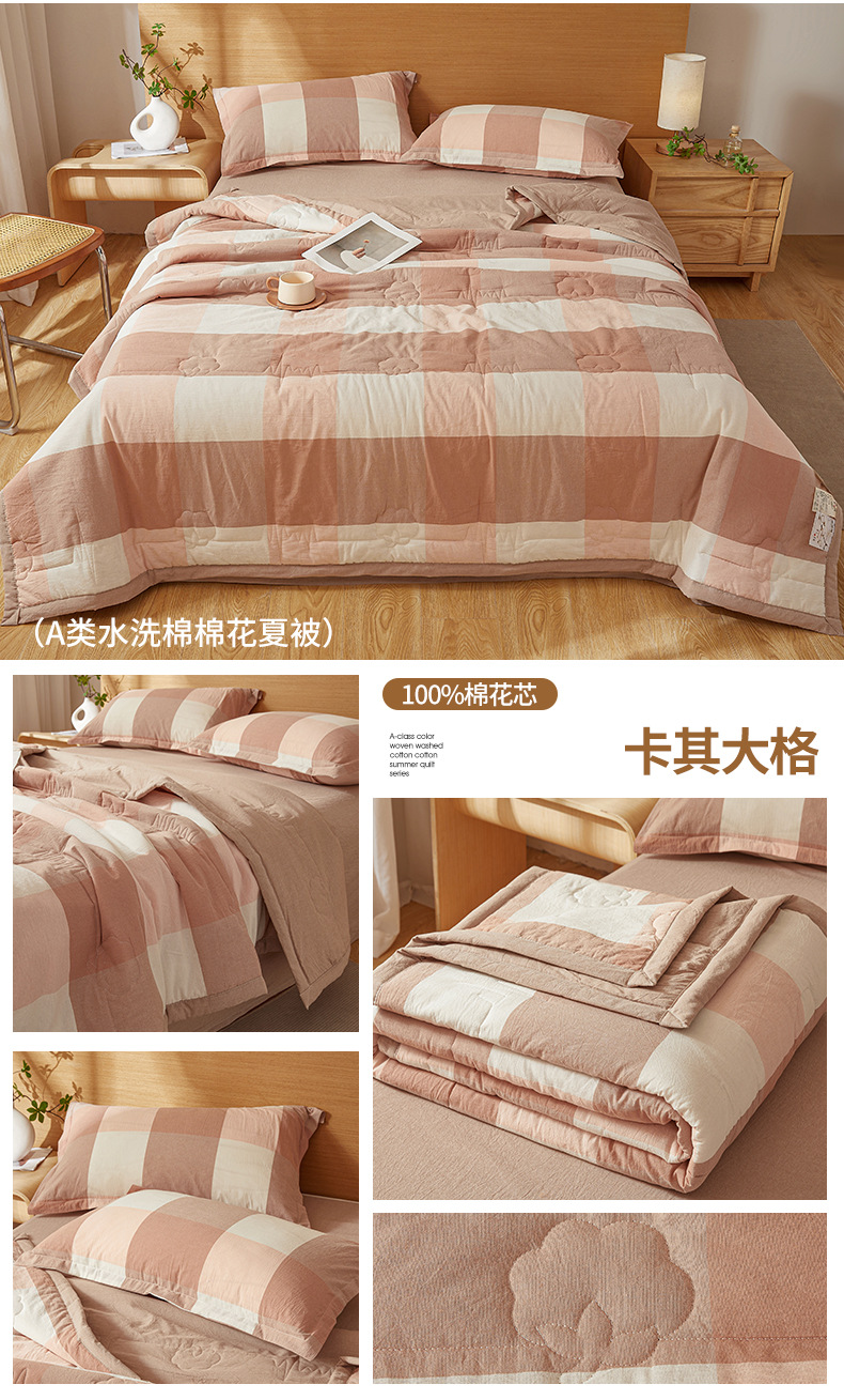 A급 100% 신장산 면 여름 이불, 워싱 면 에어컨 이불, 학생 기숙사 체크무늬 여름 이불, 여름용 얇은 이불