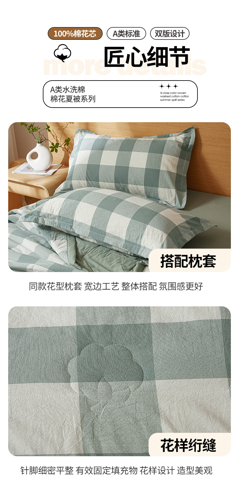 A급 100% 신장산 면 여름 이불, 워싱 면 에어컨 이불, 학생 기숙사 체크무늬 여름 이불, 여름용 얇은 이불스토어 가기