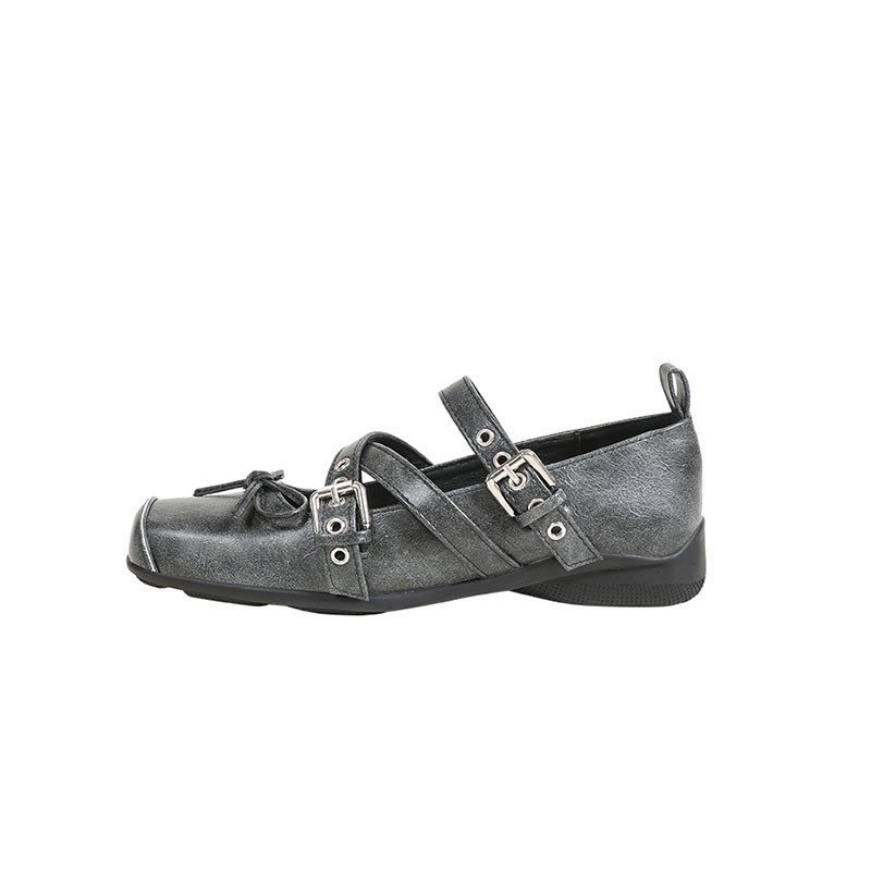 크로스 벨트 버클 바닥 2025 발레 신발 여성 플랫 돼지 코 메리 제인 신발 활 캐주얼 스포츠스토어 가기