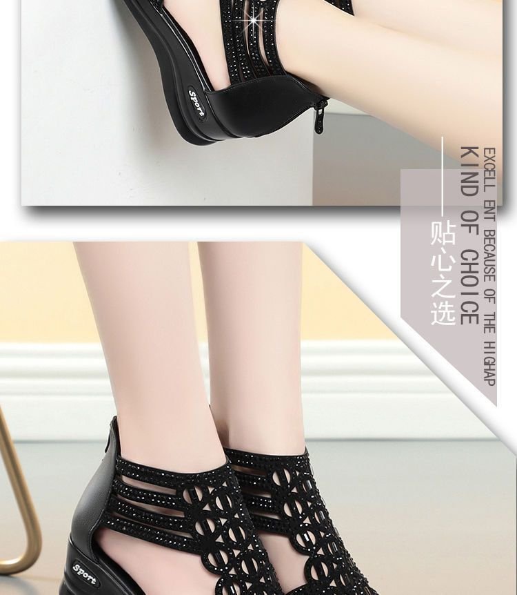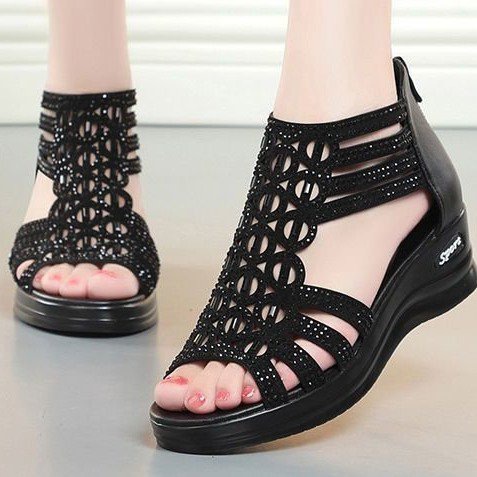 샌들 여성 여름 쐐기 2025 뉴 로마 어머니 라인스톤 물고기 입 미들 힐 여성의 부드러운 바닥 오픈 발가락 중년 샌들스토어 가기