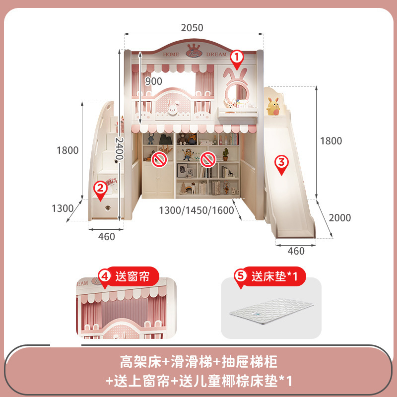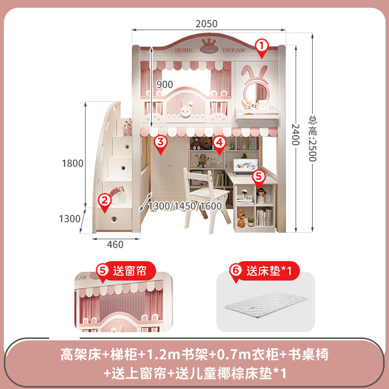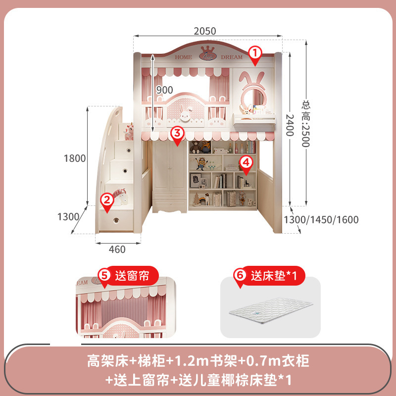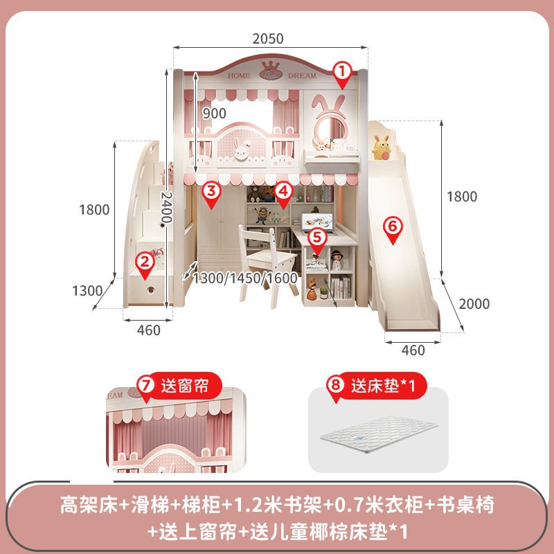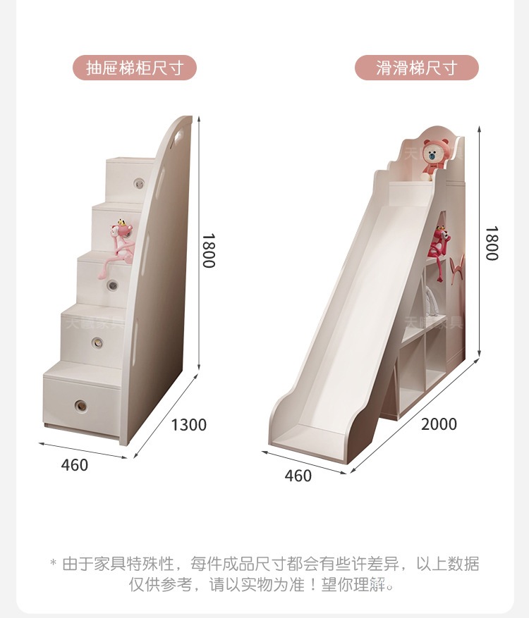 • Q 스타일 로프트 침대 + 사다리 수납장 + 슬라이드 + 1.2m 책장 + 0.7m 책장