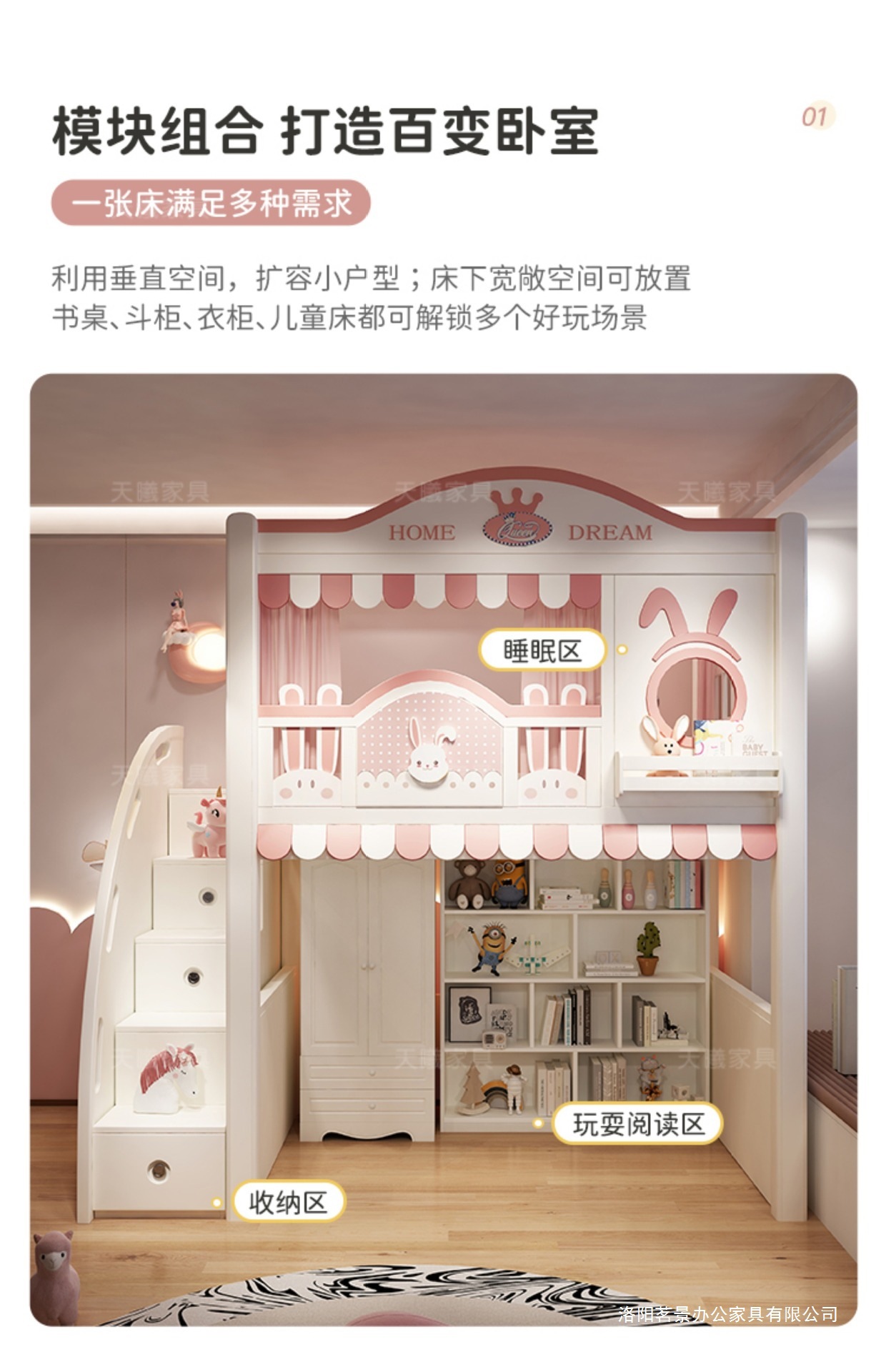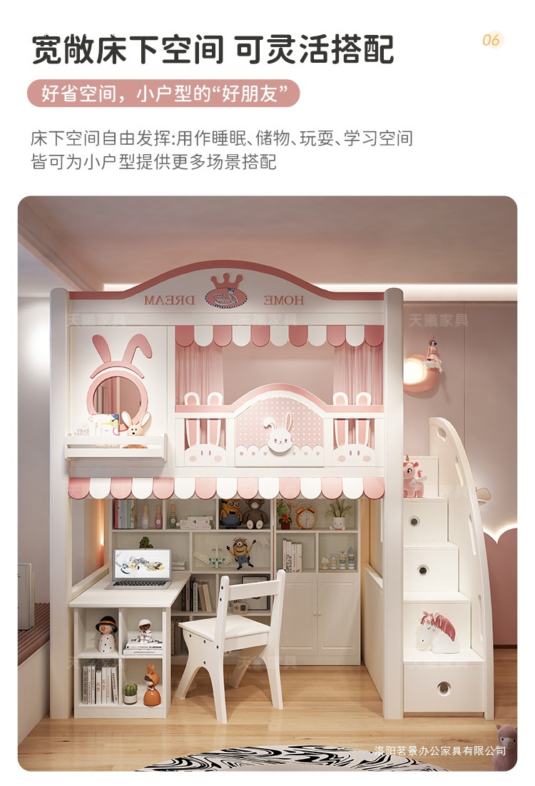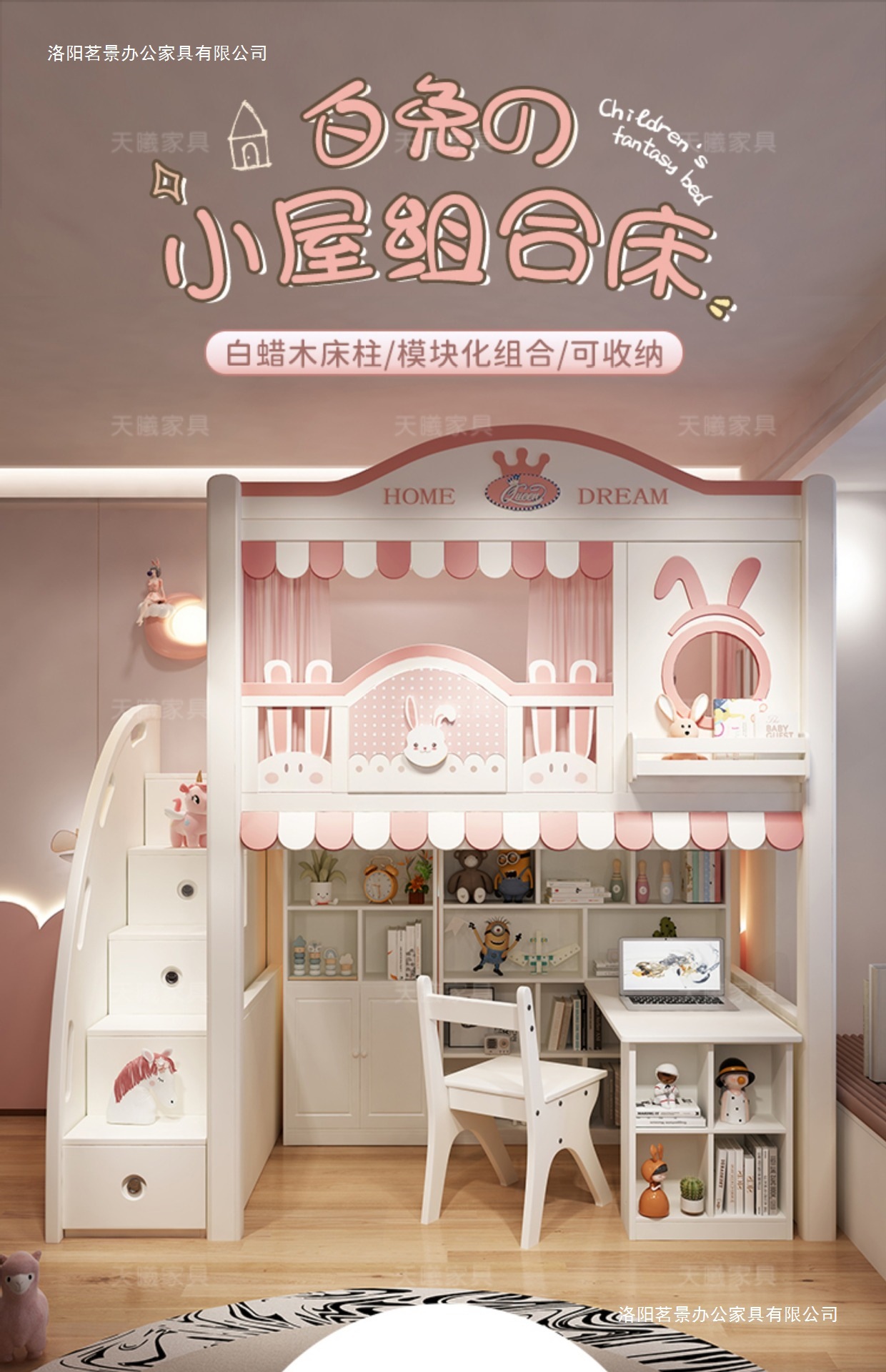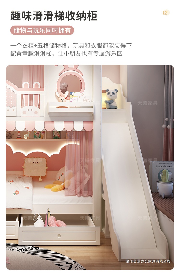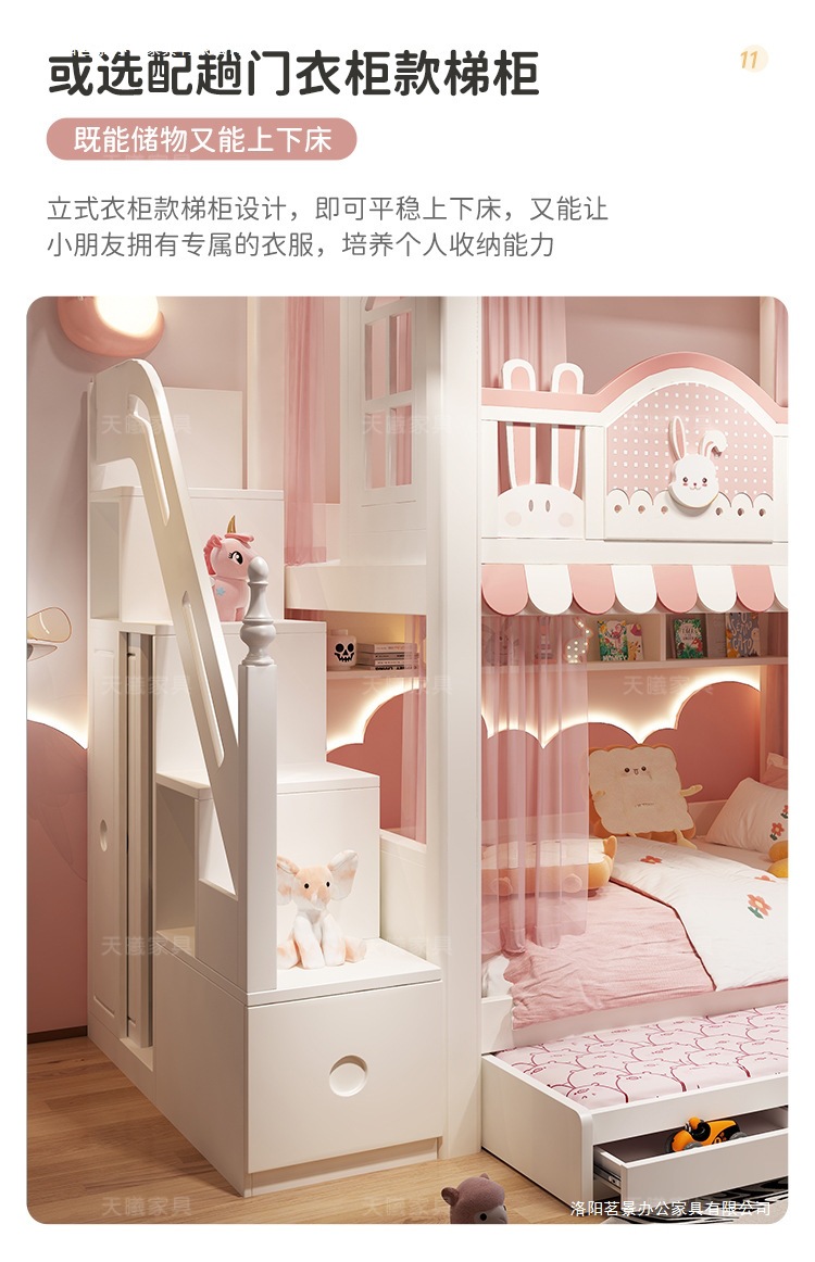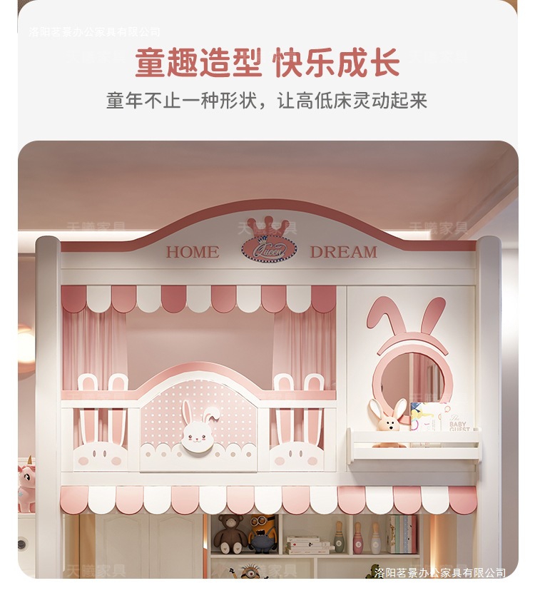 만화 어린이 침대 침대 상하 침대 캐비닛 조합 침대 옷장 책상 통합 토끼 침대 침대 침대 같은 폭과 높이 상자