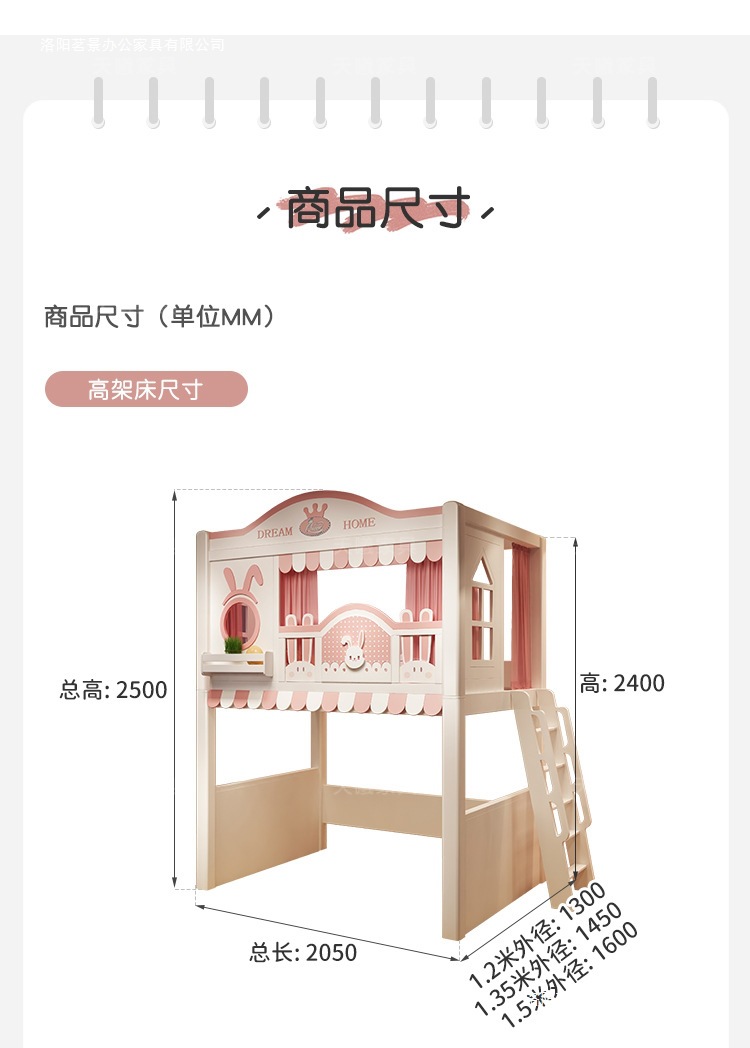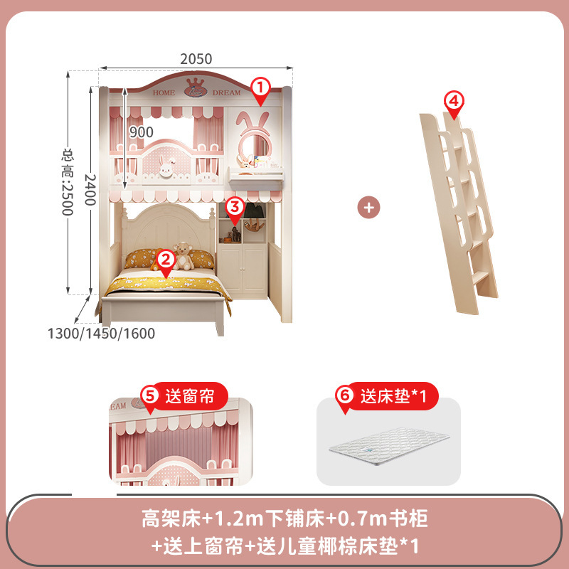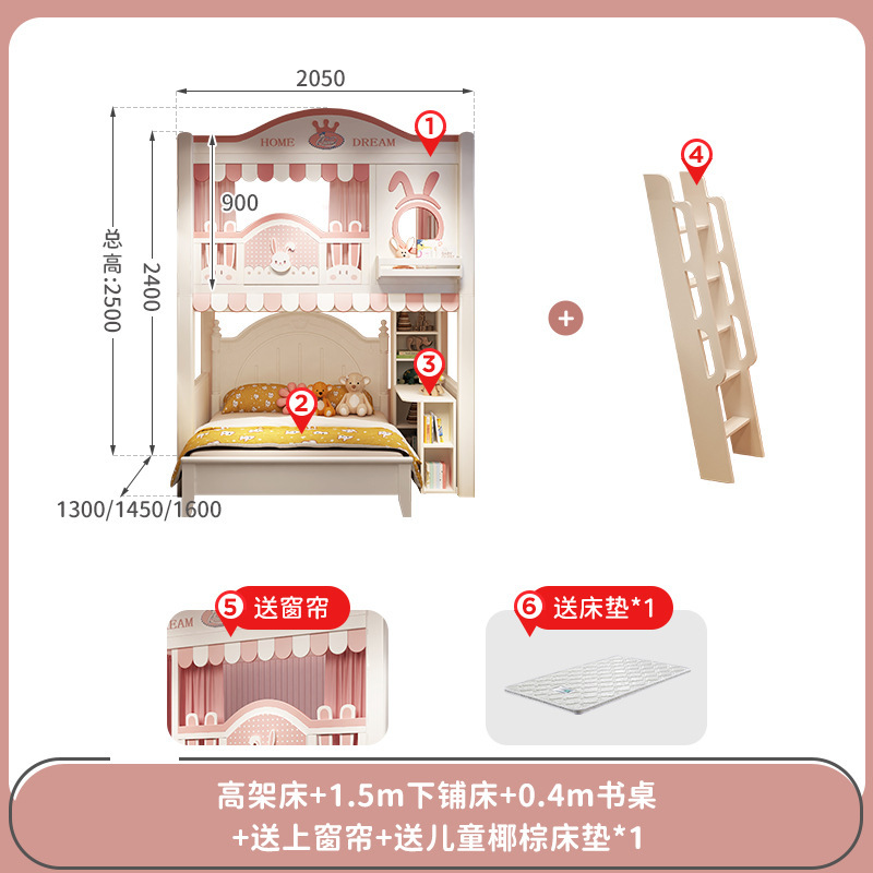 • K형 로프트 침대 + 0.4 책상 의자 + 1.5m 하단 이층 침대