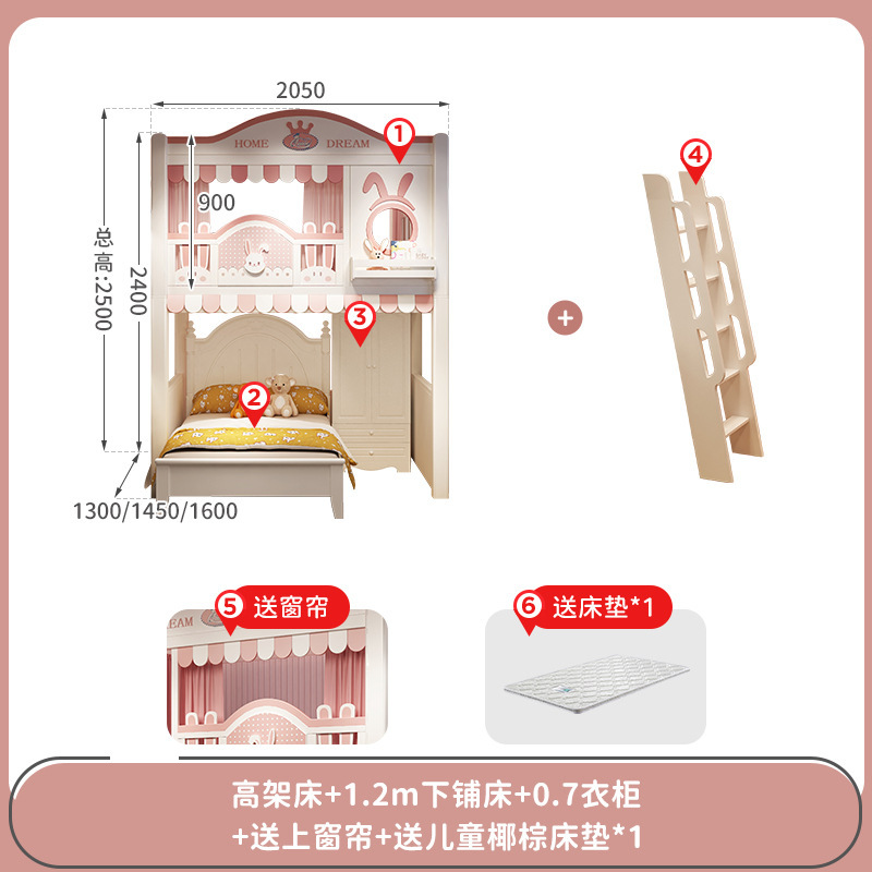 • I형 로프트 침대 + 0.7m 옷장 + 1.2m 하단 침대