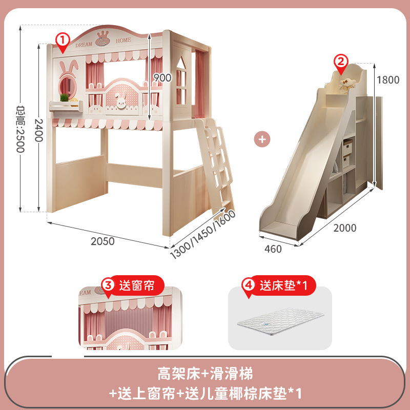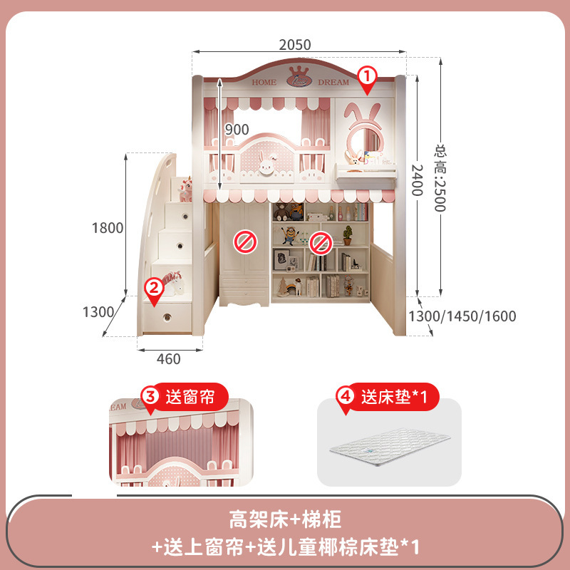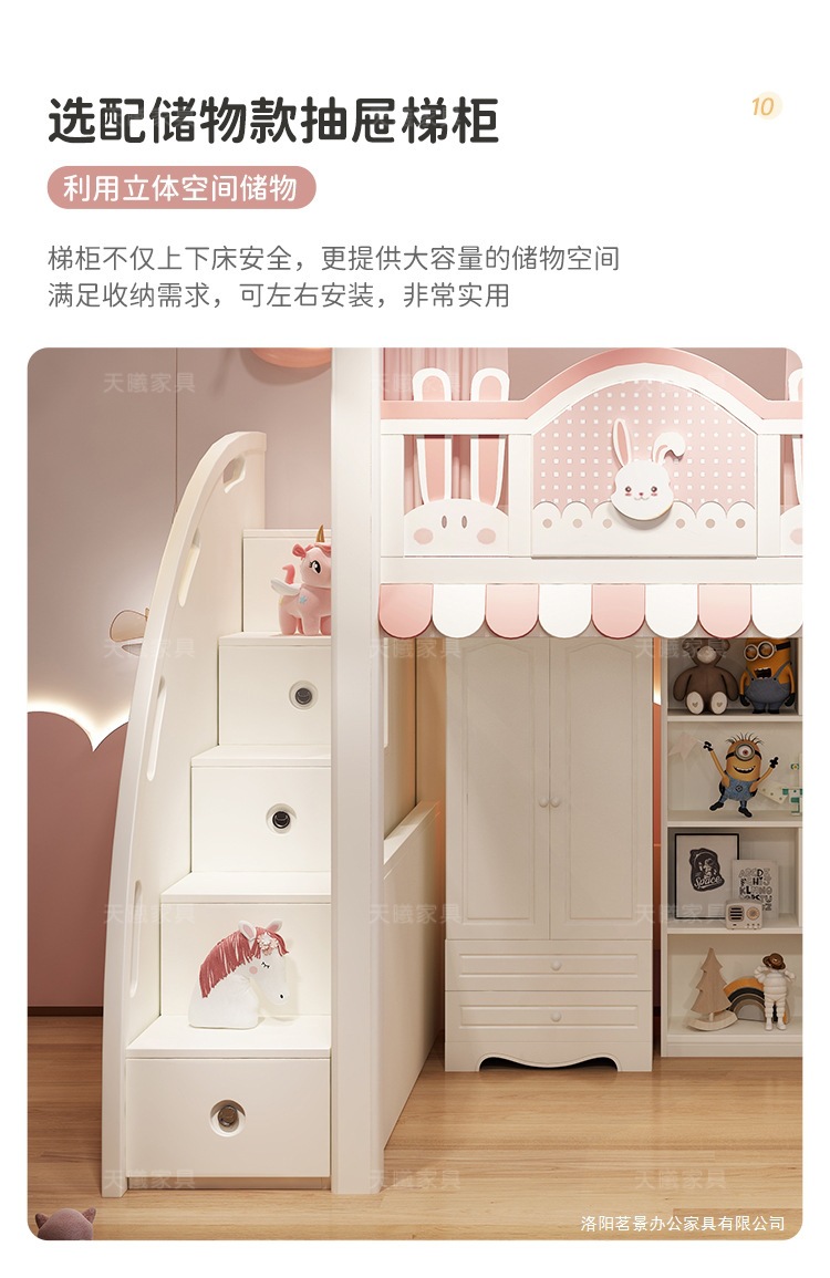 • R 스타일 로프트 침대 + 사다리 캐비닛 + 옷장 슬라이드