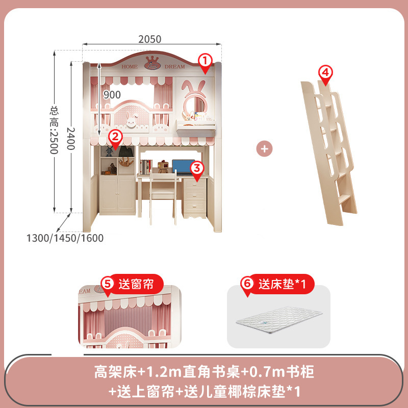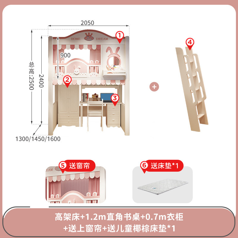 • S형 로프트 침대 + 1.2m 직각 책상 의자 + 0.7m 옷장