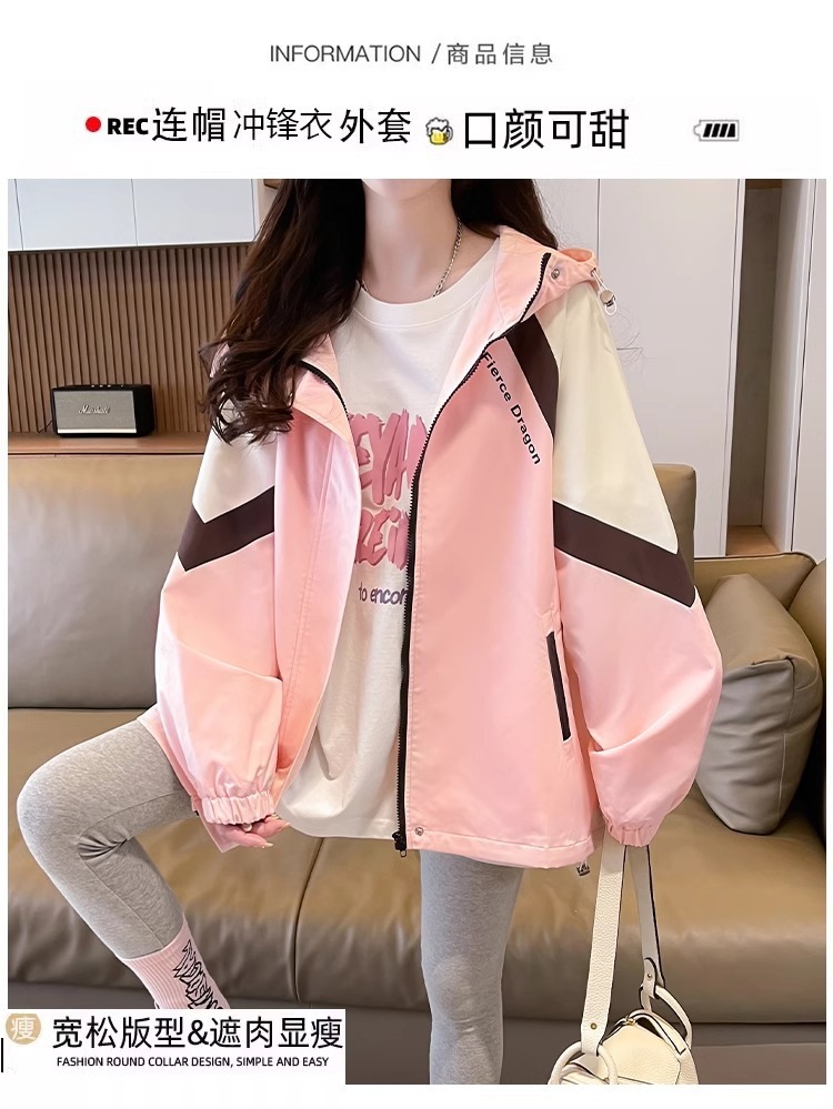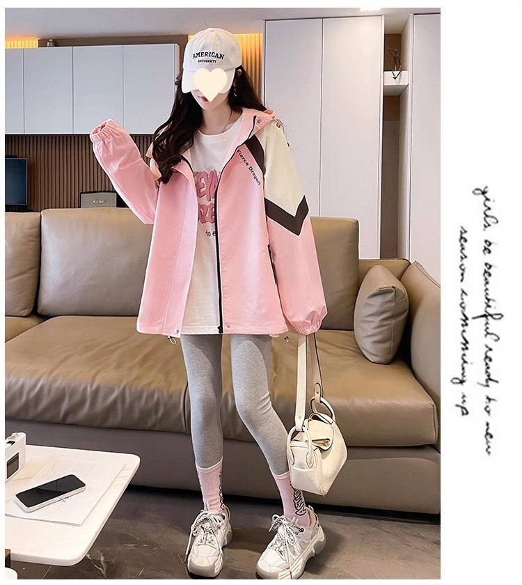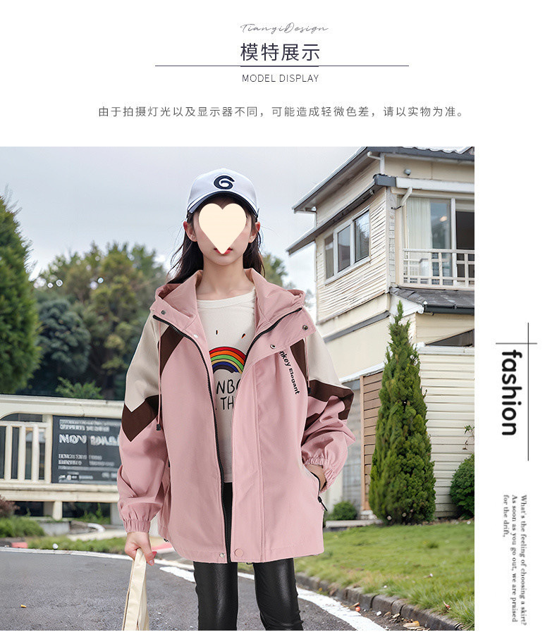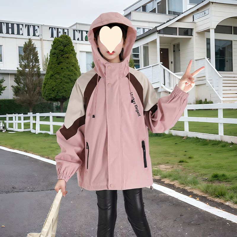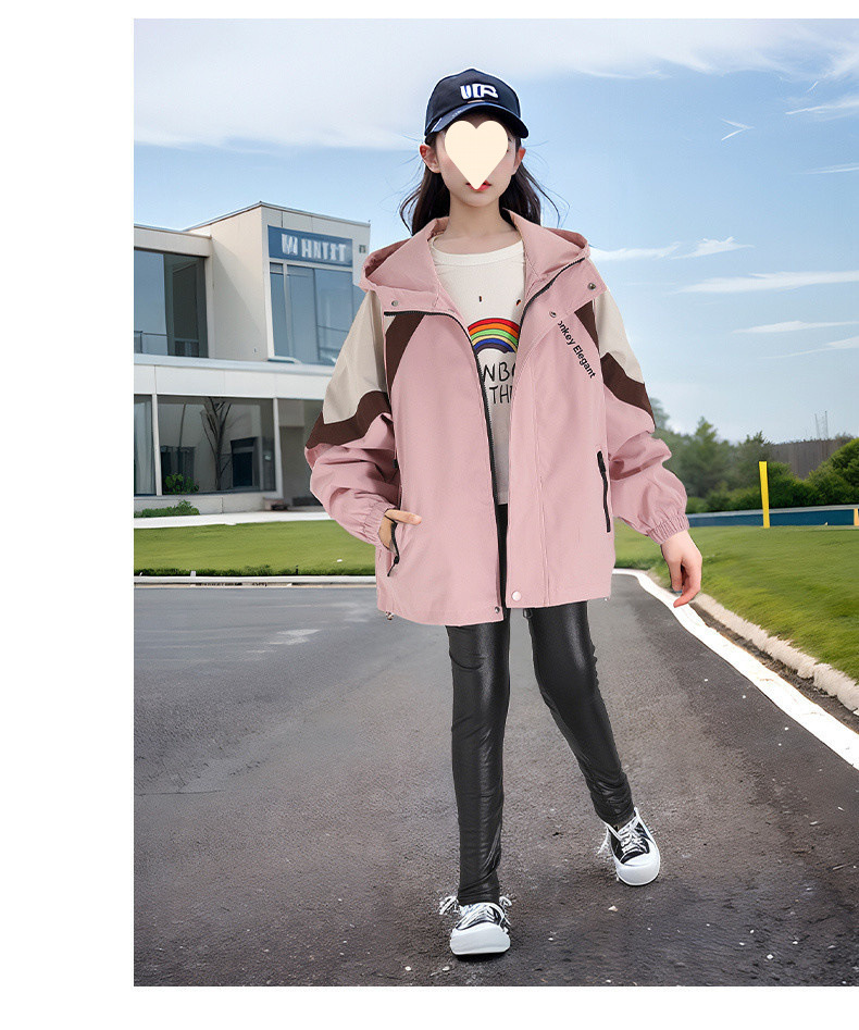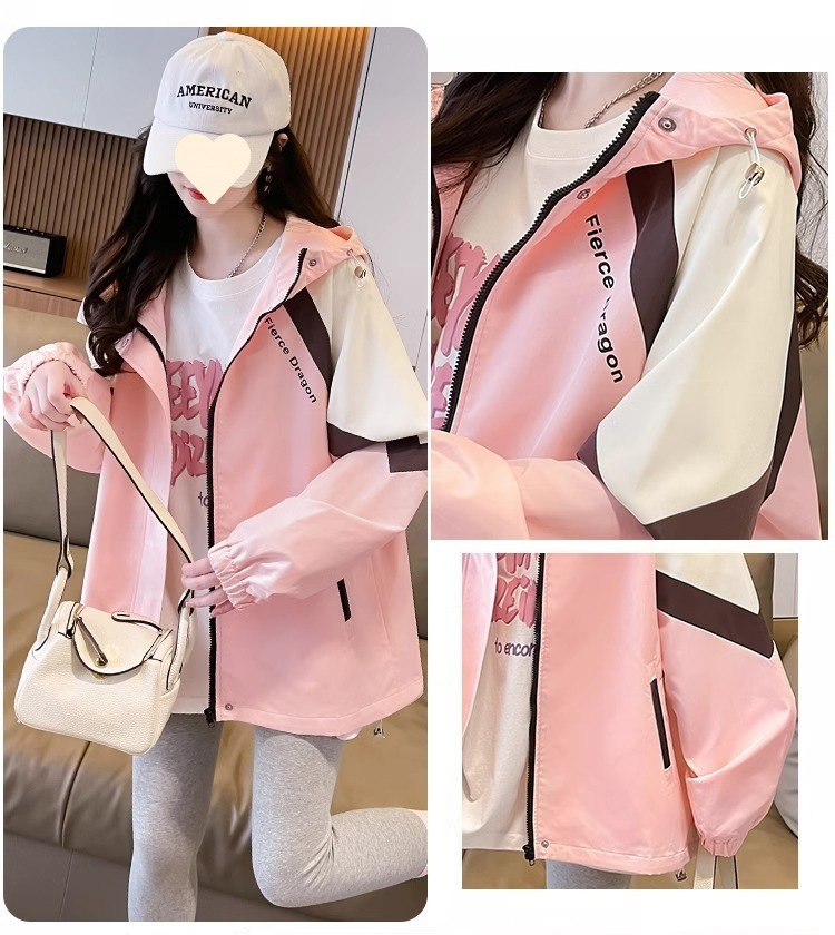 Z5L 디자인 센스 대비 컬러 충전 의류 소녀 2025 봄과 가을 새로운 캐주얼 코트 소녀 올 매치 후드 재킷스토어 가기