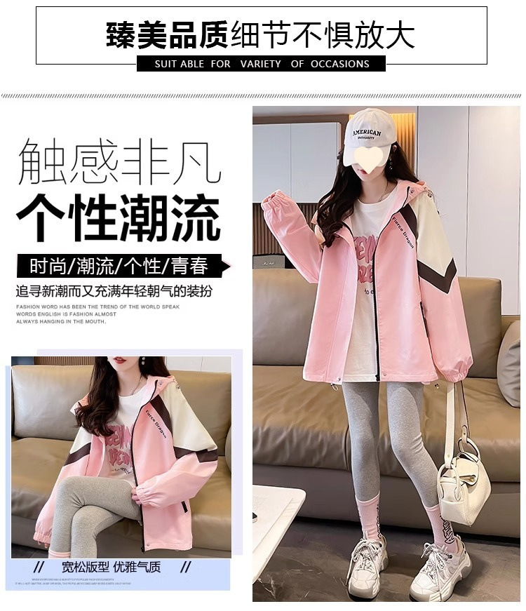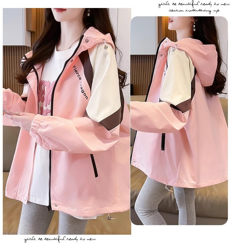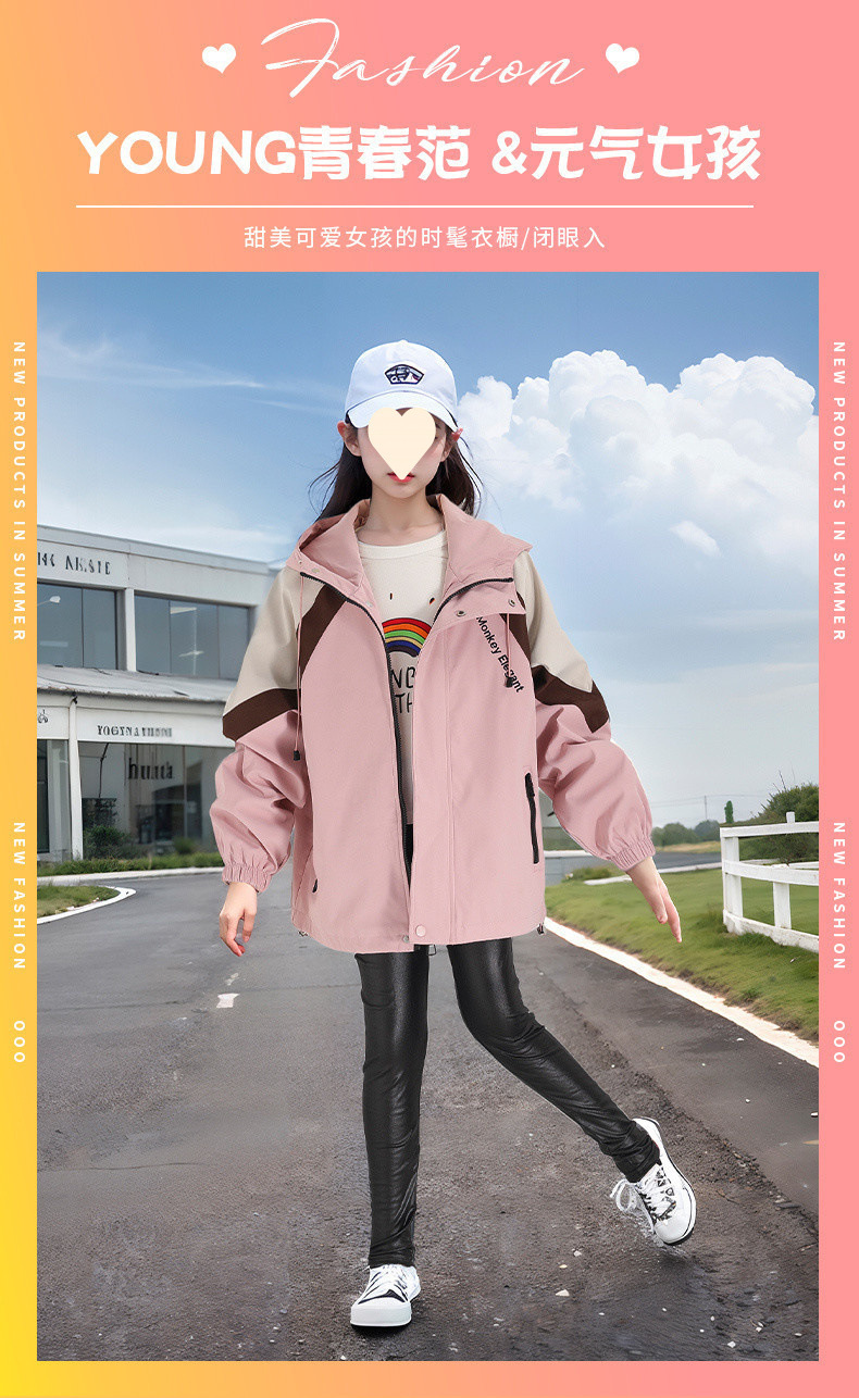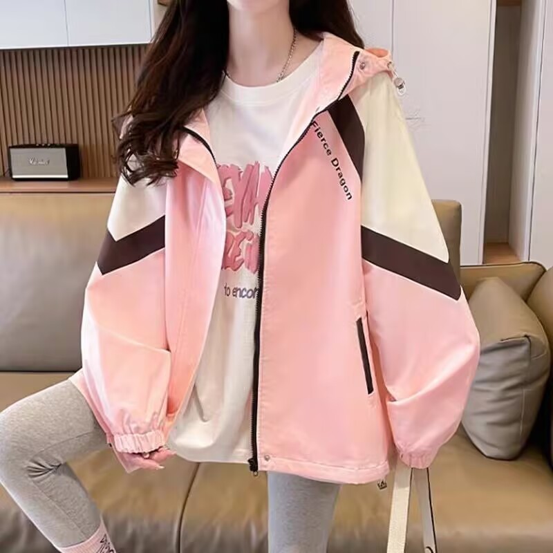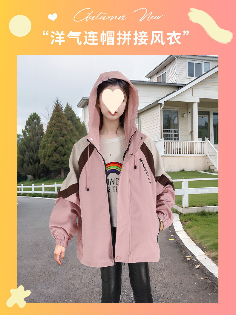 Z5L 디자인 센스 대비 컬러 충전 의류 소녀 2025 봄과 가을 새로운 캐주얼 코트 소녀 올 매치 후드 재킷스토어 가기