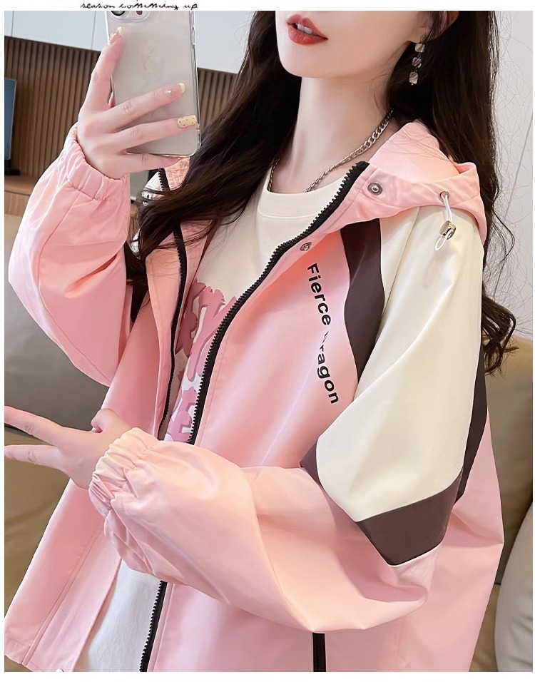 Z5L 디자인 센스 대비 컬러 충전 의류 소녀 2025 봄과 가을 새로운 캐주얼 코트 소녀 올 매치 후드 재킷