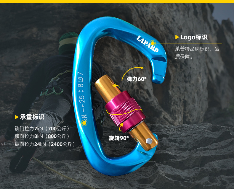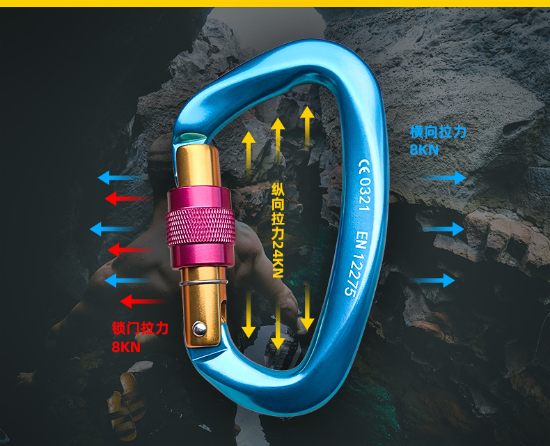 야외 전문 암벽 등반 D 형 메인 잠금 장착 빠른 교수형 와이어 높은 하중 베어링 속도 하강 장비 안전 잠금 장치스토어 가기