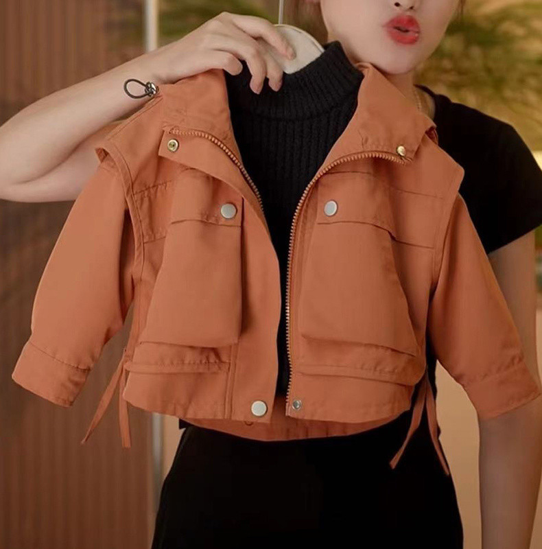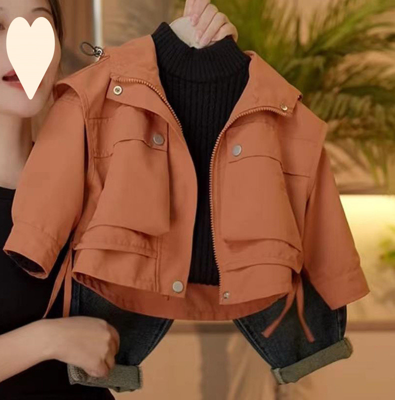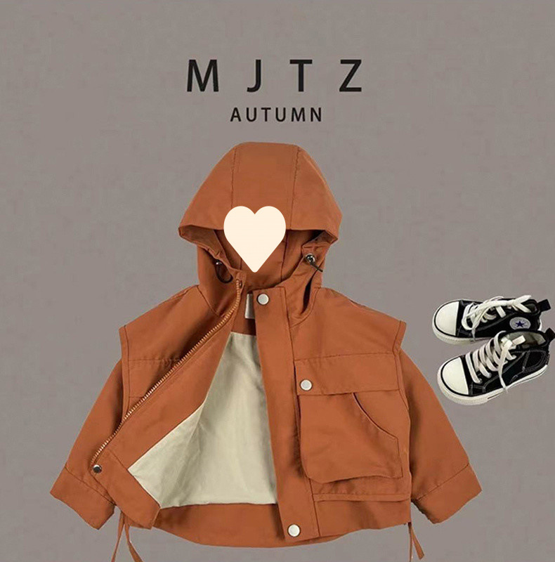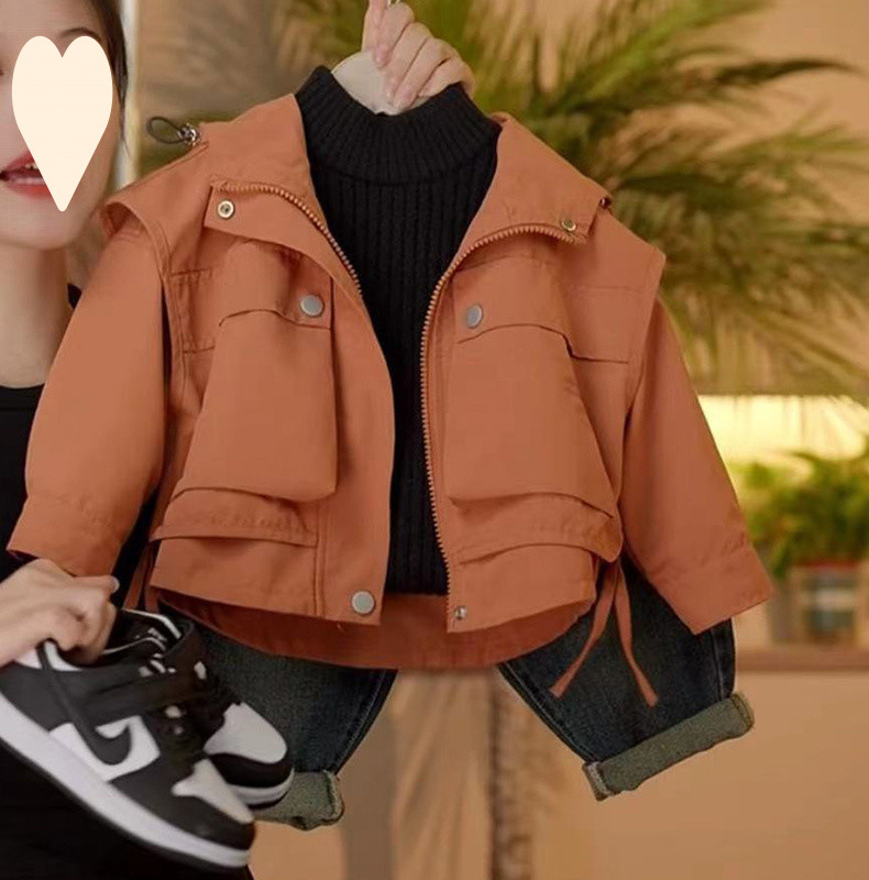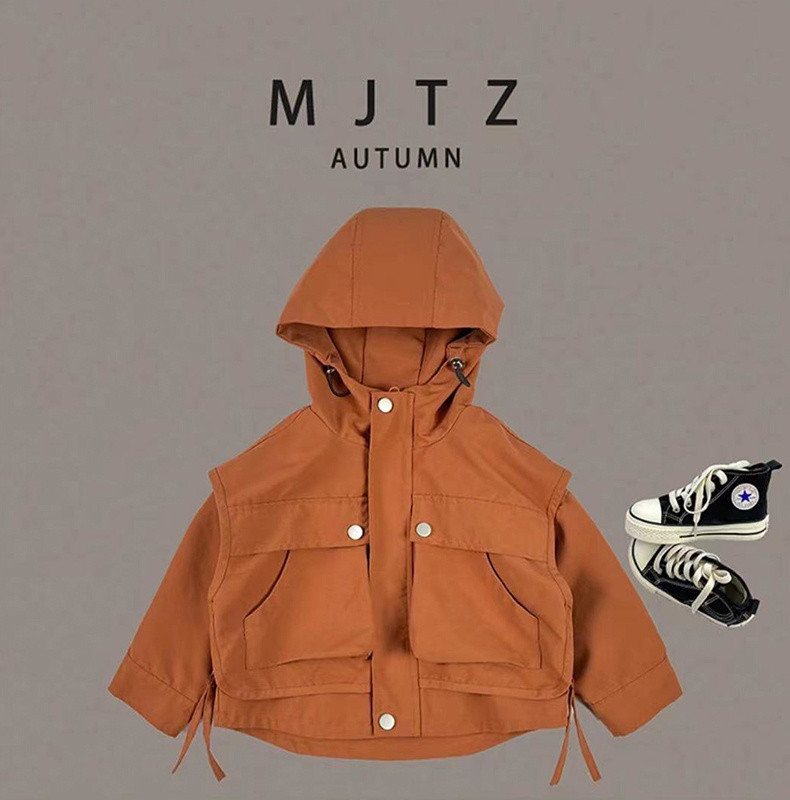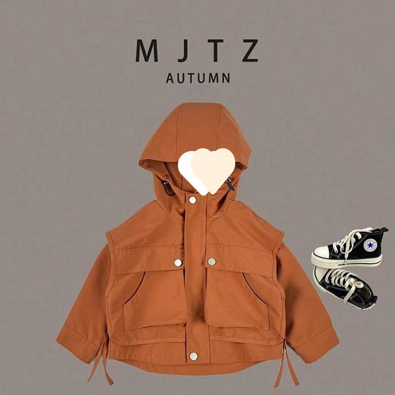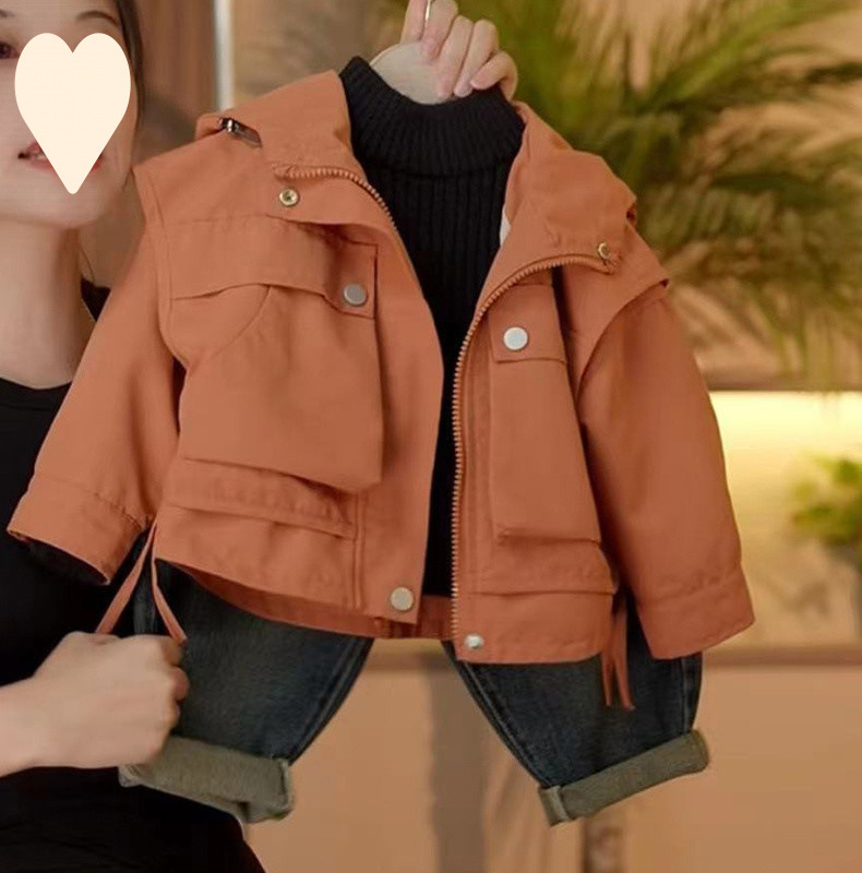 Z5L2023 가을 새 어린이 충전 옷 한국식 소년 소녀 아기 가짜 투피스 후드 작업 자켓스토어 가기