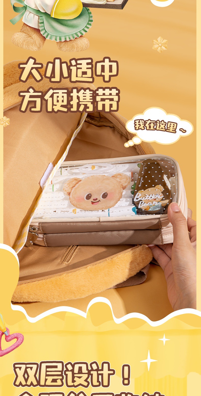 델리 HY703 버터 베어 다목적 연필 케이스 대용량 저장 문구 상자 만화 휴대용 내마모성 연필 케이스스토어 가기