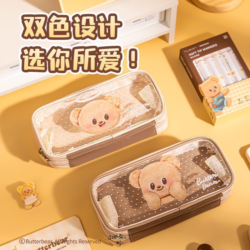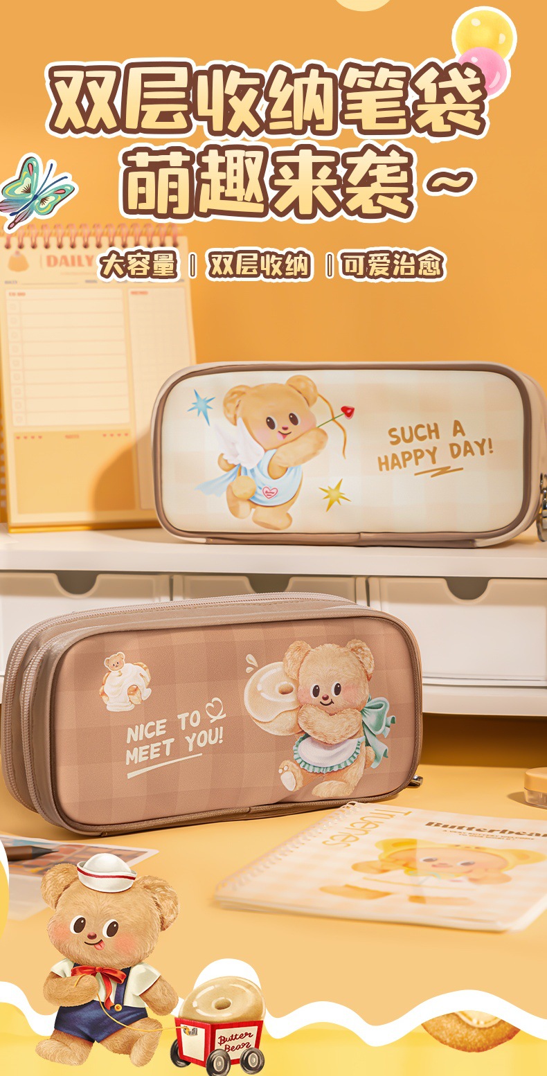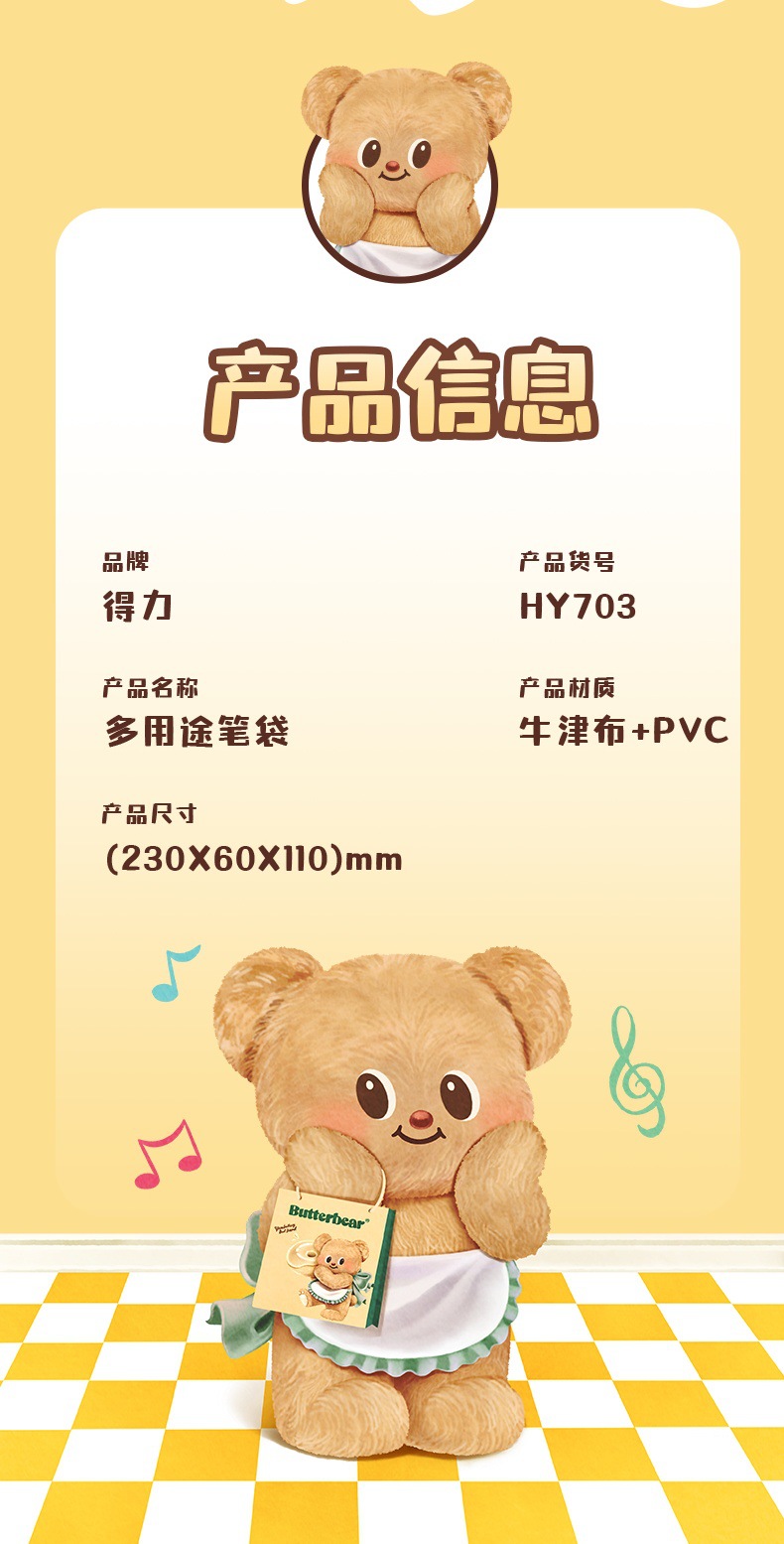 델리 HY703 버터 베어 다목적 연필 케이스 대용량 저장 문구 상자 만화 휴대용 내마모성 연필 케이스