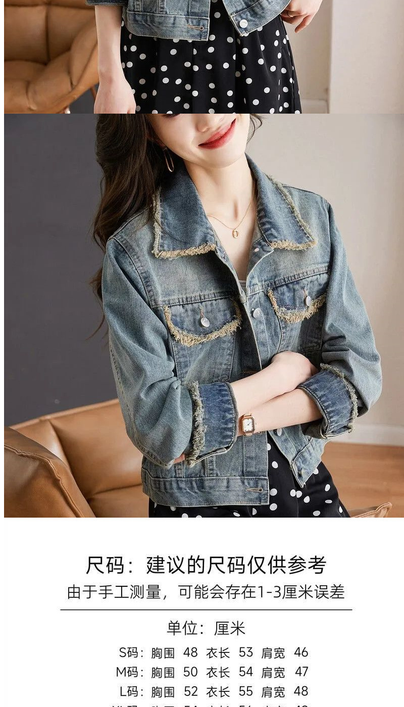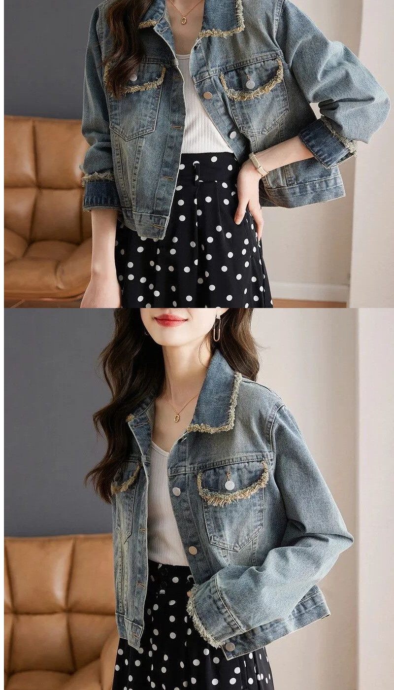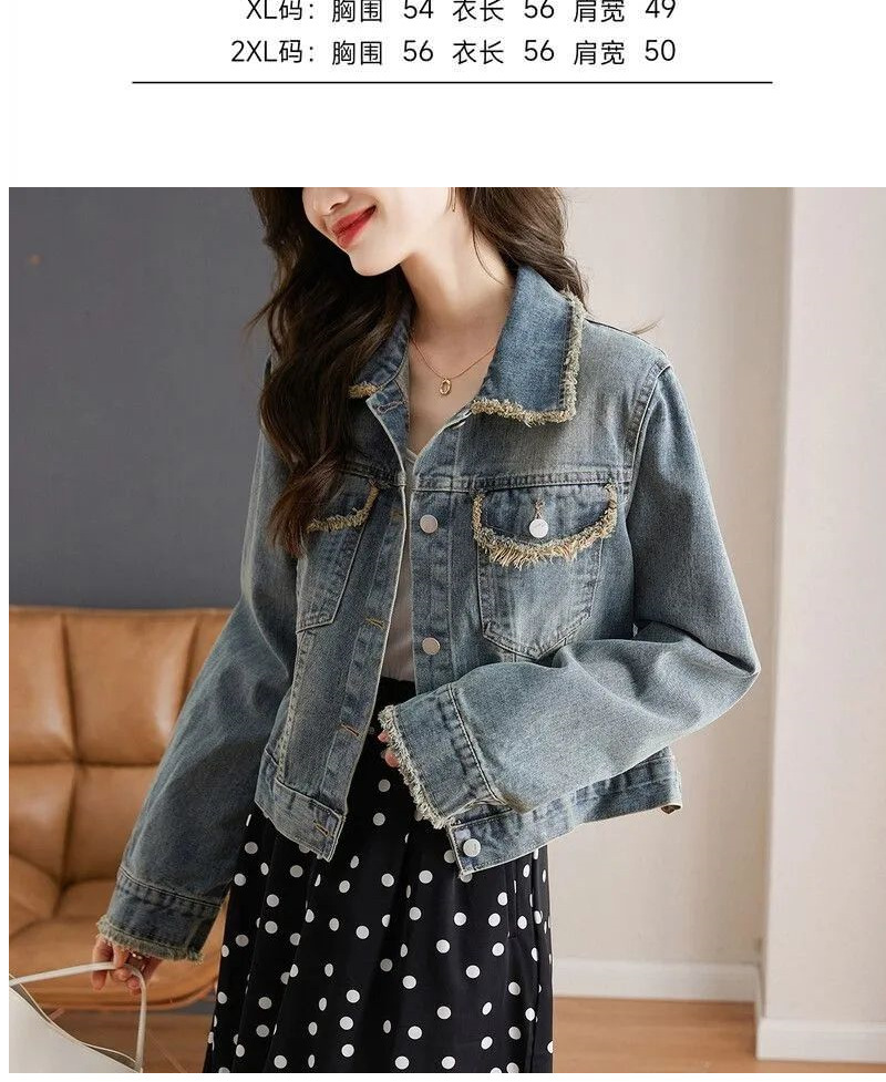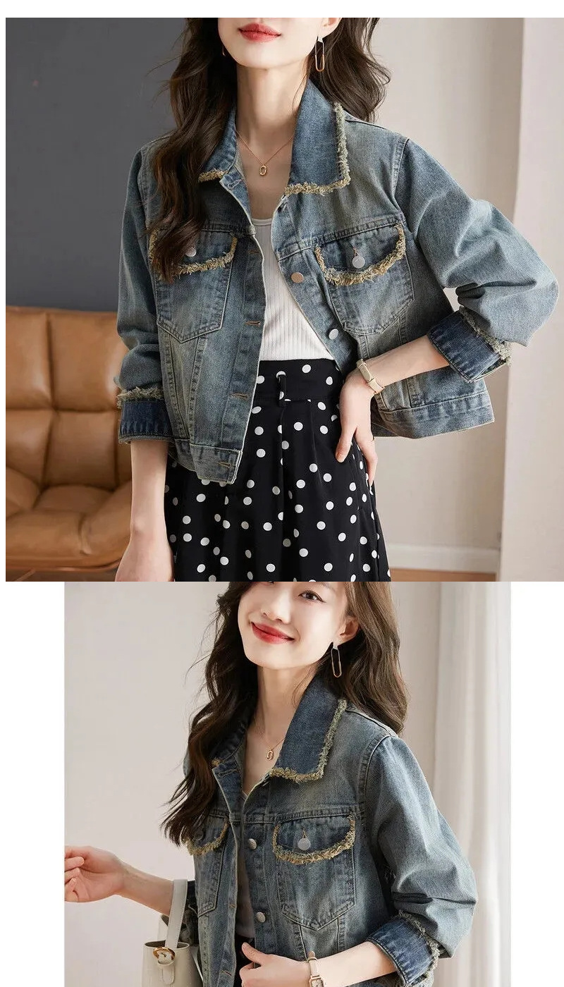 미국 복고풍 짧은 데님 코트 여성의 봄과 가을 2024 새로운 스타일 작은 디자인 홍콩 스타일 재킷스토어 가기