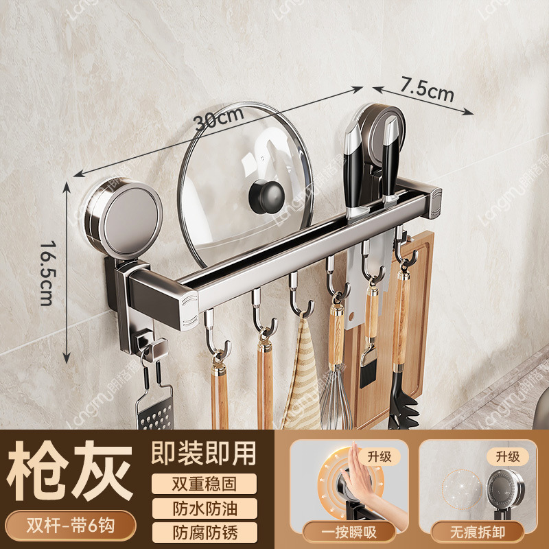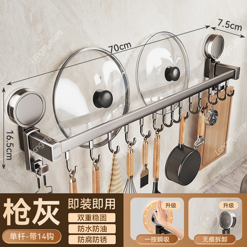 • [단극 기본 모델] 냄비 뚜껑 + 흡착판 설치 + 원하는 위치로 이동 - 인기 모델 [두꺼운 60cm 걸이] + 탈착식 후크 12개