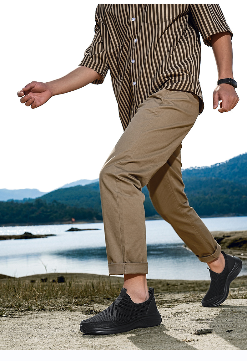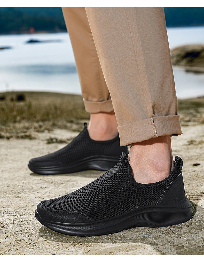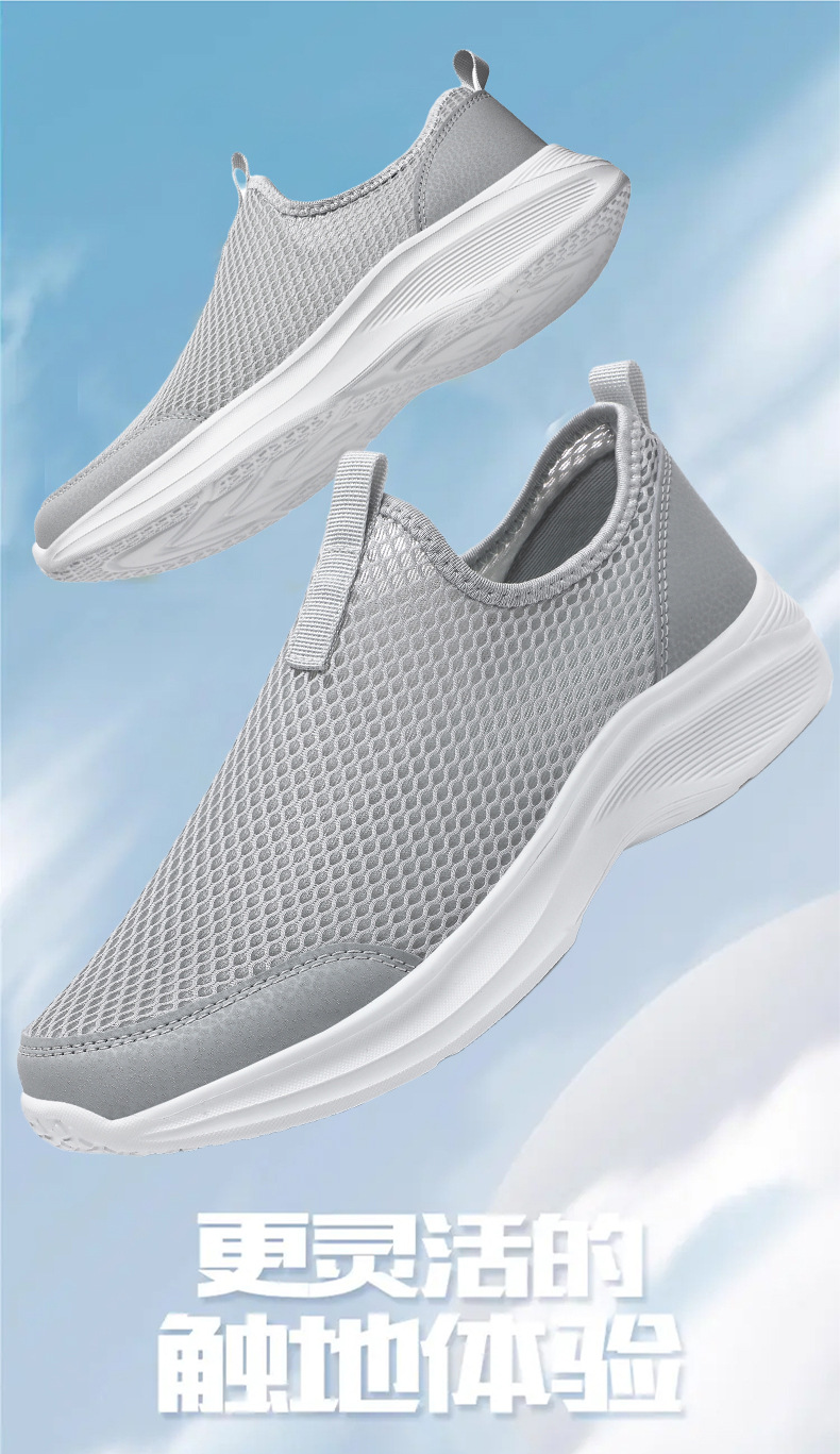 여름 플러스 사이즈 남성 신발 새로운 메쉬 통기성 야외 운동화 소프트 단독 경량 캐주얼 게으른 신발 런닝 신발 남성용스토어 가기