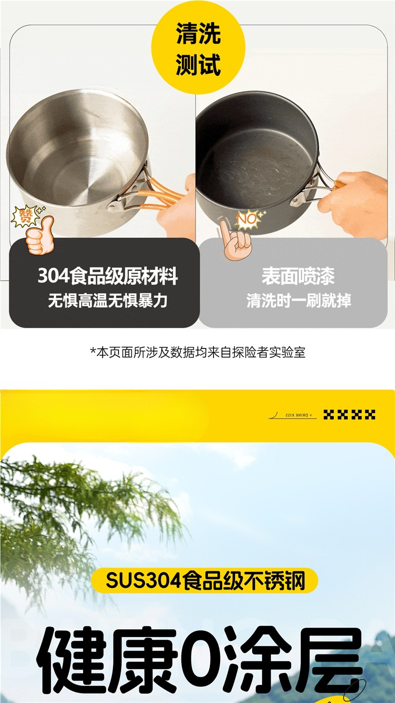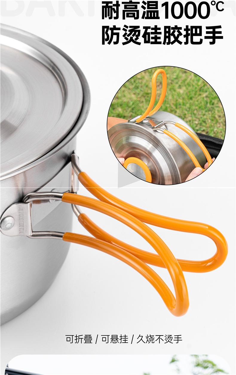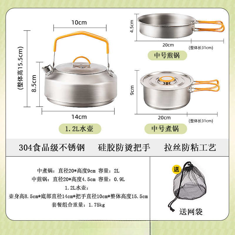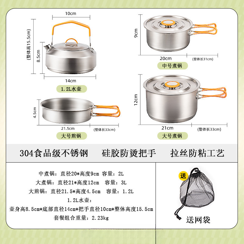 유 유 304 스테인레스 스틸 야외 조리기구 캠핑 조리기구 카드 스토브 냄비 주전자 요리 장비 전체 세트 세트스토어 가기