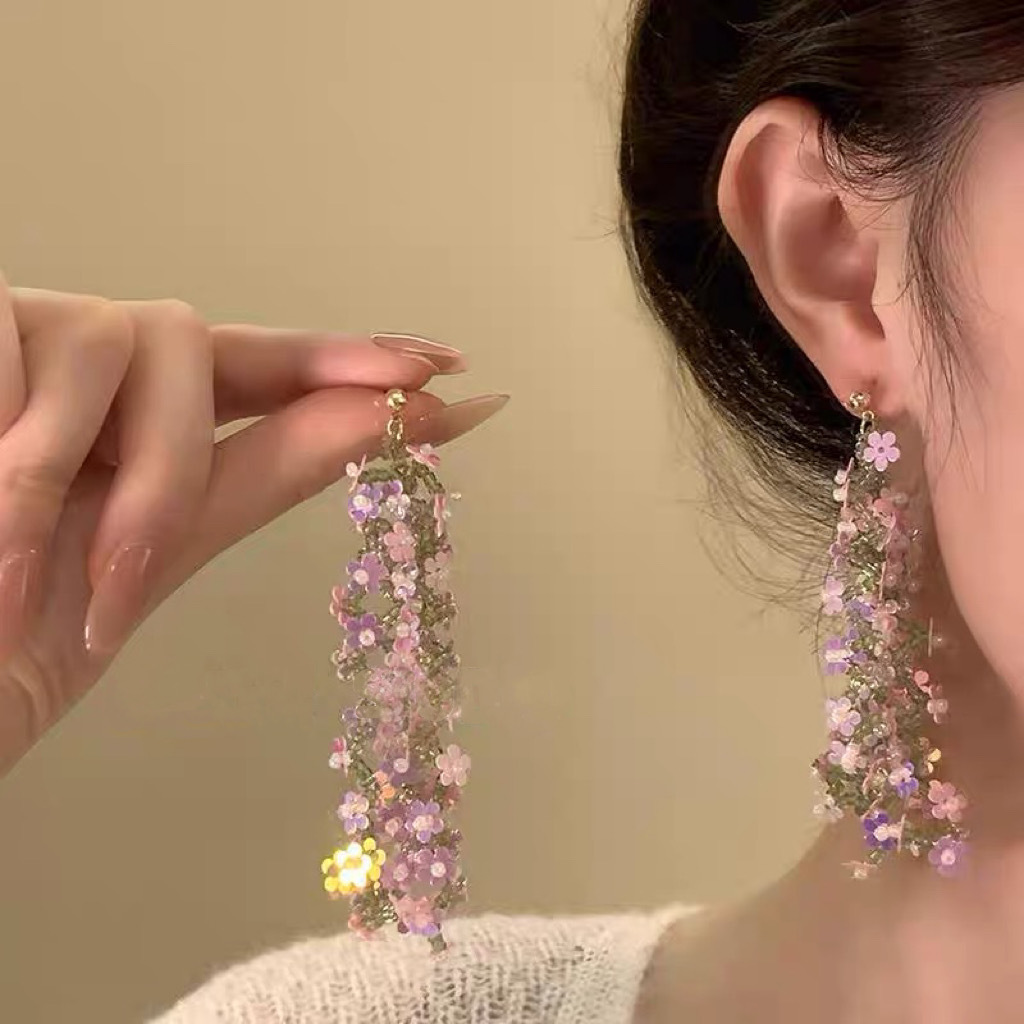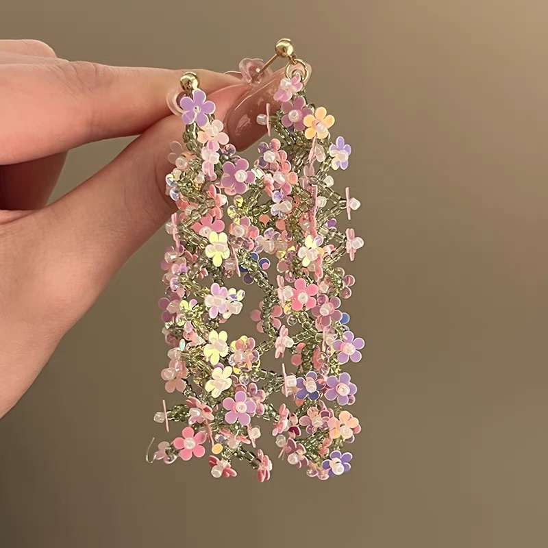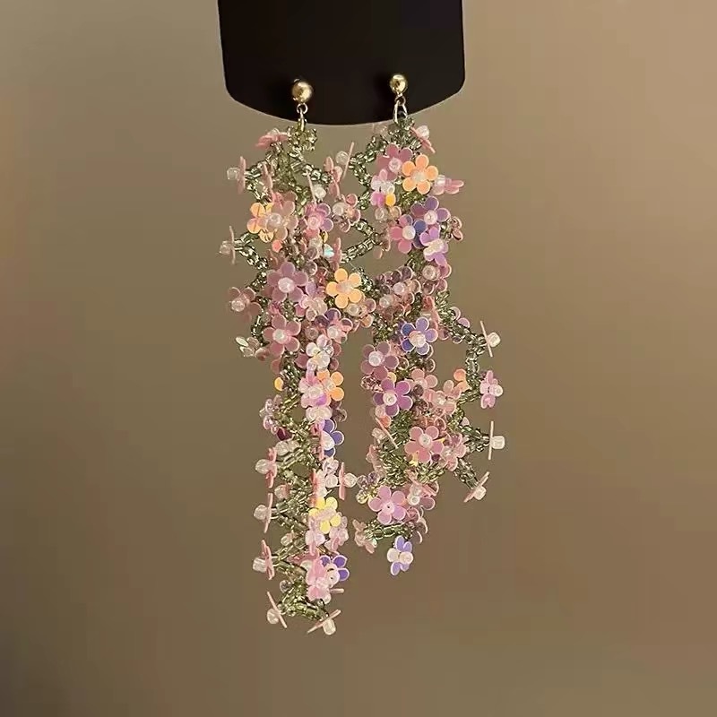 아름다운 스팽글 핑크 술 귀걸이 2025 새로운 폭발 여성 기질 봄과 여름 휴가 바람 귀 보석스토어 가기