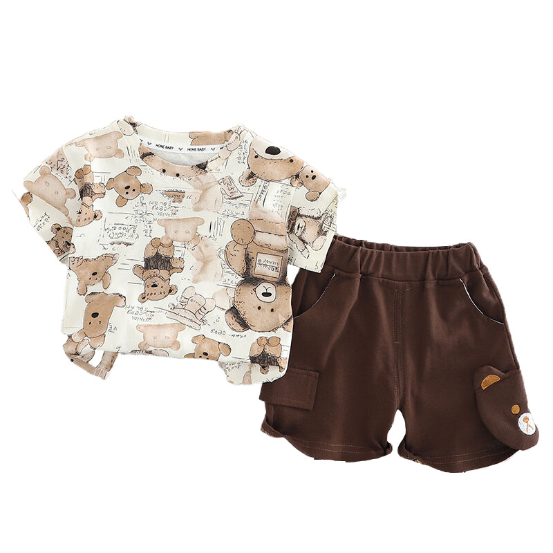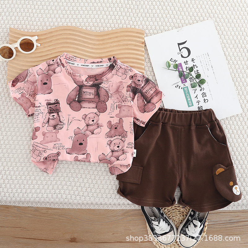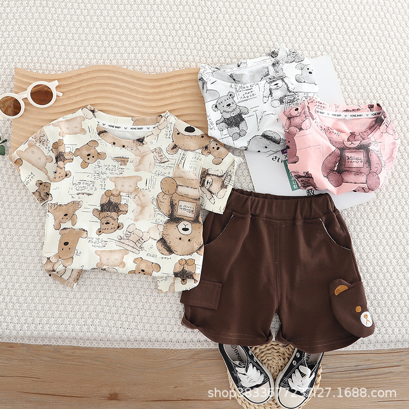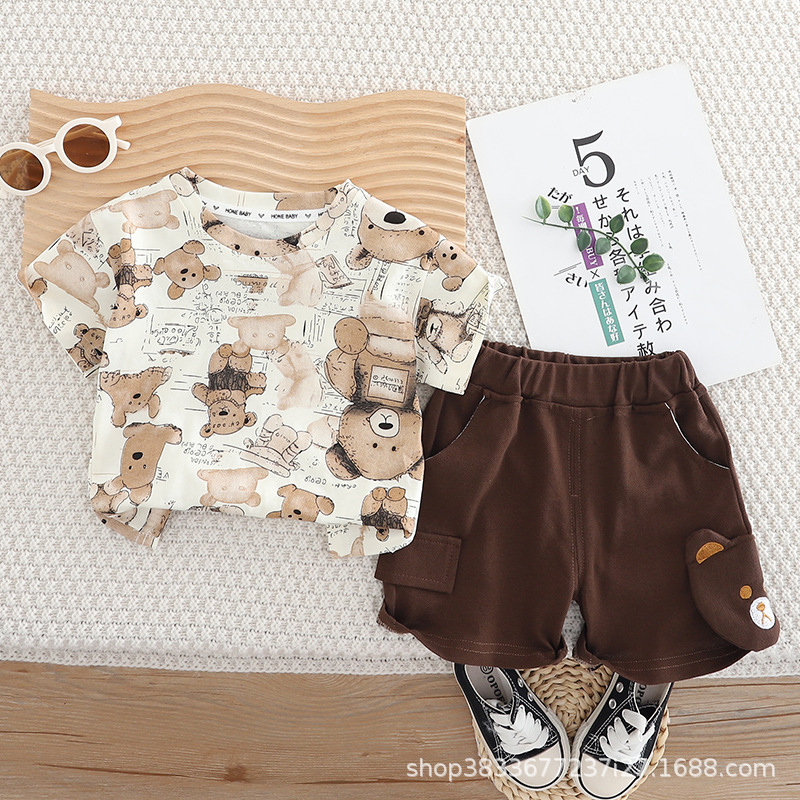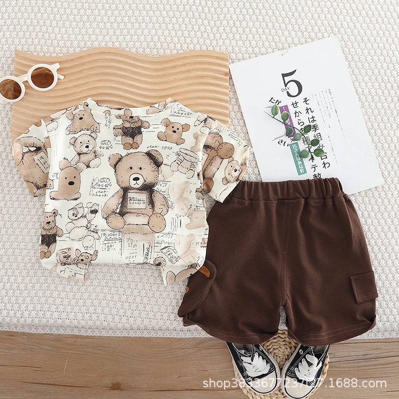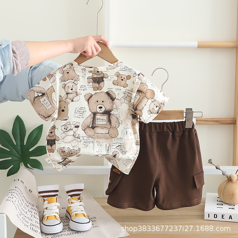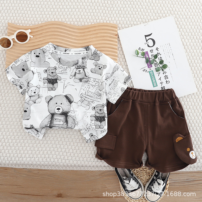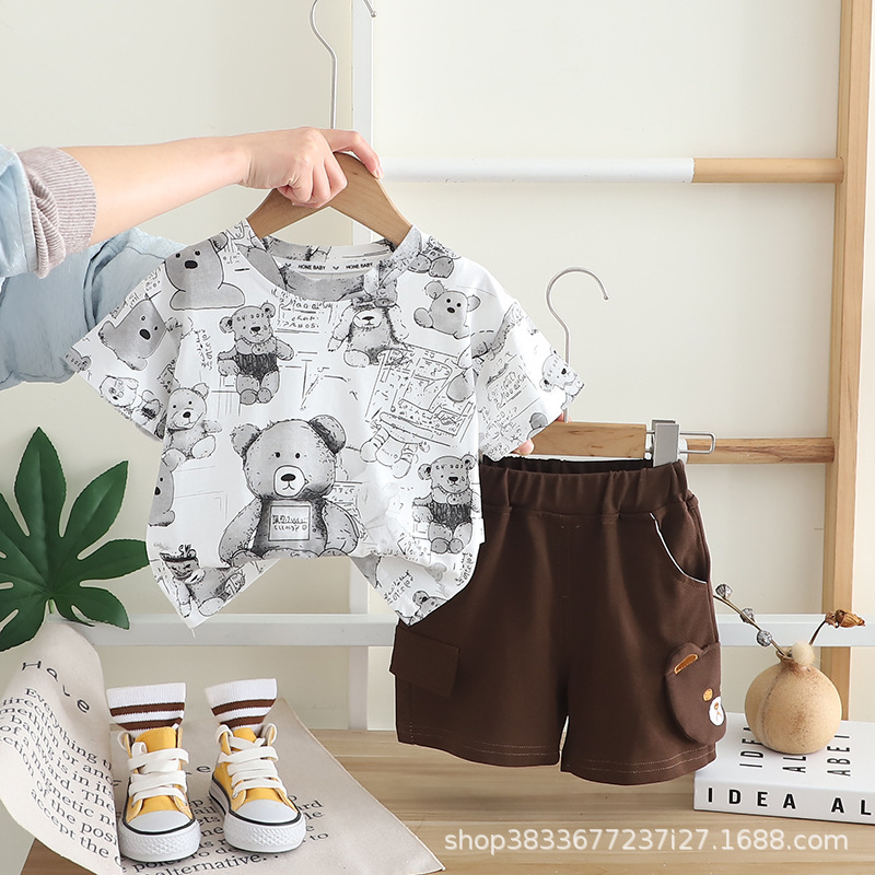 아동복 소년의 여름 풀 프린트 베어 반팔 투피스 아기의 새로운 잘 생긴 서양식 어린이 여름 패션