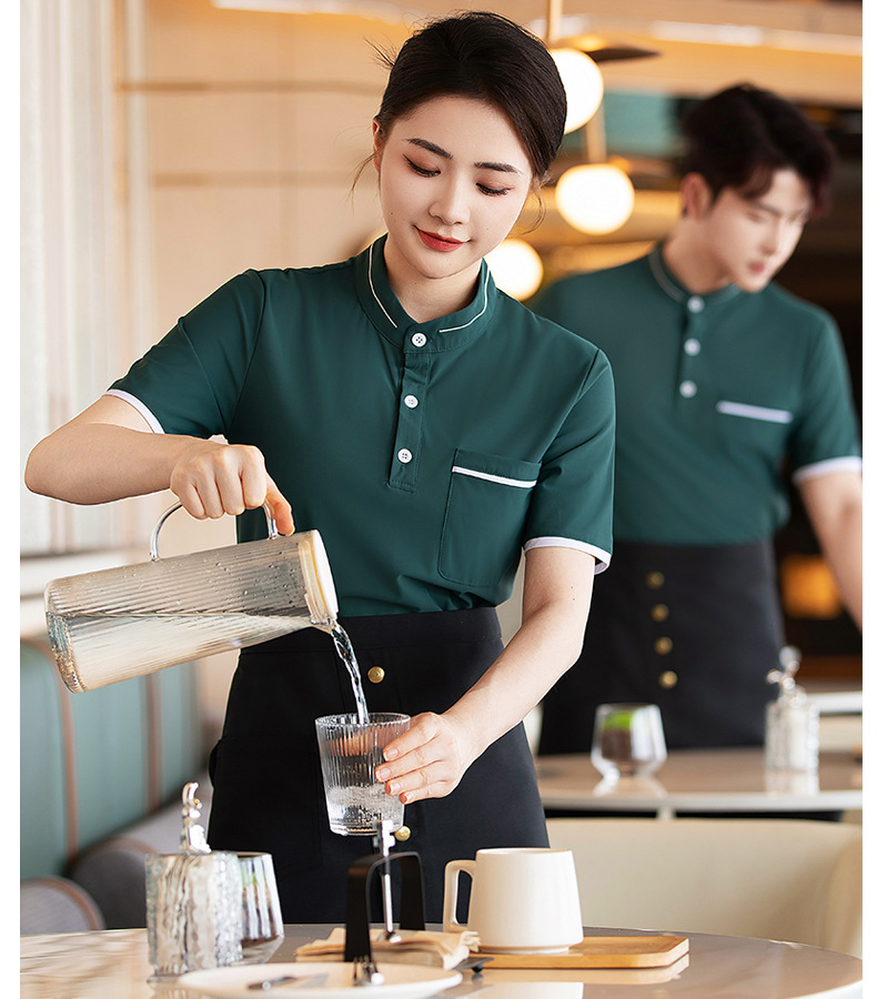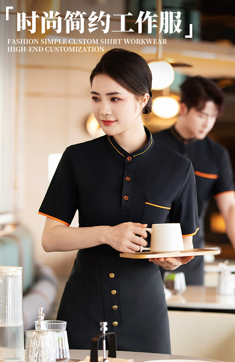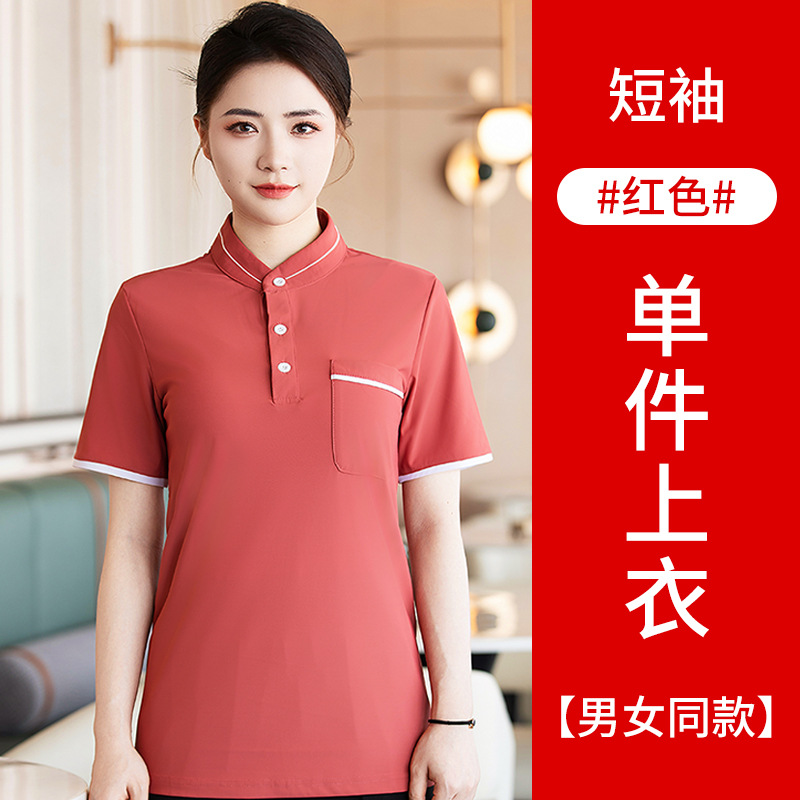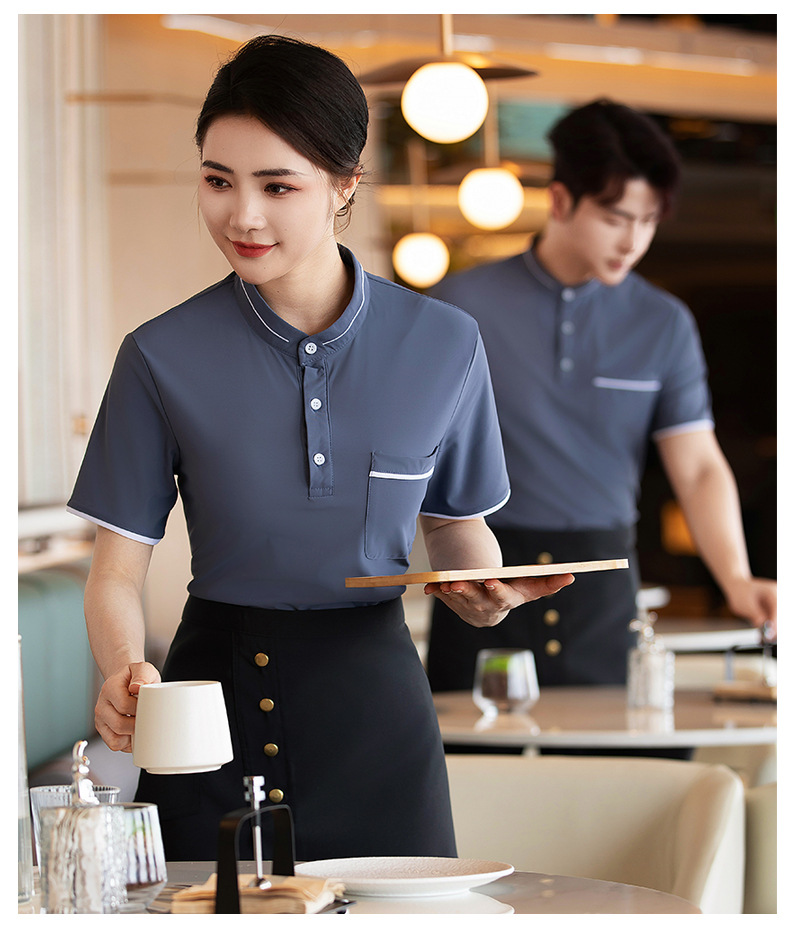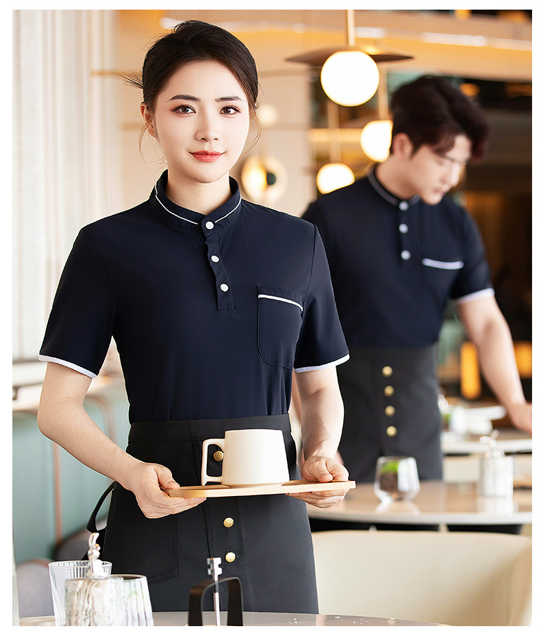 웨이터 작업복 반팔 셔츠 여성 호텔 밀크 티 카페 웨스턴 레스토랑 핫 팟 디저트 샵 남녀 유니폼