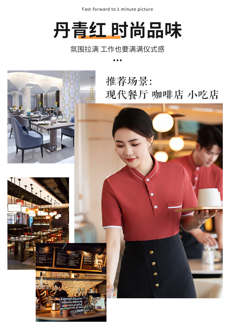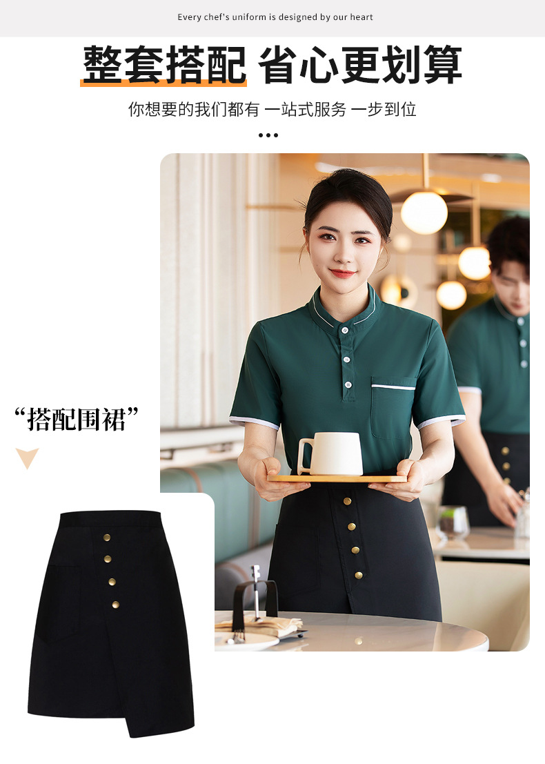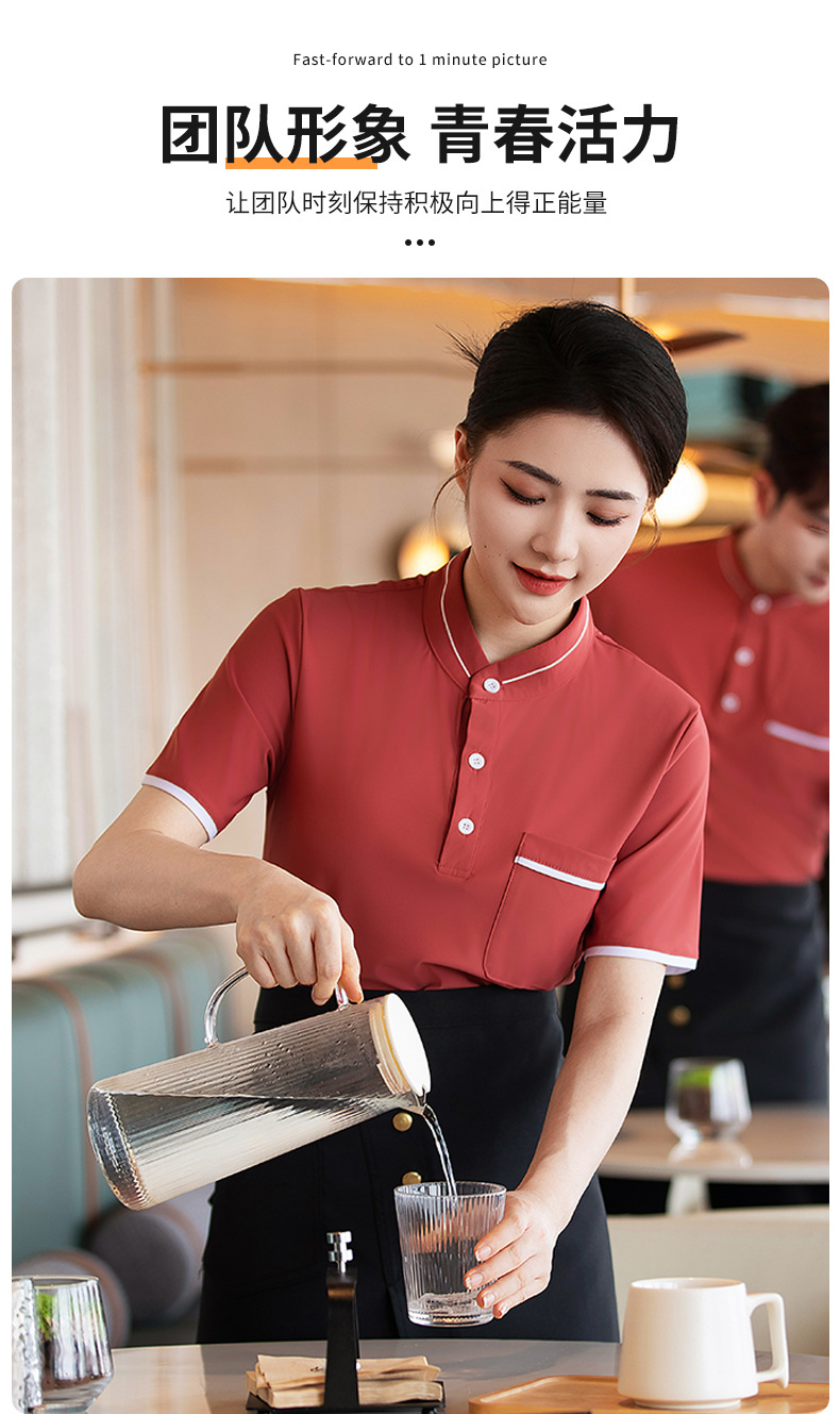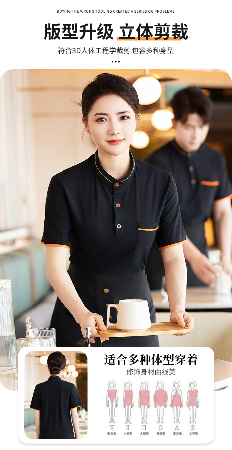 웨이터 작업복 반팔 셔츠 여성 호텔 밀크 티 카페 웨스턴 레스토랑 핫 팟 디저트 샵 남녀 유니폼