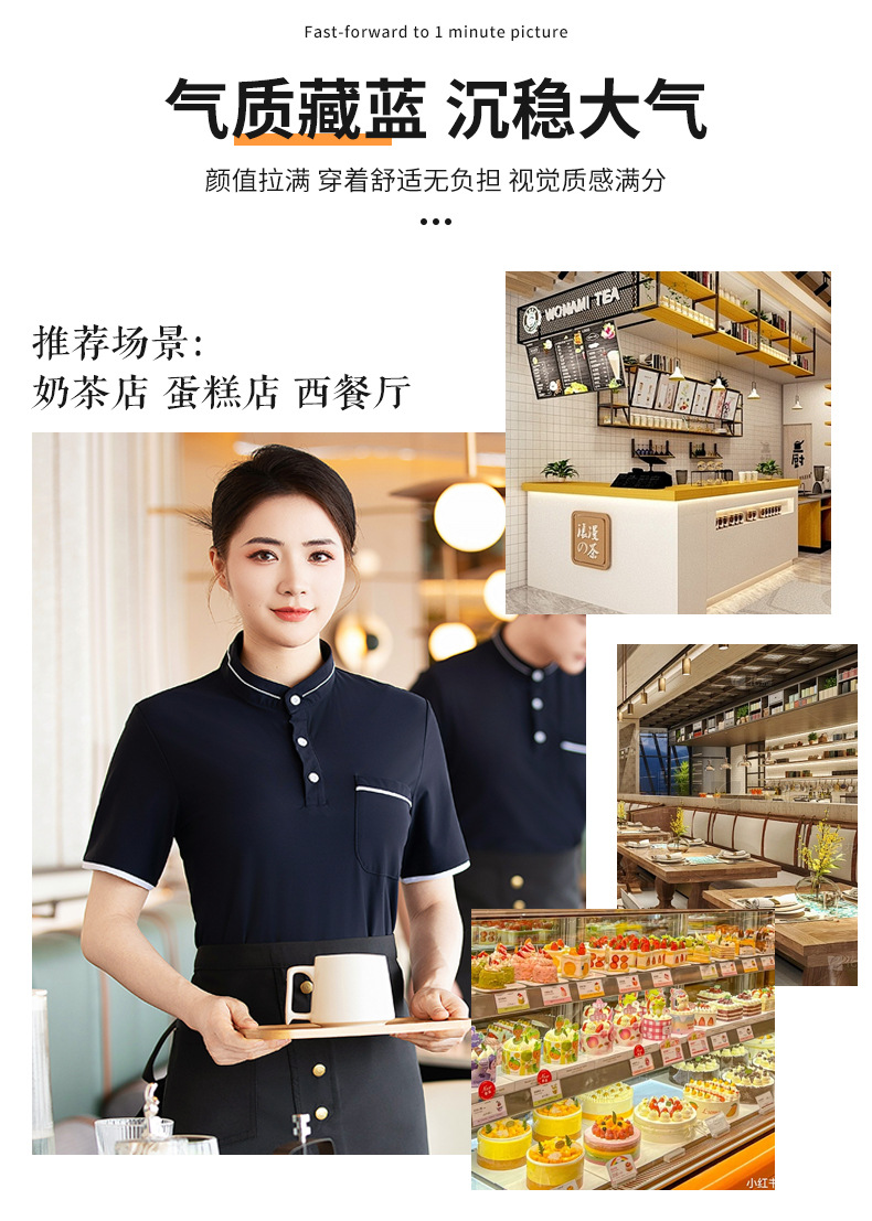 웨이터 작업복 반팔 셔츠 여성 호텔 밀크 티 카페 웨스턴 레스토랑 핫 팟 디저트 샵 남녀 유니폼스토어 가기