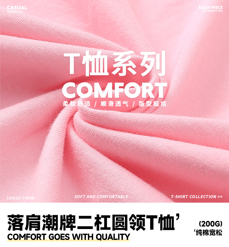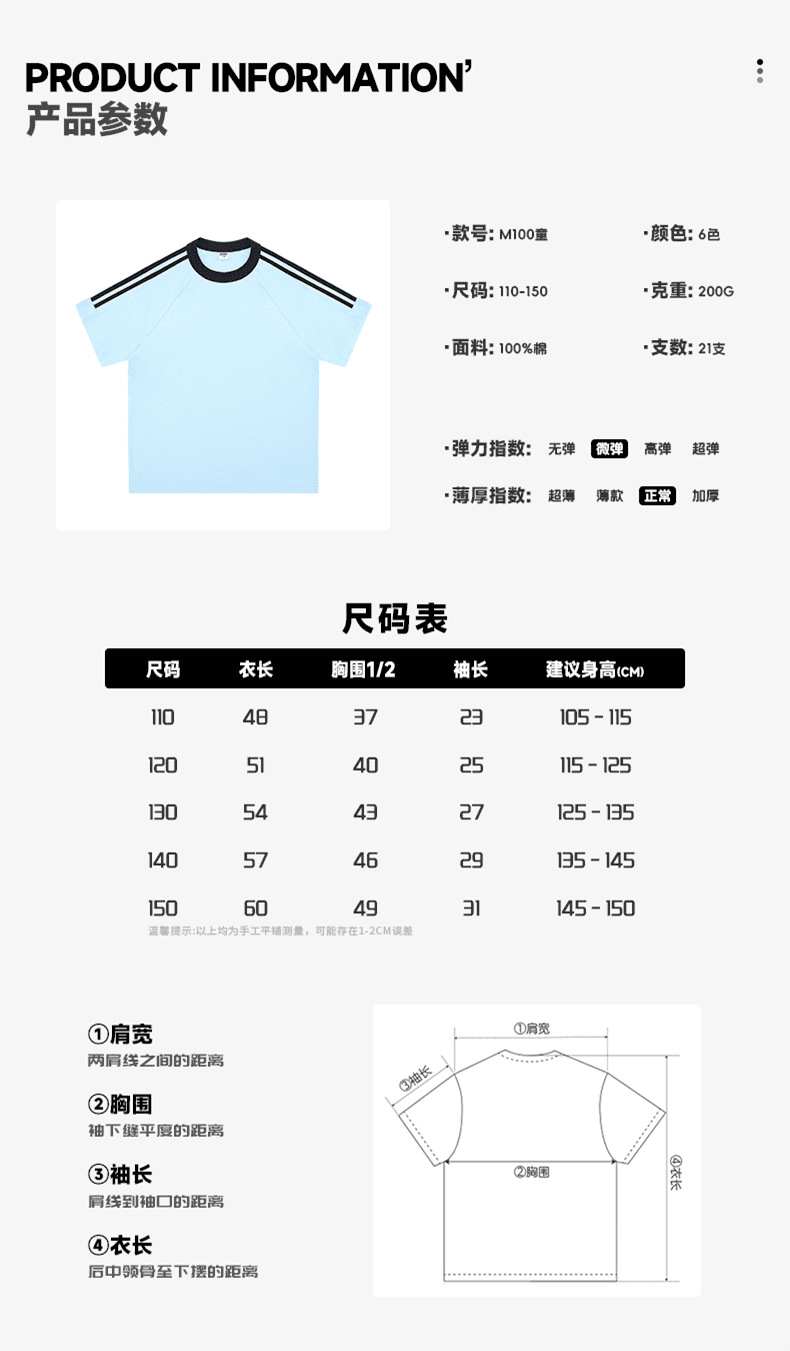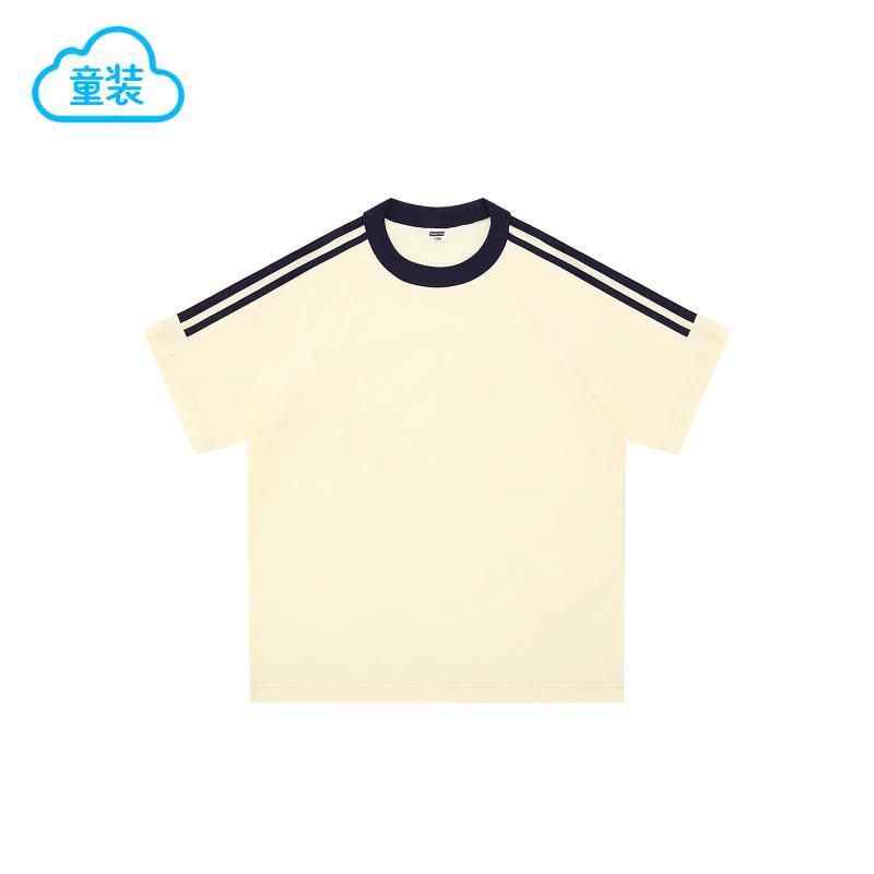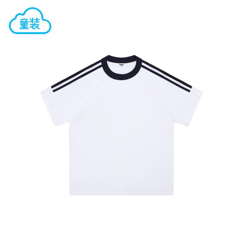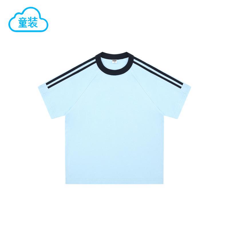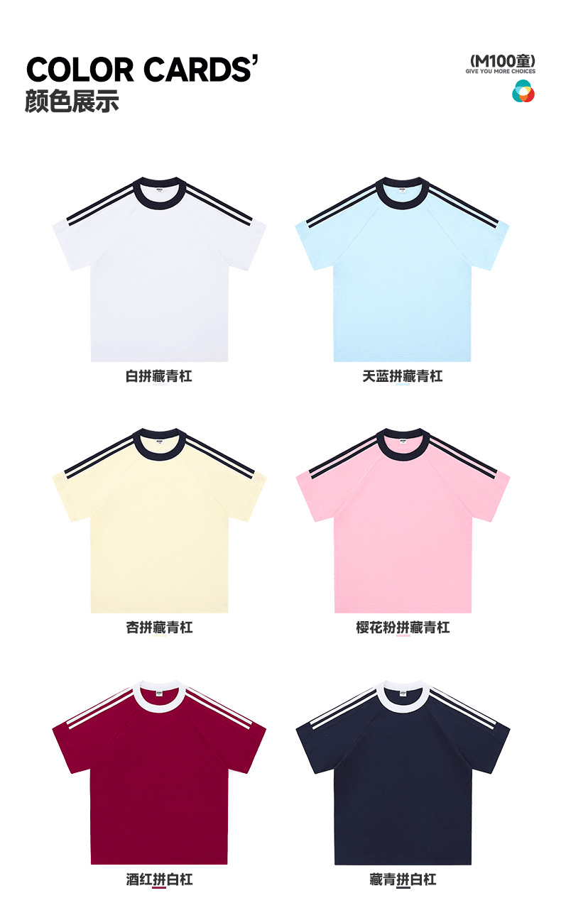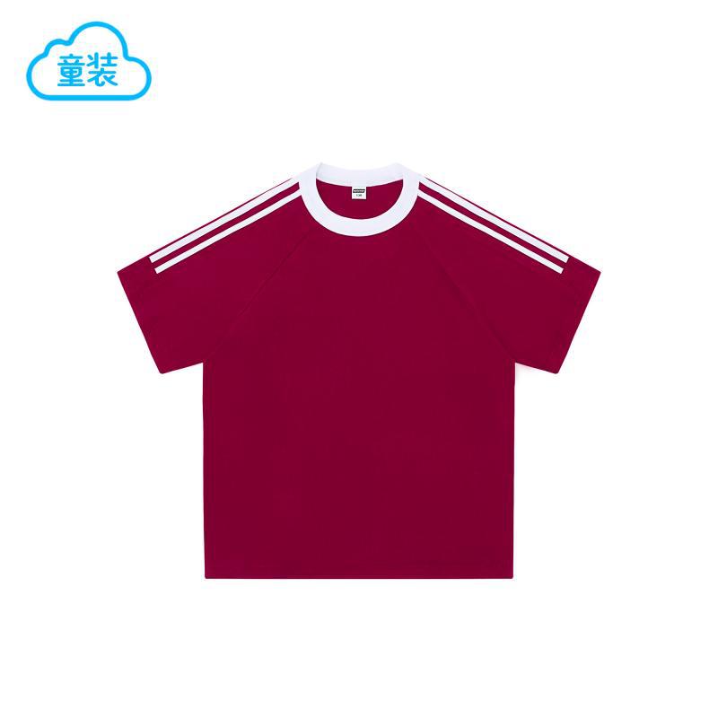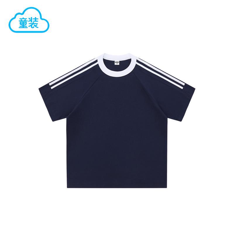 200g 코튼 드롭 숄더 조수 브랜드 2 바 크루 넥 티셔츠 소년과 소녀 대비 컬러 기본 셔츠 맞춤형 프린트 자수스토어 가기