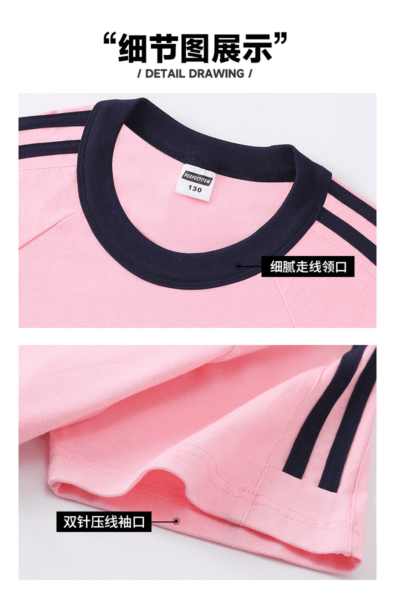 200g 코튼 드롭 숄더 조수 브랜드 2 바 크루 넥 티셔츠 소년과 소녀 대비 컬러 기본 셔츠 맞춤형 프린트 자수