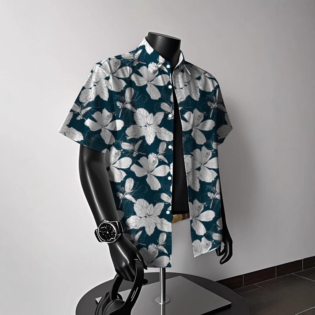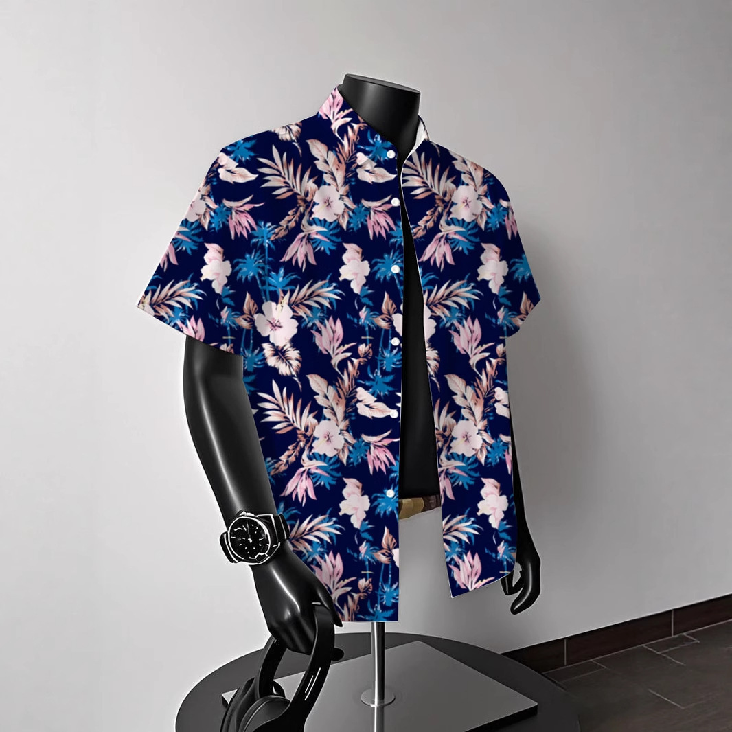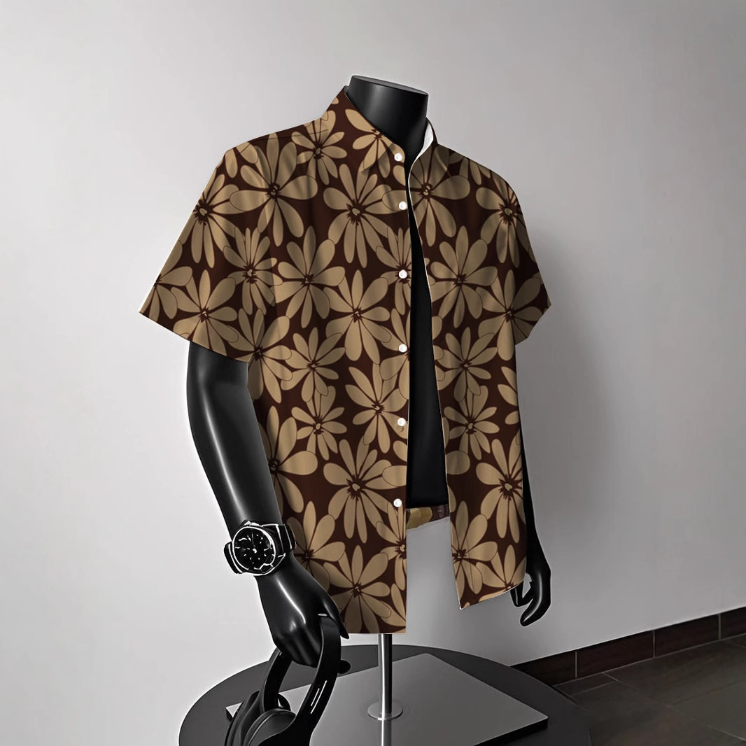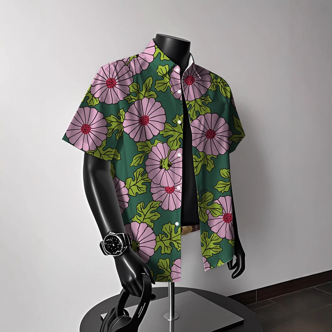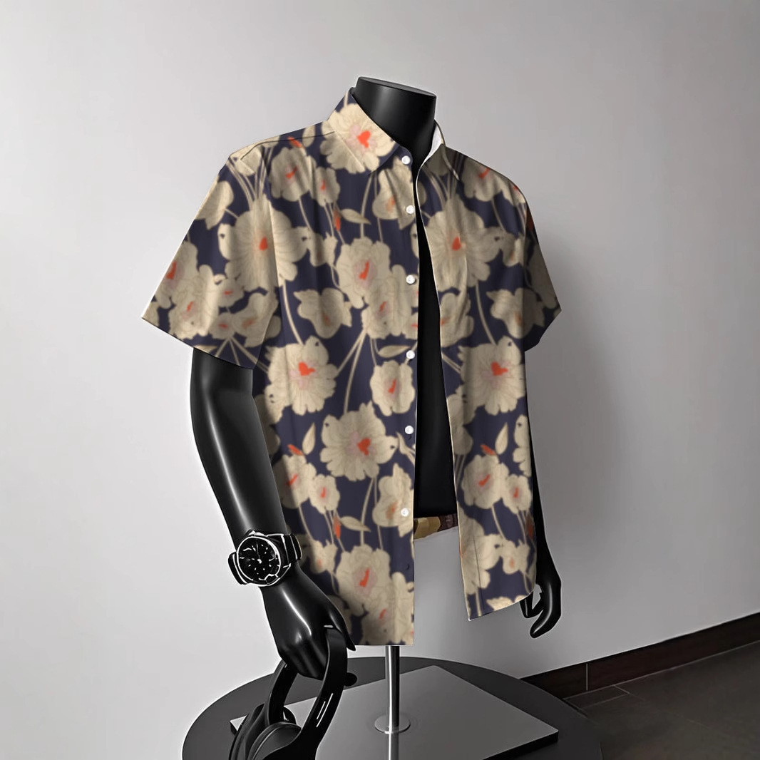 홍콩 스타일 빈티지 하와이 아메리칸 스타일 짧은 소매 꽃 셔츠 남성 여름 캐주얼 트렌디 한 비치 커플 셔츠