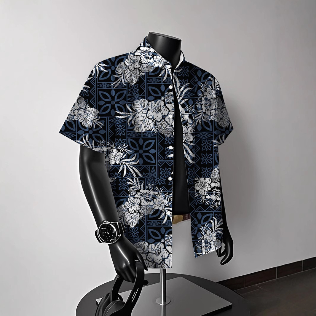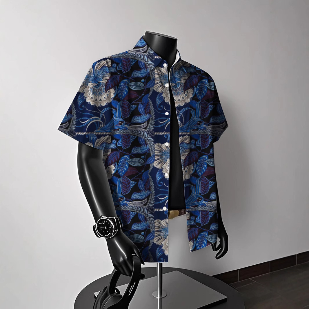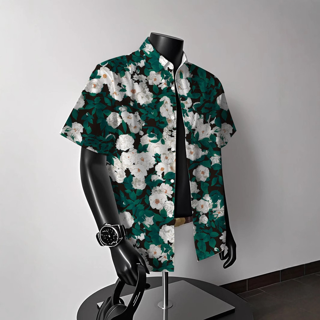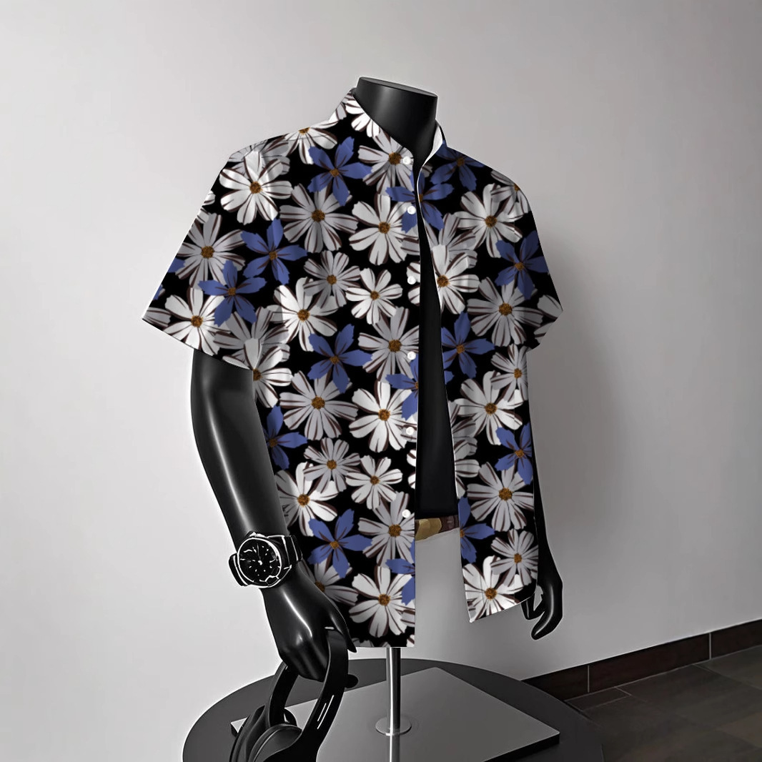 홍콩 스타일 빈티지 하와이 아메리칸 스타일 짧은 소매 꽃 셔츠 남성 여름 캐주얼 트렌디 한 비치 커플 셔츠