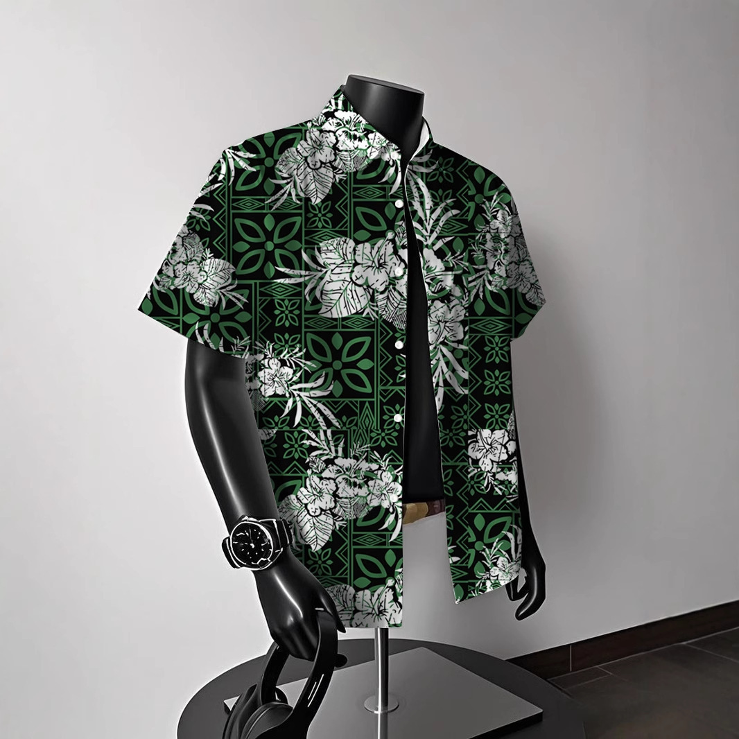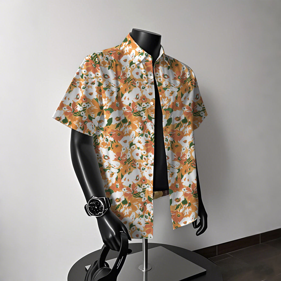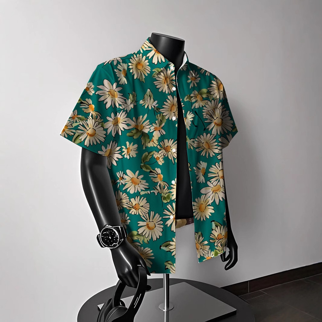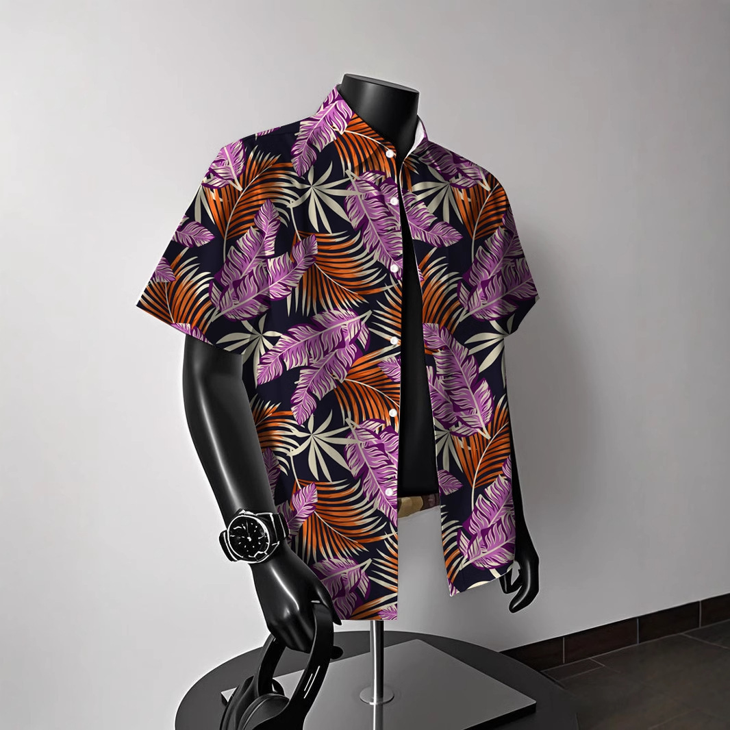 홍콩 스타일 빈티지 하와이 아메리칸 스타일 짧은 소매 꽃 셔츠 남성 여름 캐주얼 트렌디 한 비치 커플 셔츠