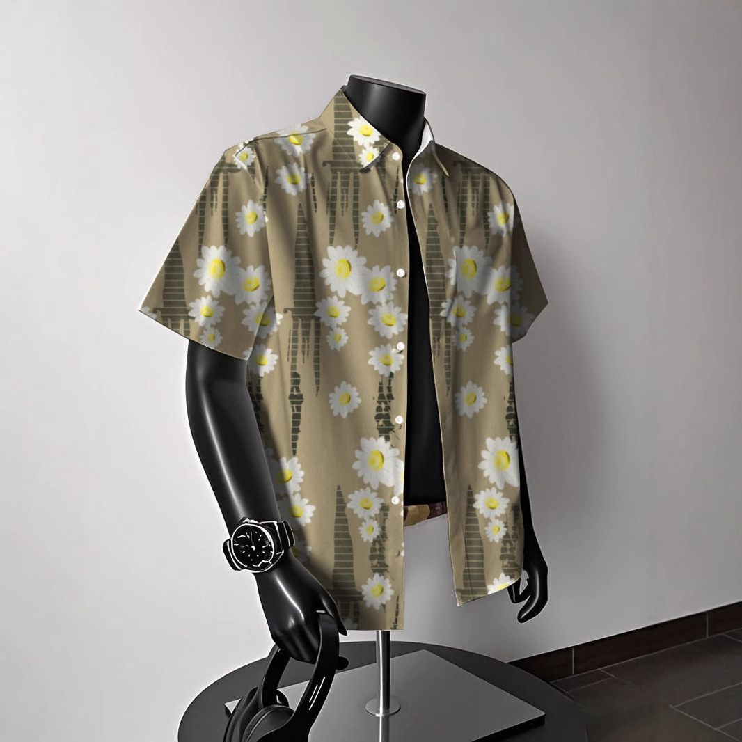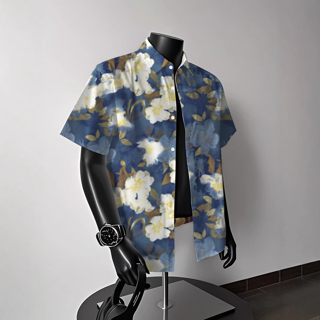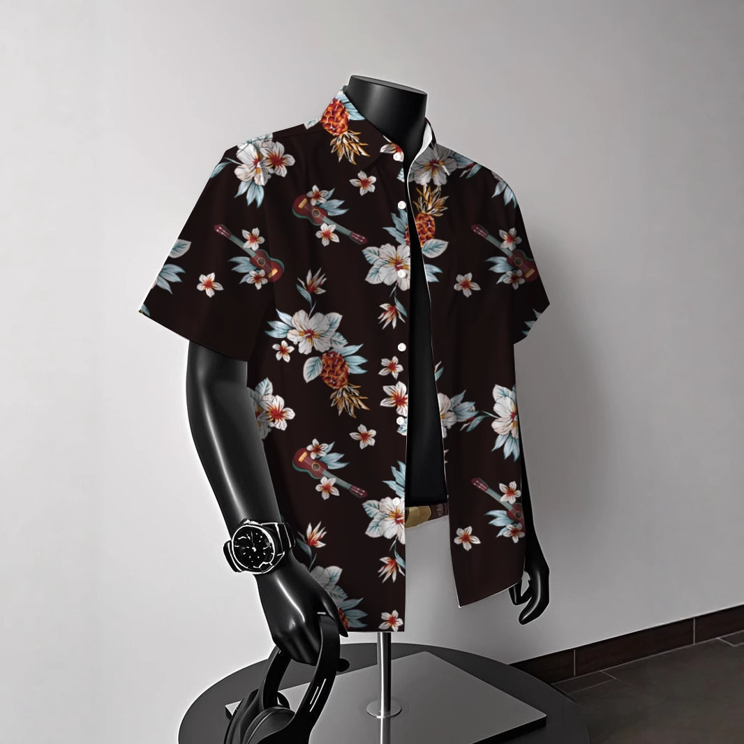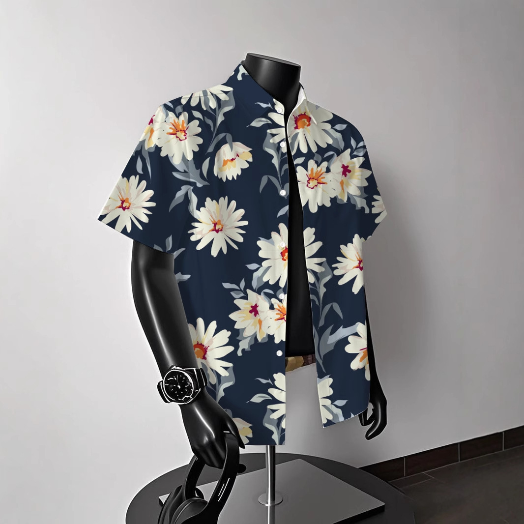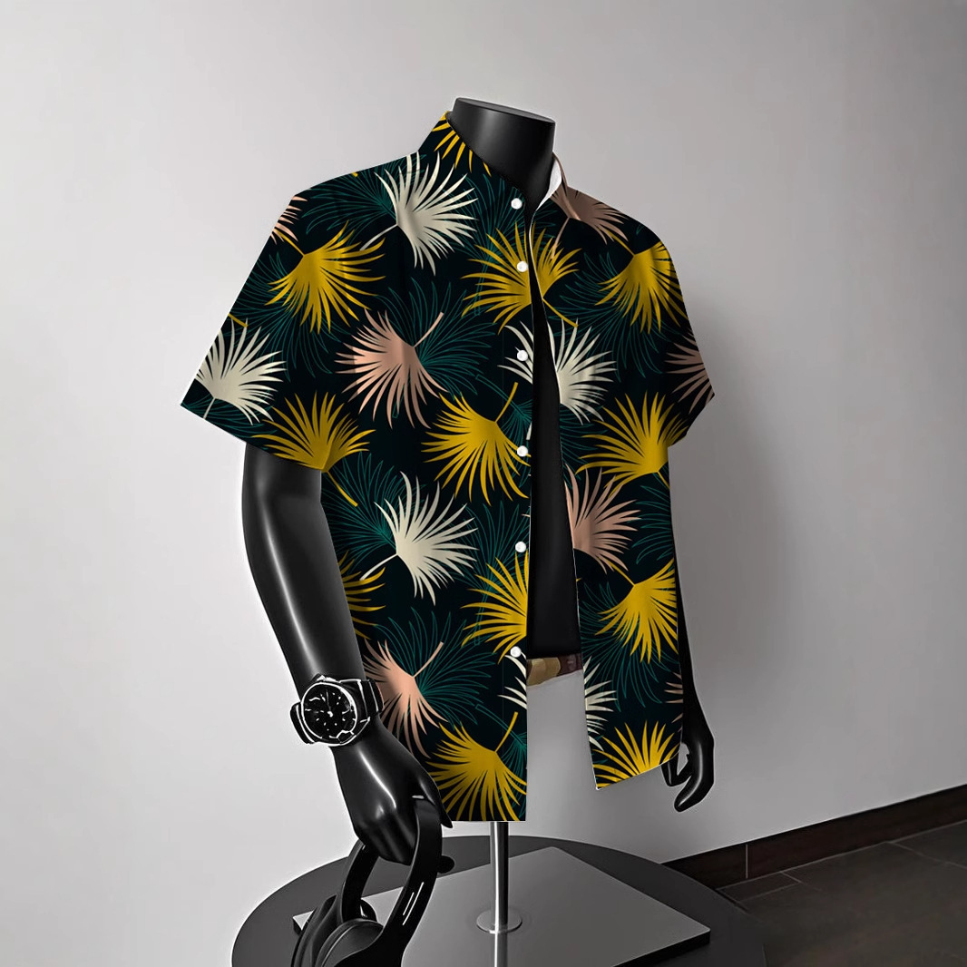 홍콩 스타일 빈티지 하와이 아메리칸 스타일 짧은 소매 꽃 셔츠 남성 여름 캐주얼 트렌디 한 비치 커플 셔츠