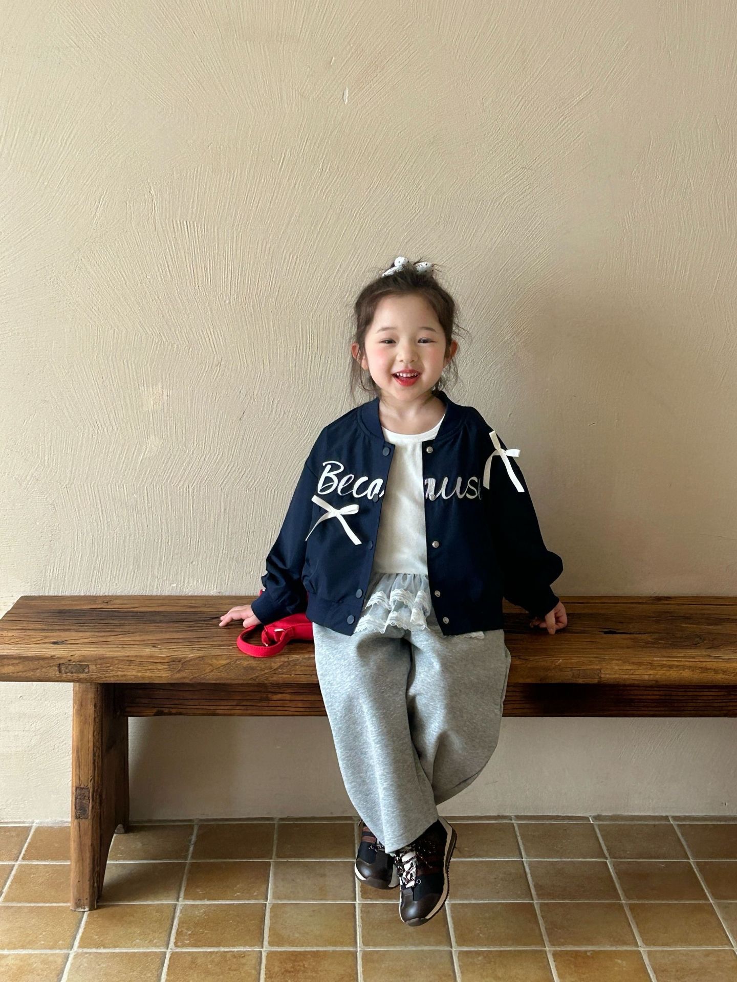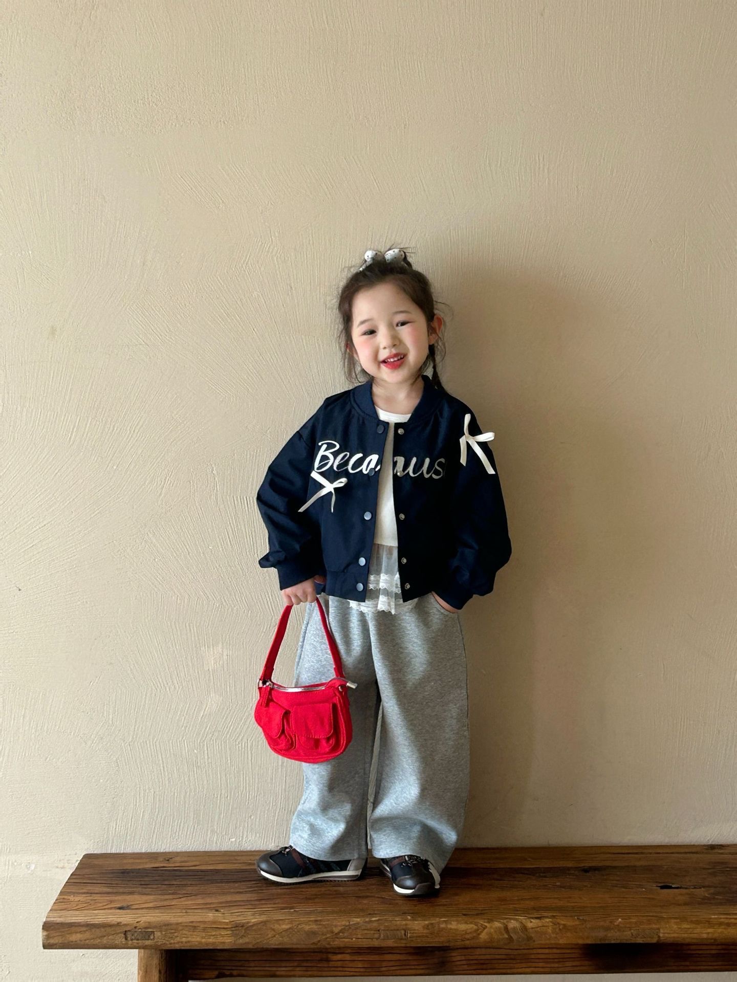 2025 봄 새 아동복 한국 아동복 소녀 패션 나비 편지 자수 코트 야구 세트스토어 가기