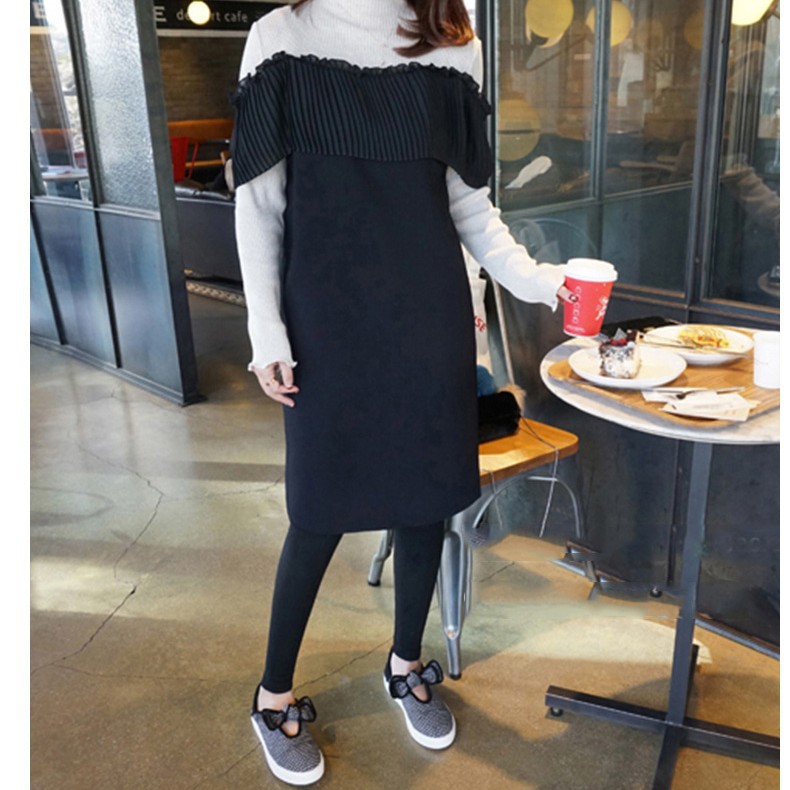 가을 · 겨울 캐주얼 페이크 투피스 프런트 지퍼 모유 수유 원피스 한국식 임산부 수유 원피스