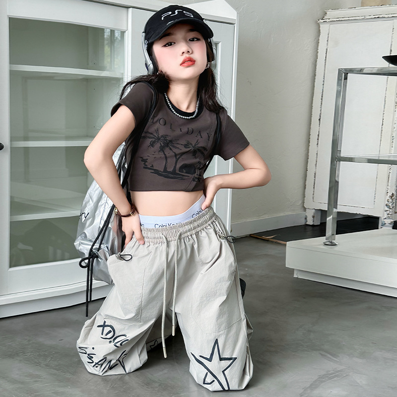 소녀 커버 바지 세트 2025 년 여름 새로운 어린이 여름 원피스 서양식 반팔 티셔츠 걸스 여름 바지스토어 가기