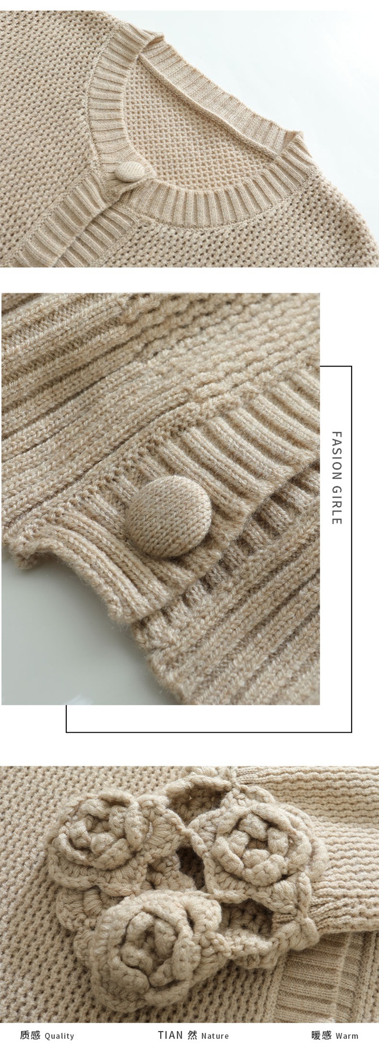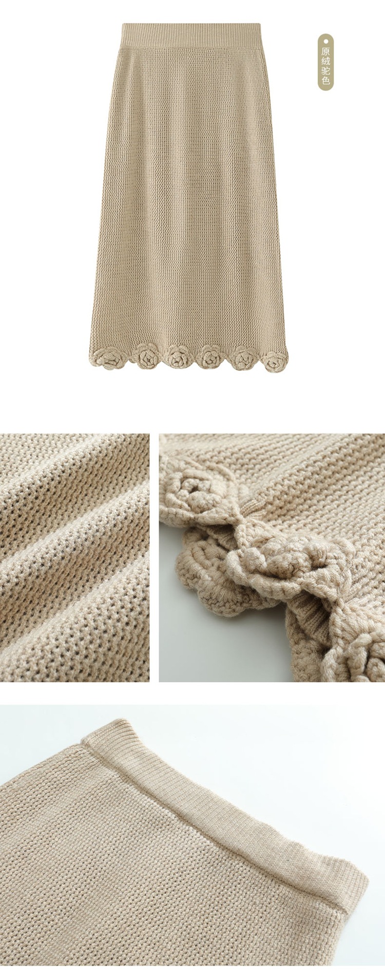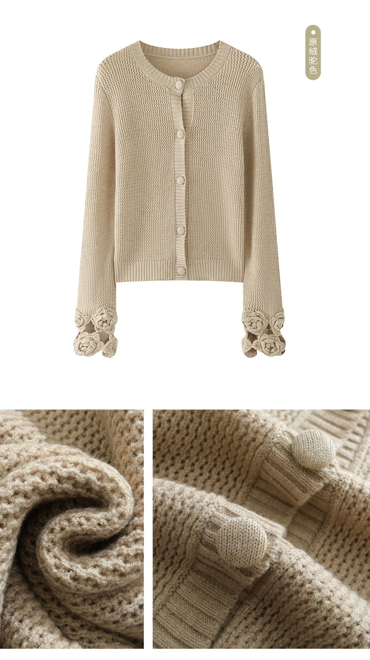 가을과 겨울 새로운 할로우 손으로 만든 크로 셰 뜨개질 양모 원피스 크루 넥 스웨터 카디건 니트 오버 스커트 세트 여성용 투피스 세트