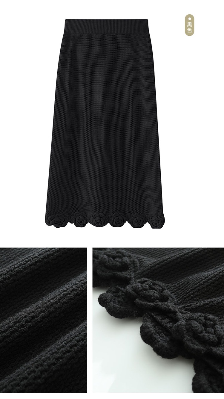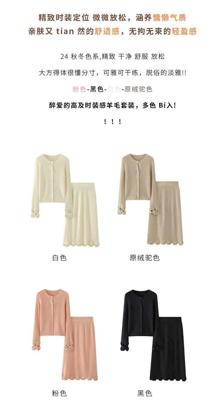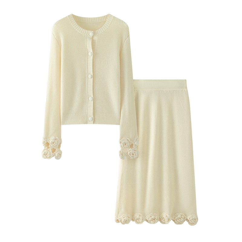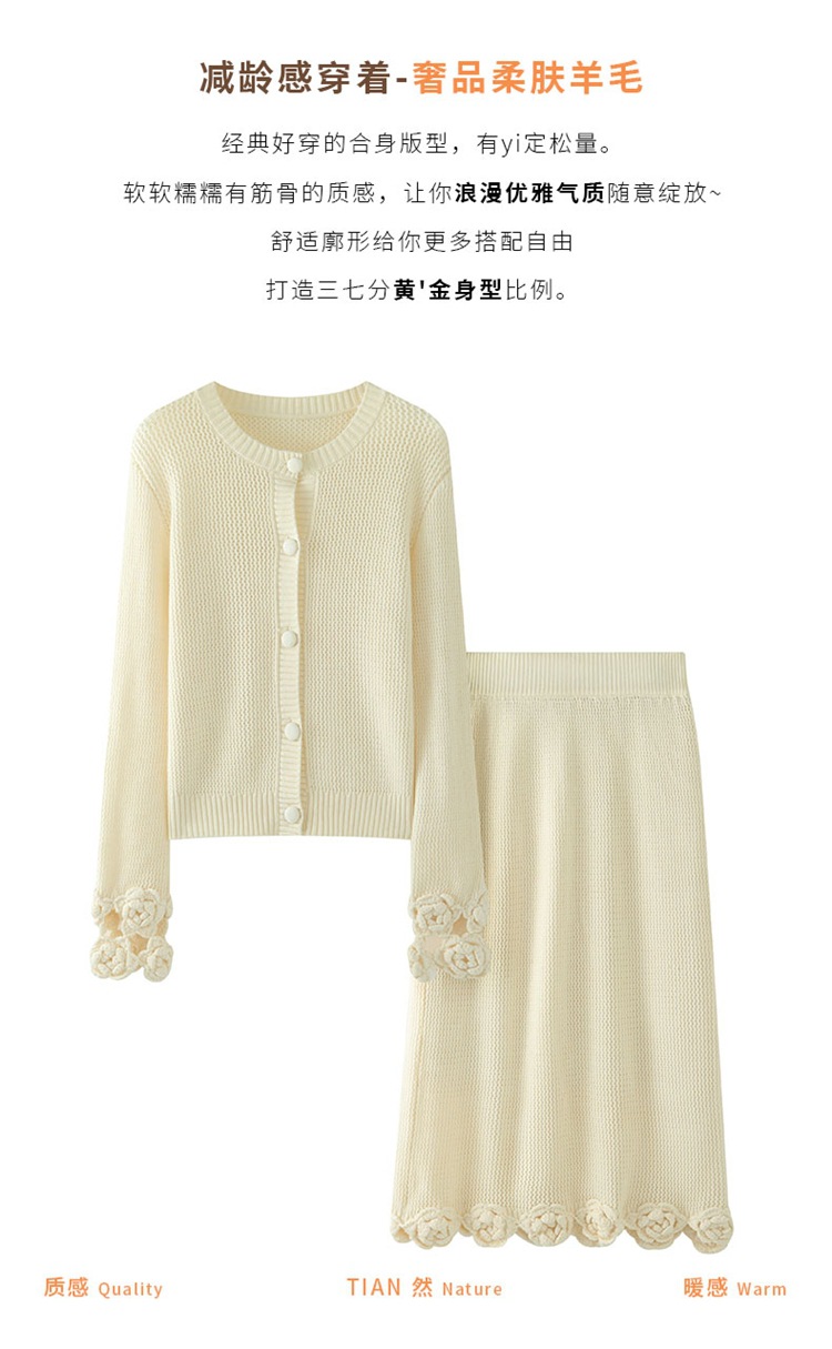가을과 겨울 새로운 할로우 손으로 만든 크로 셰 뜨개질 양모 원피스 크루 넥 스웨터 카디건 니트 오버 스커트 세트 여성용 투피스 세트스토어 가기