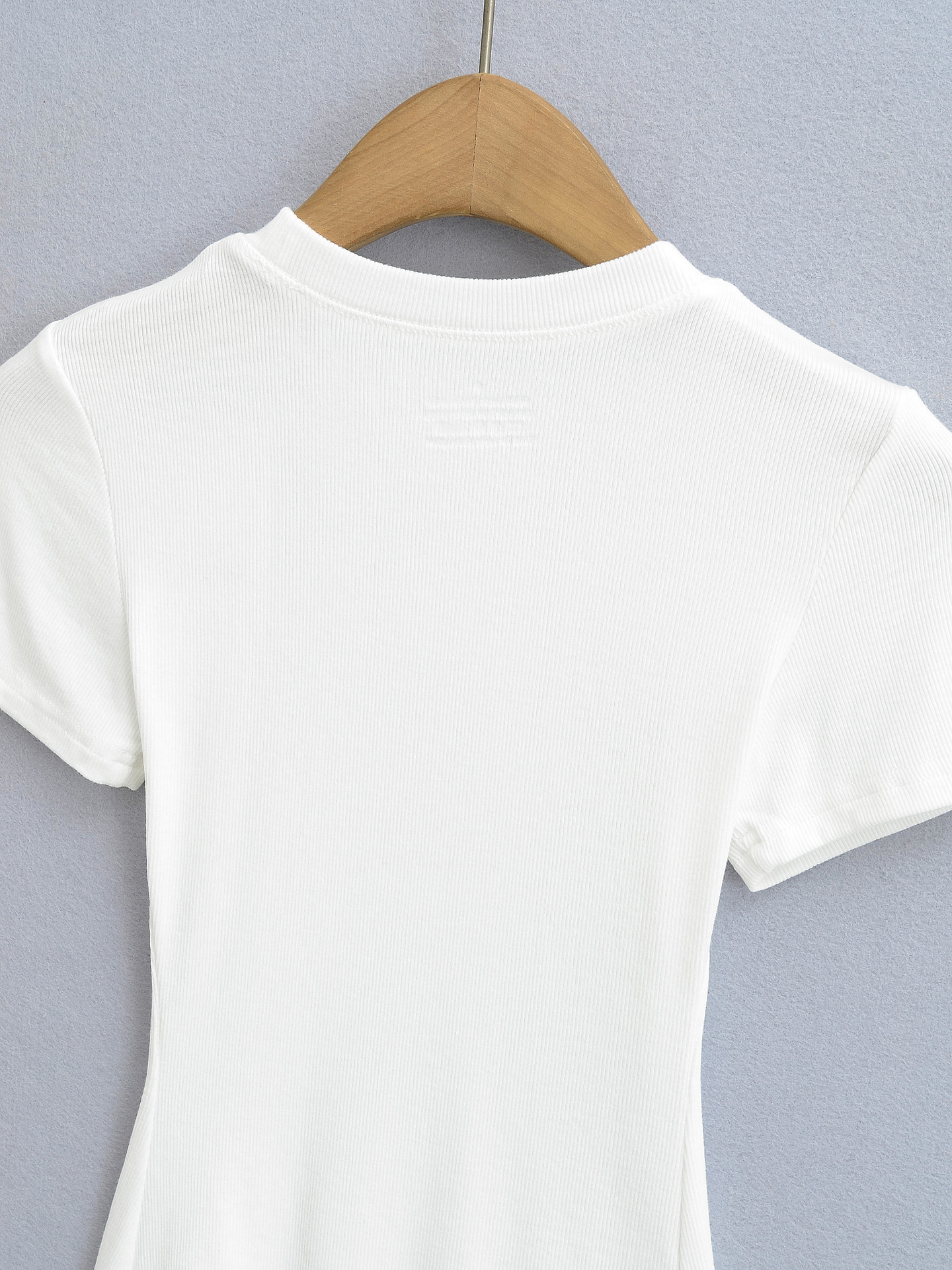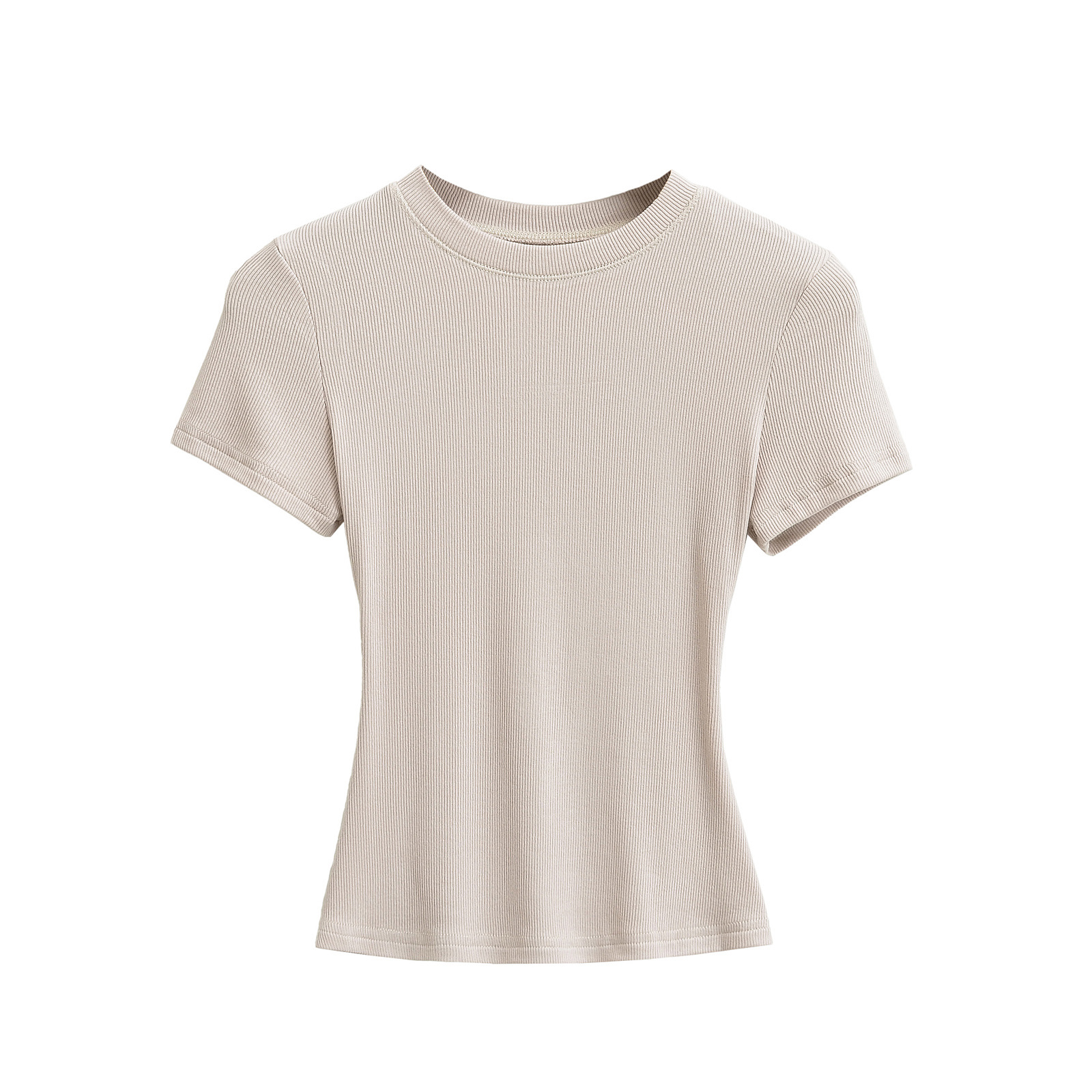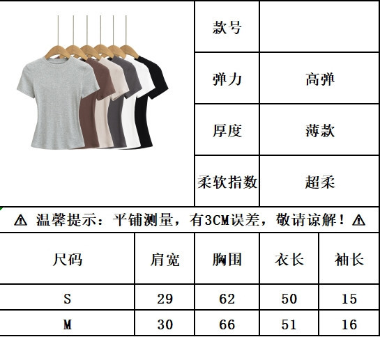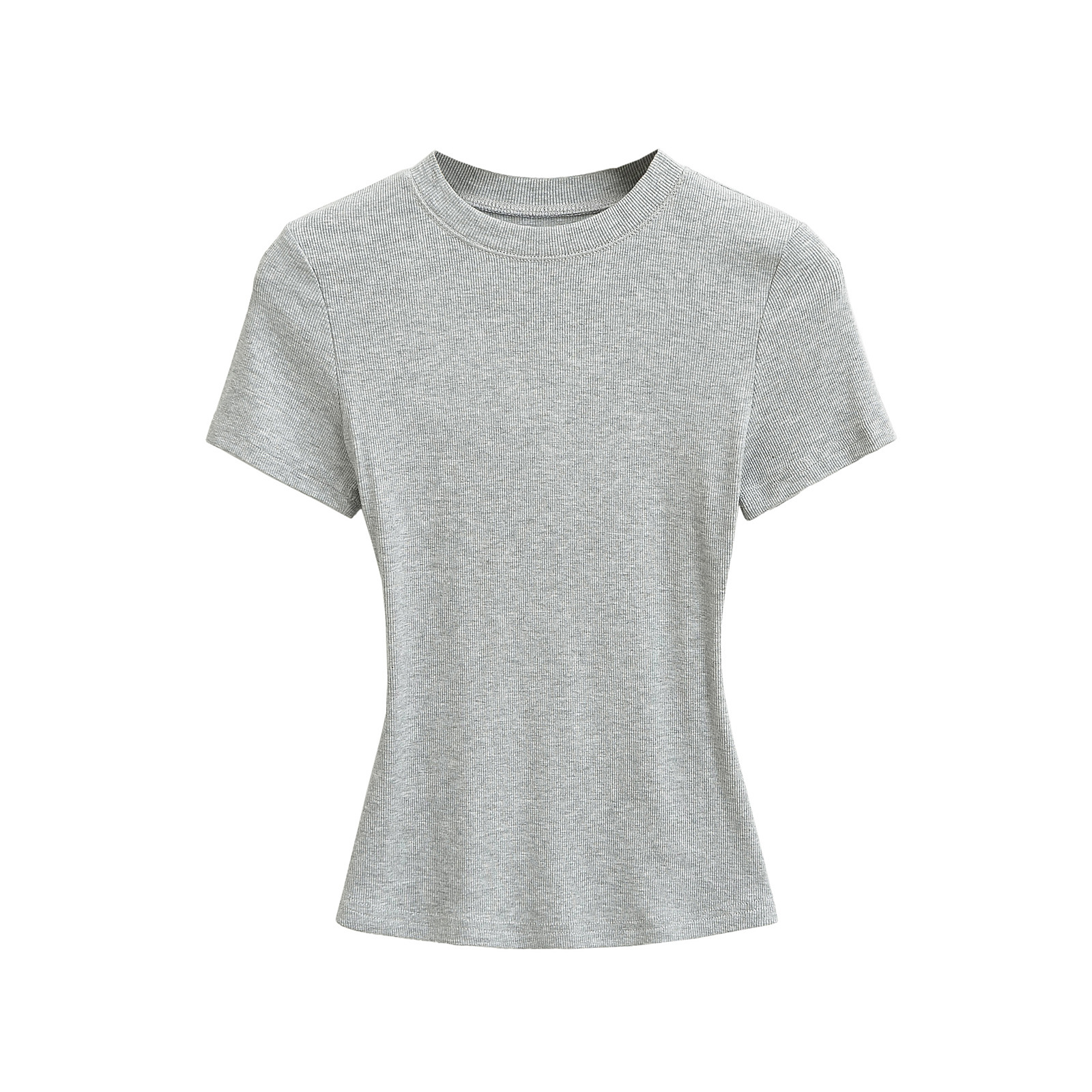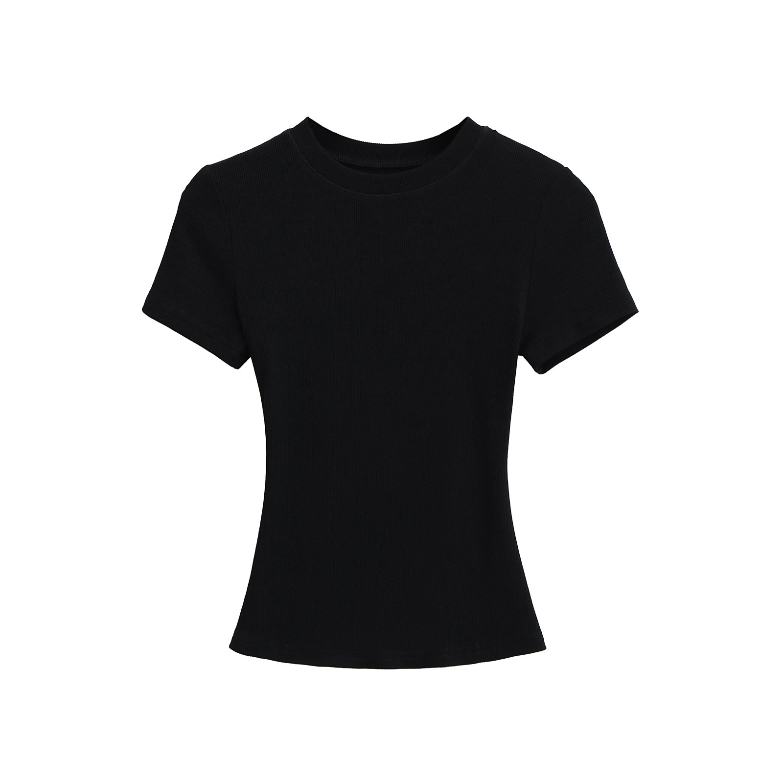 2025 Hot Girl Threaded Tight 반팔 티셔츠 여성 여름 슬림 피트 작은 라운드 넥 솔리드 컬러 스트레치 스포츠 탑 크로스 보더스토어 가기