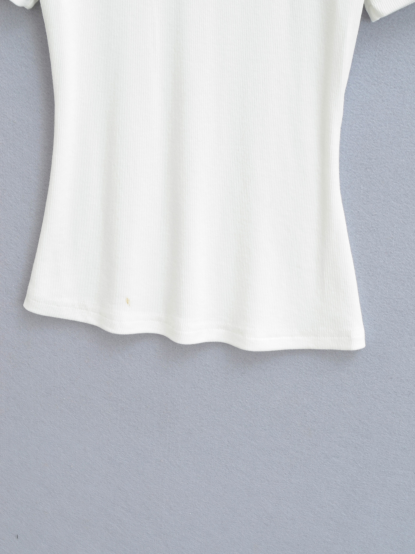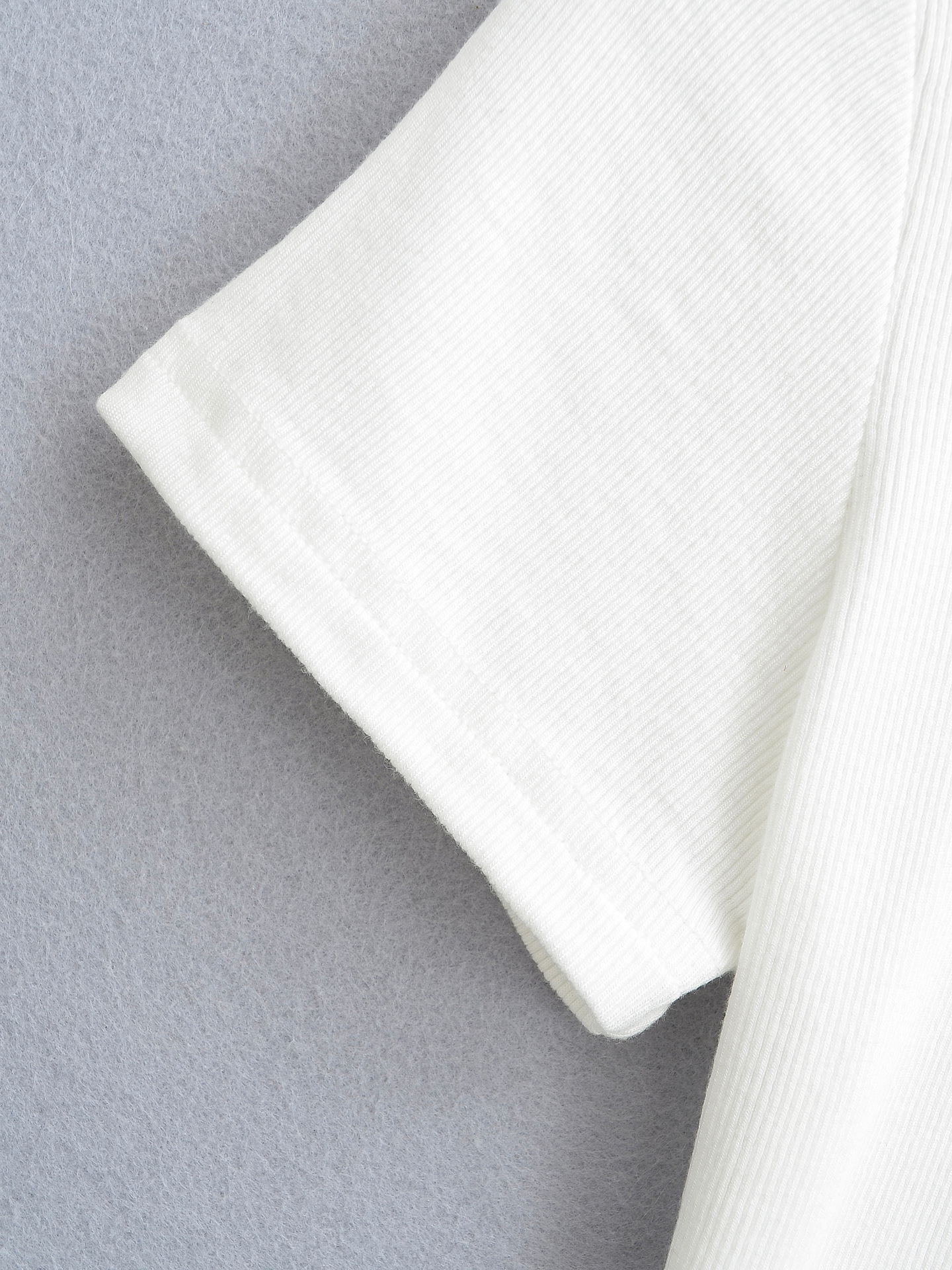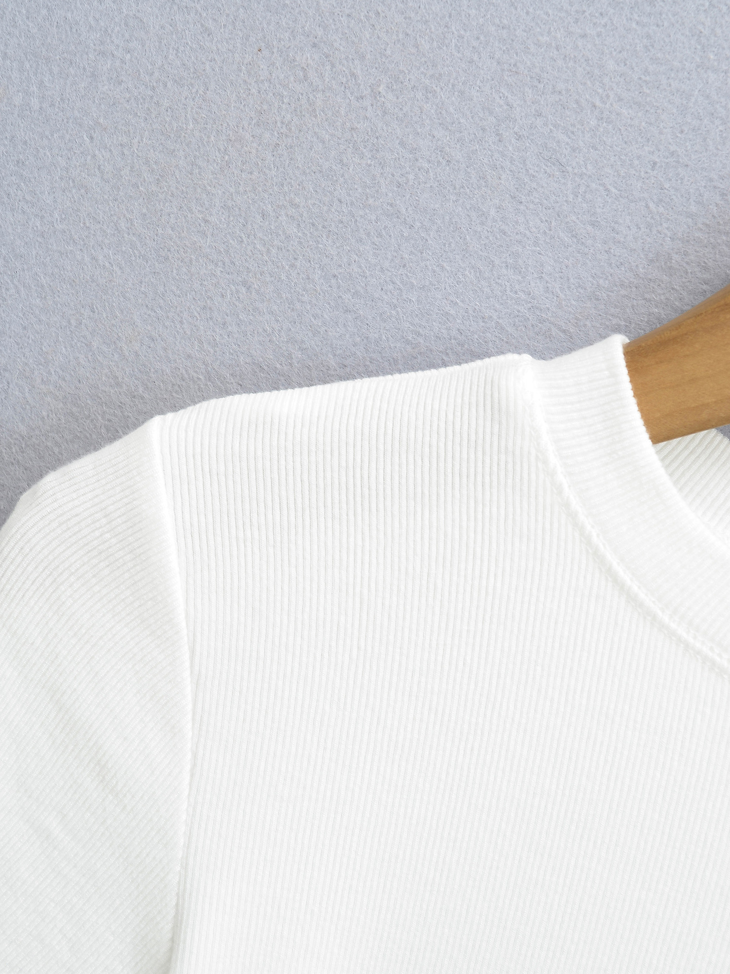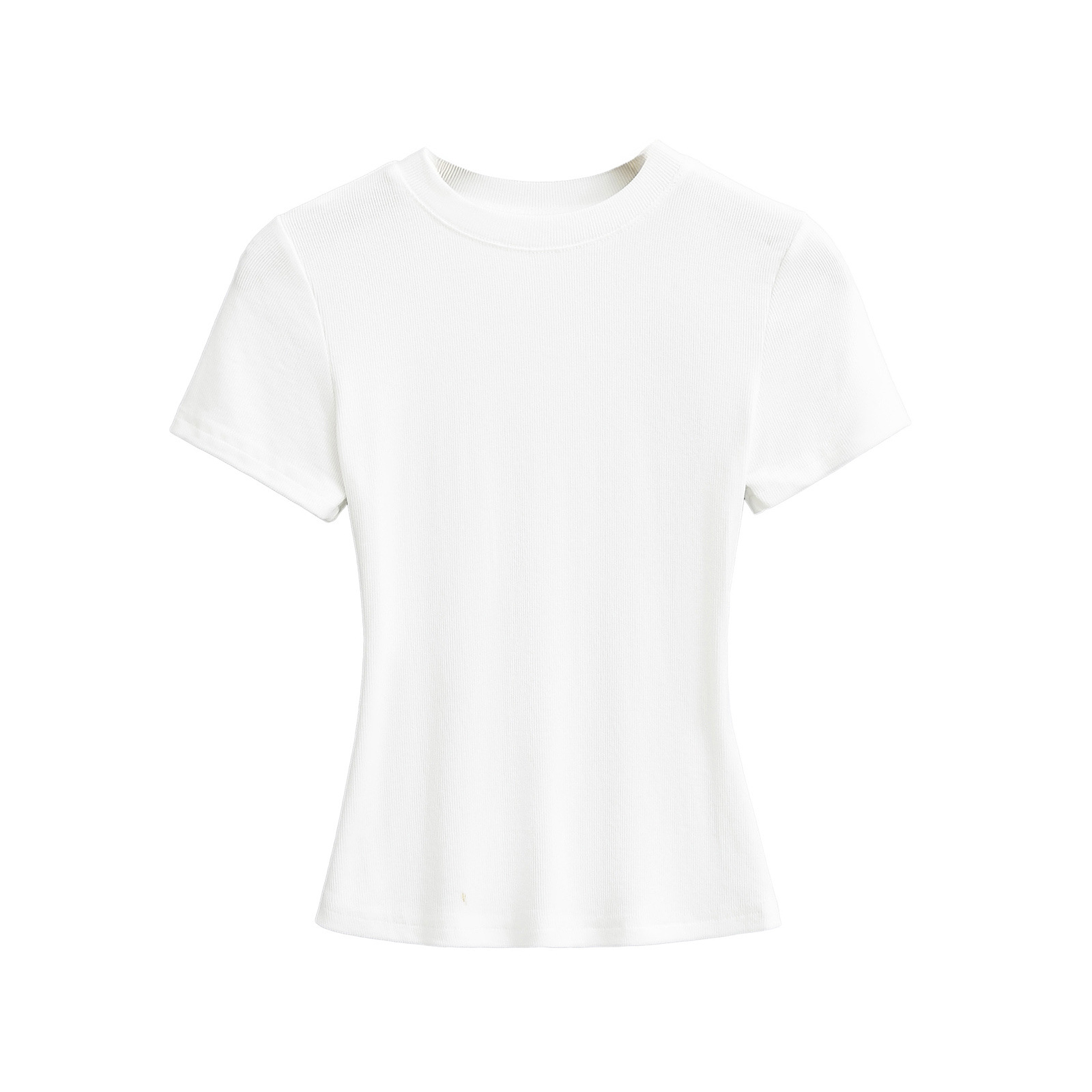 2025 Hot Girl Threaded Tight 반팔 티셔츠 여성 여름 슬림 피트 작은 라운드 넥 솔리드 컬러 스트레치 스포츠 탑 크로스 보더스토어 가기