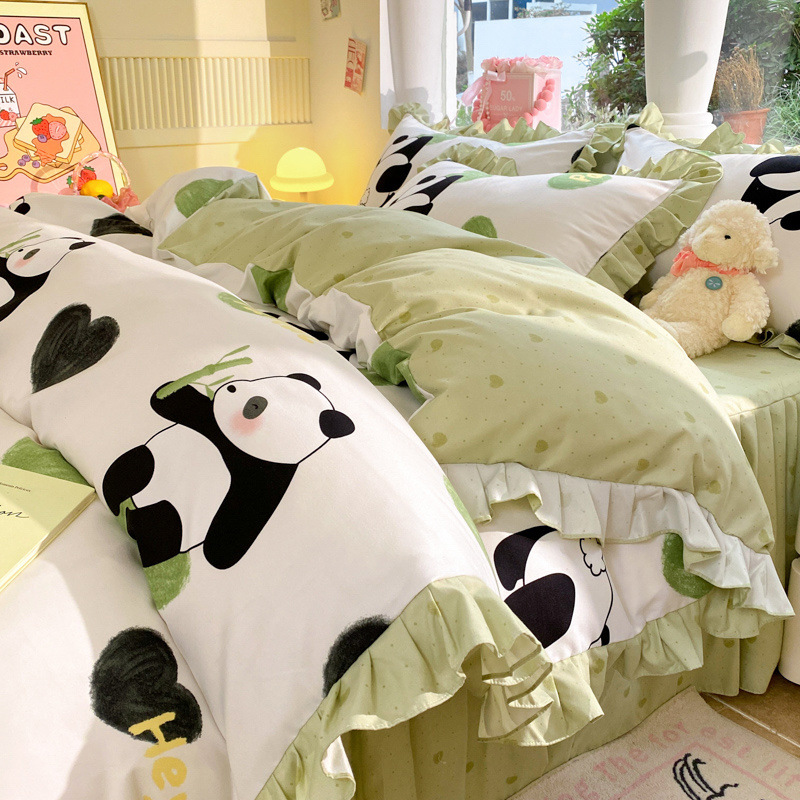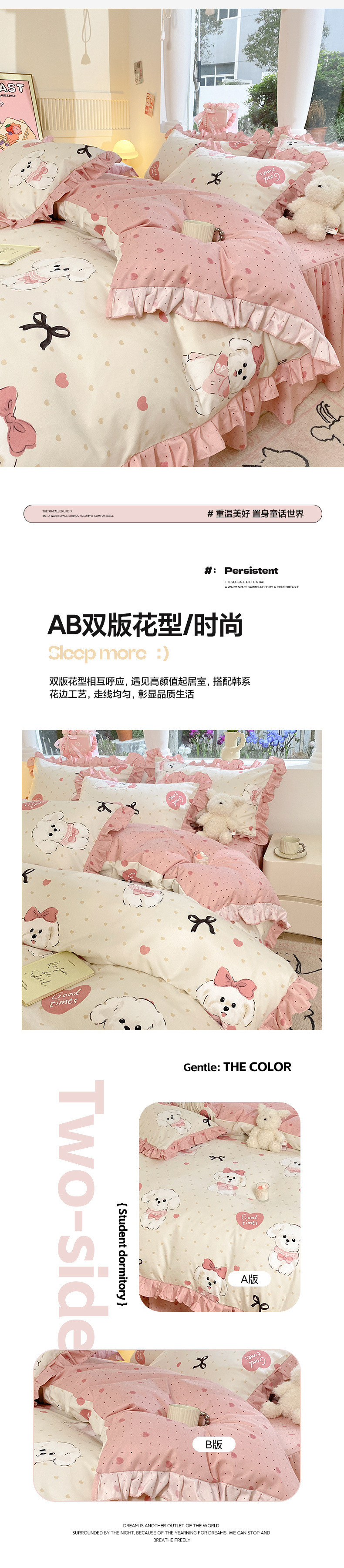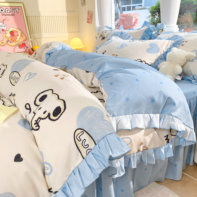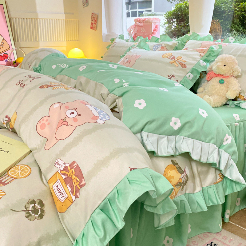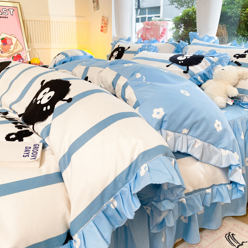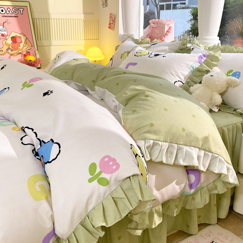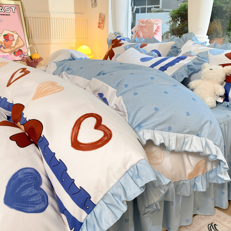 한국 스타일 공주 스타일 퀼트 커버 침대 시트 4 조각 세트 신선한 스타일 레이스 침대 3 조각 세트 면 침구 커버