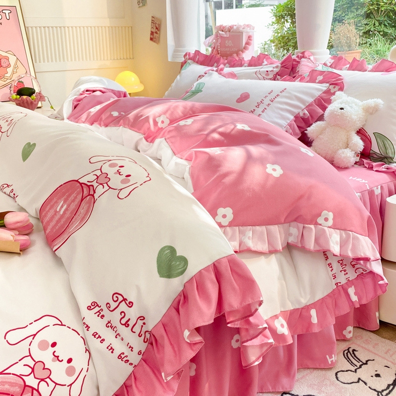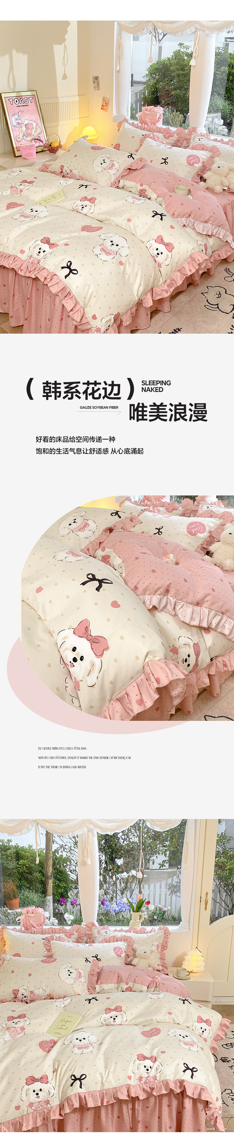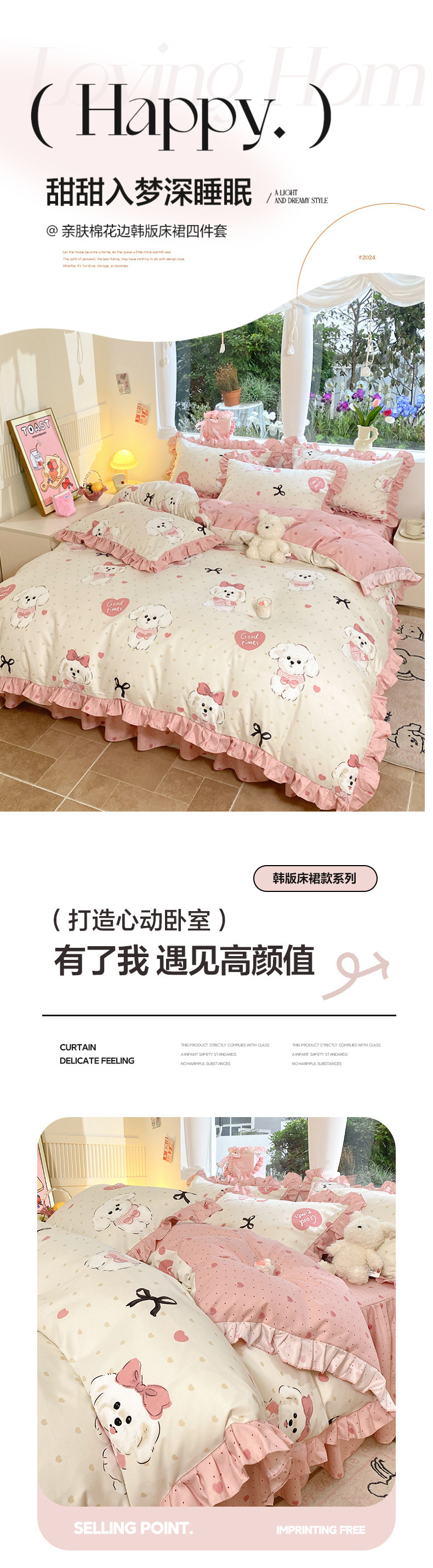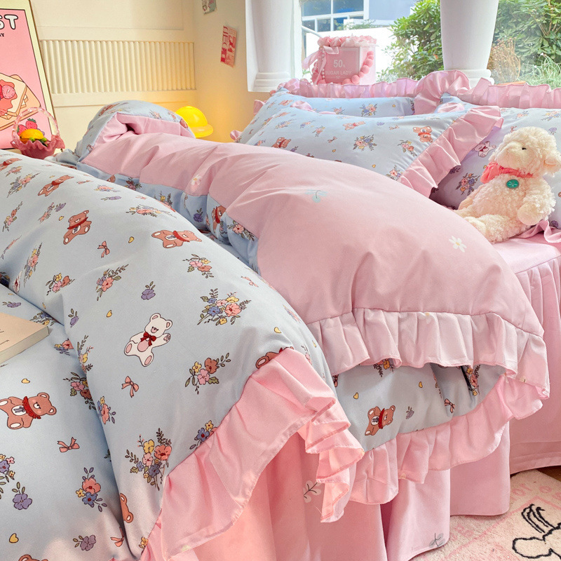 한국 스타일 공주 스타일 퀼트 커버 침대 시트 4 조각 세트 신선한 스타일 레이스 침대 3 조각 세트 면 침구 커버스토어 가기