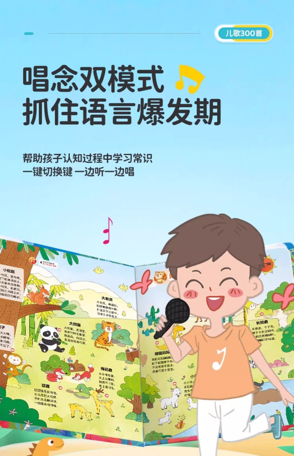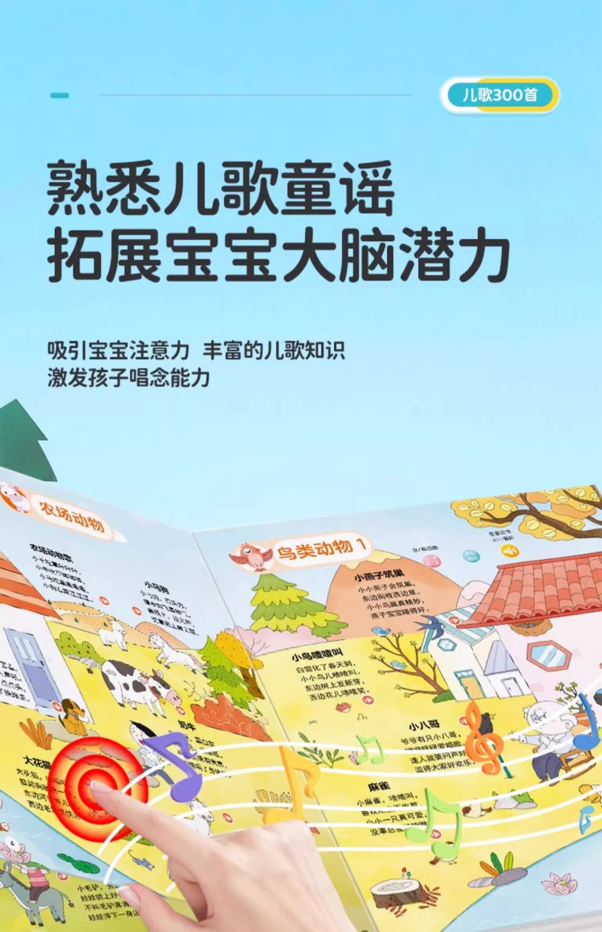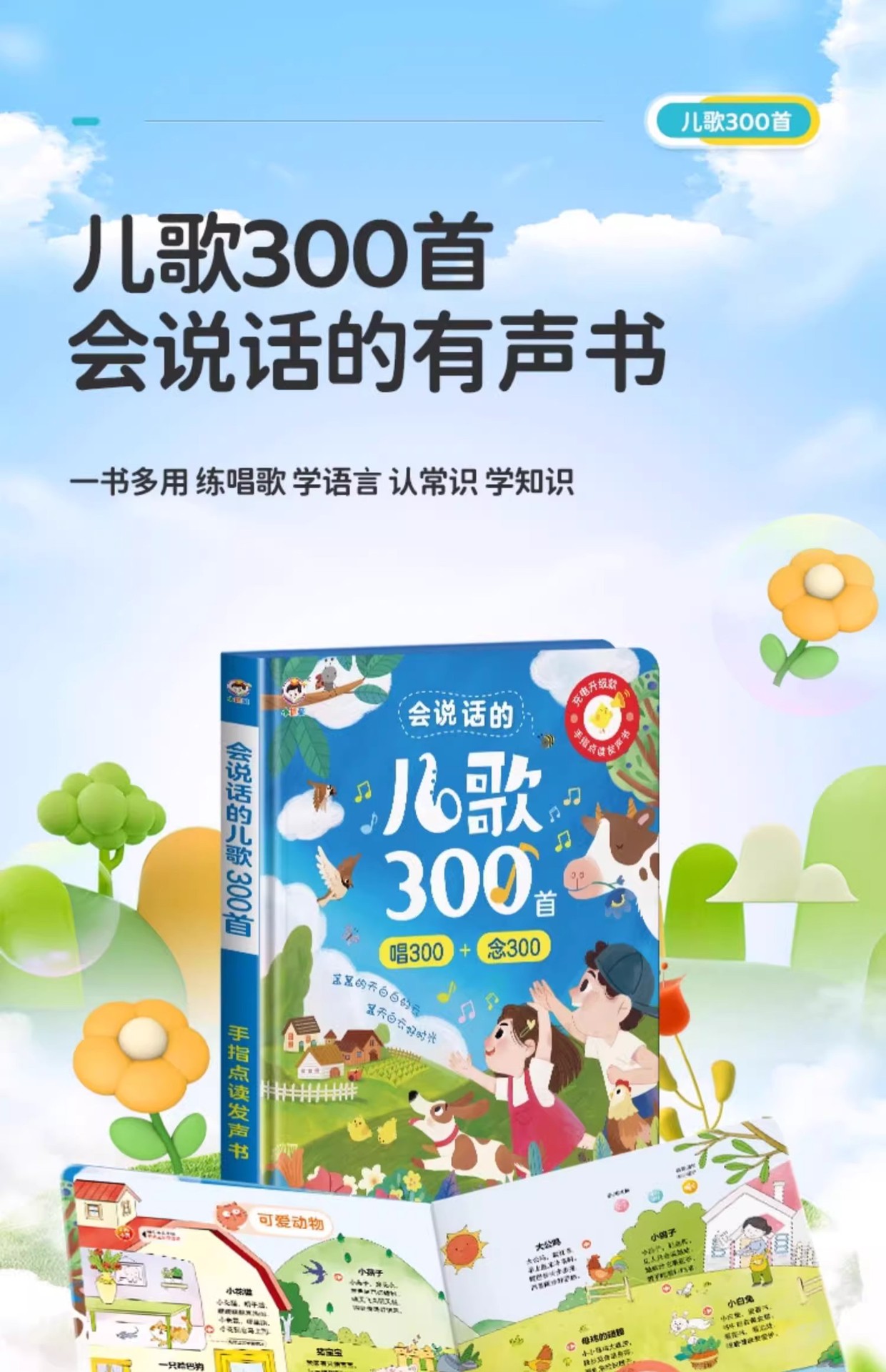 어린이 노래 300 조기 교육 오디오 책 아기가 보육원을 부르는 법을 배웁니다. 300 독서 음성 책 교육 장난감