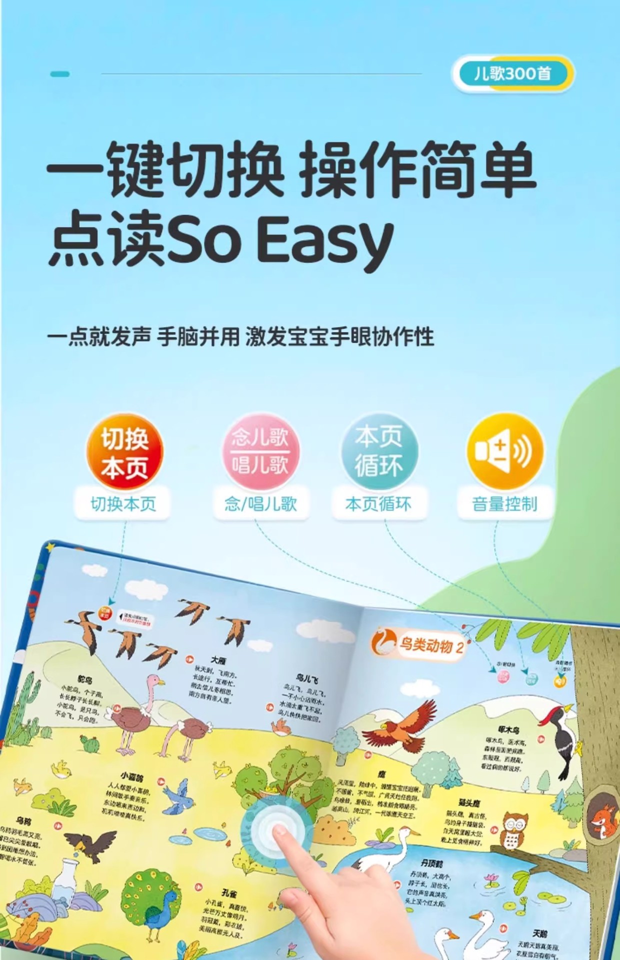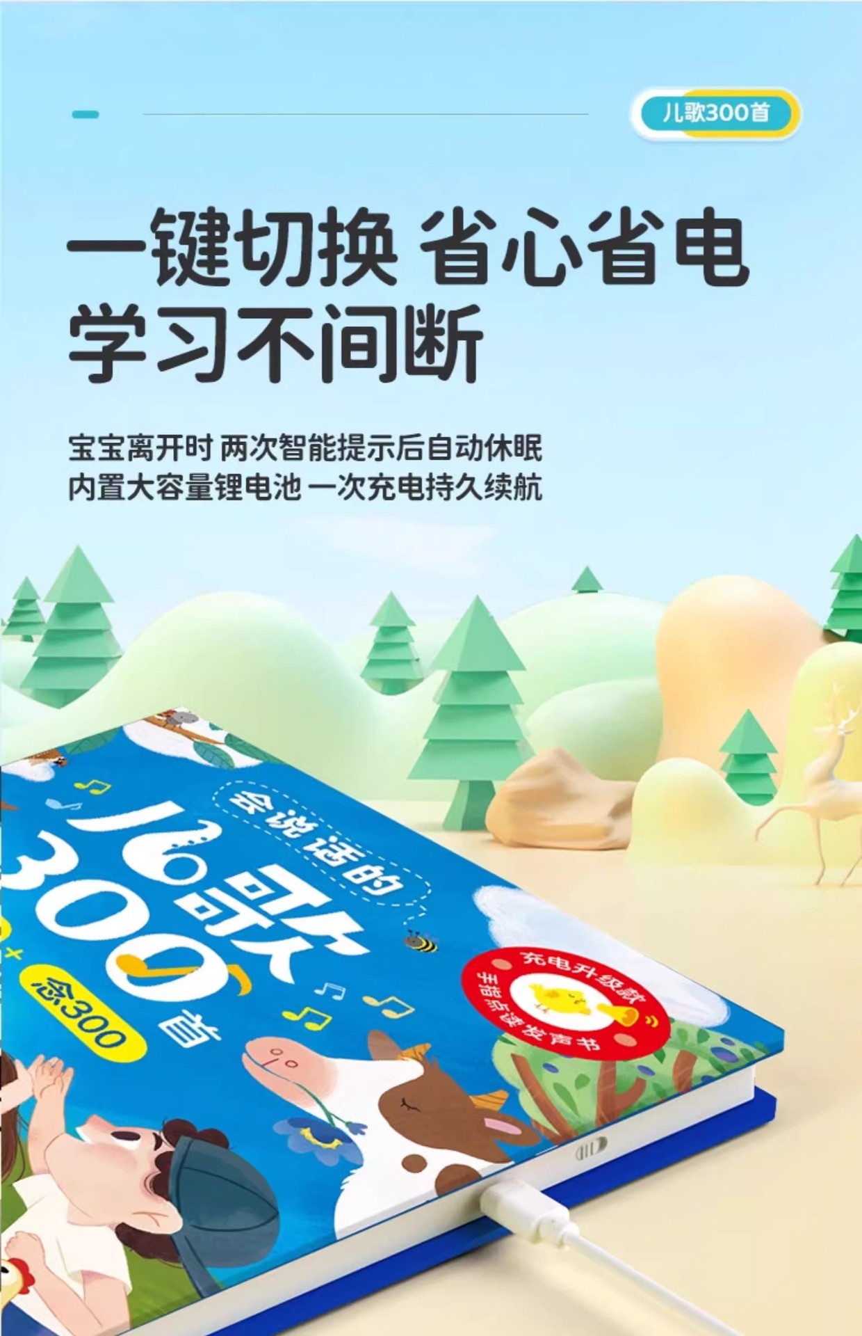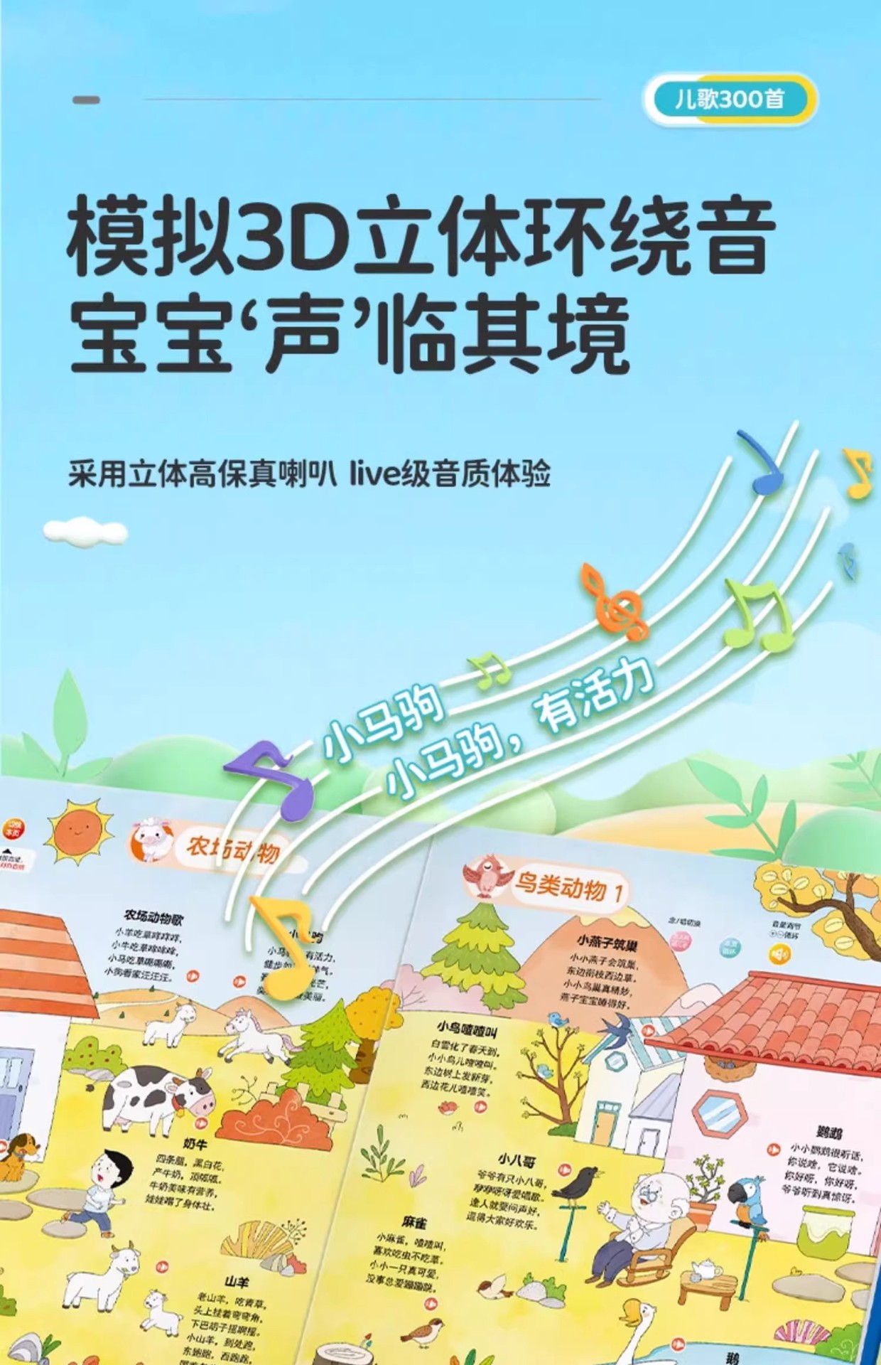 어린이 노래 300 조기 교육 오디오 책 아기가 보육원을 부르는 법을 배웁니다. 300 독서 음성 책 교육 장난감