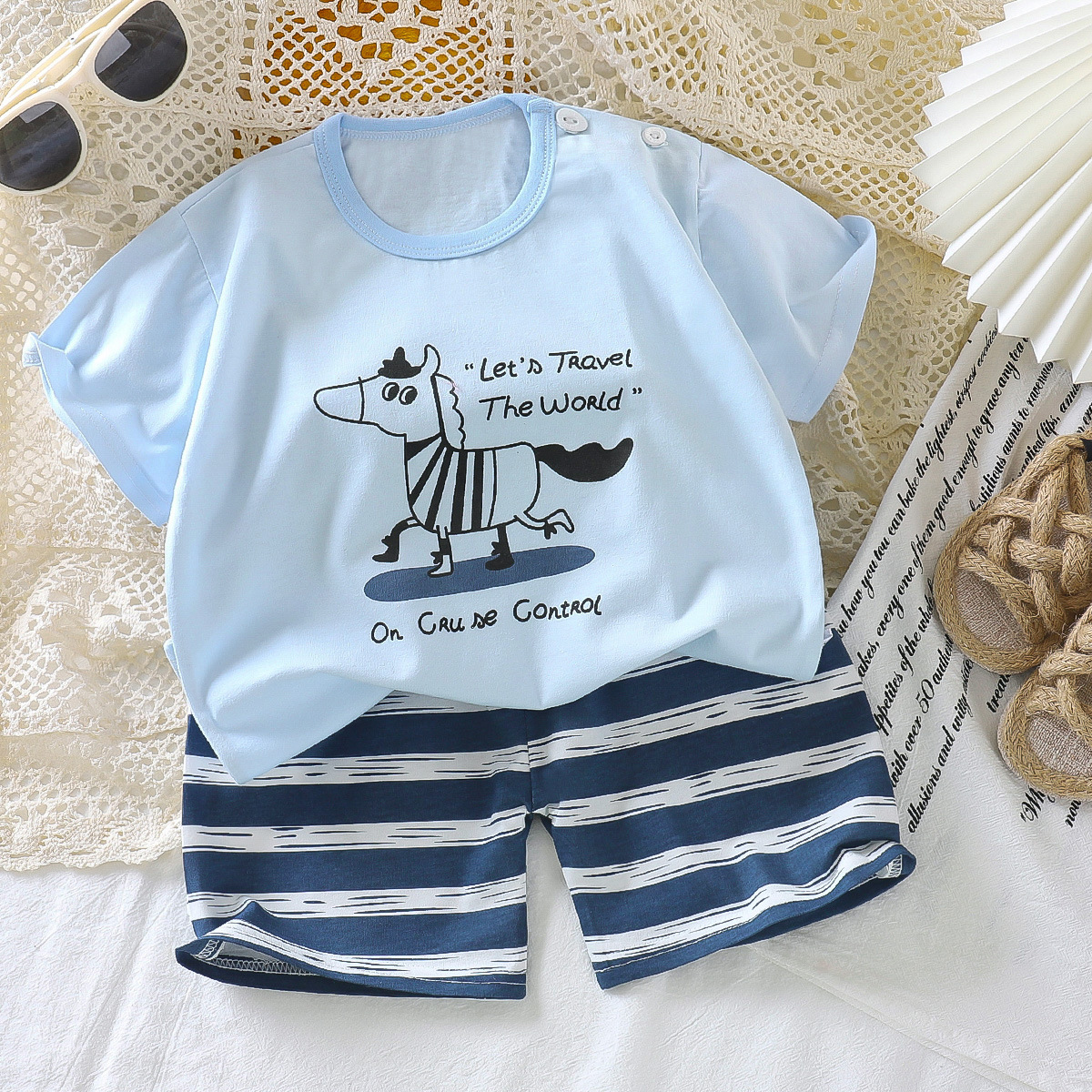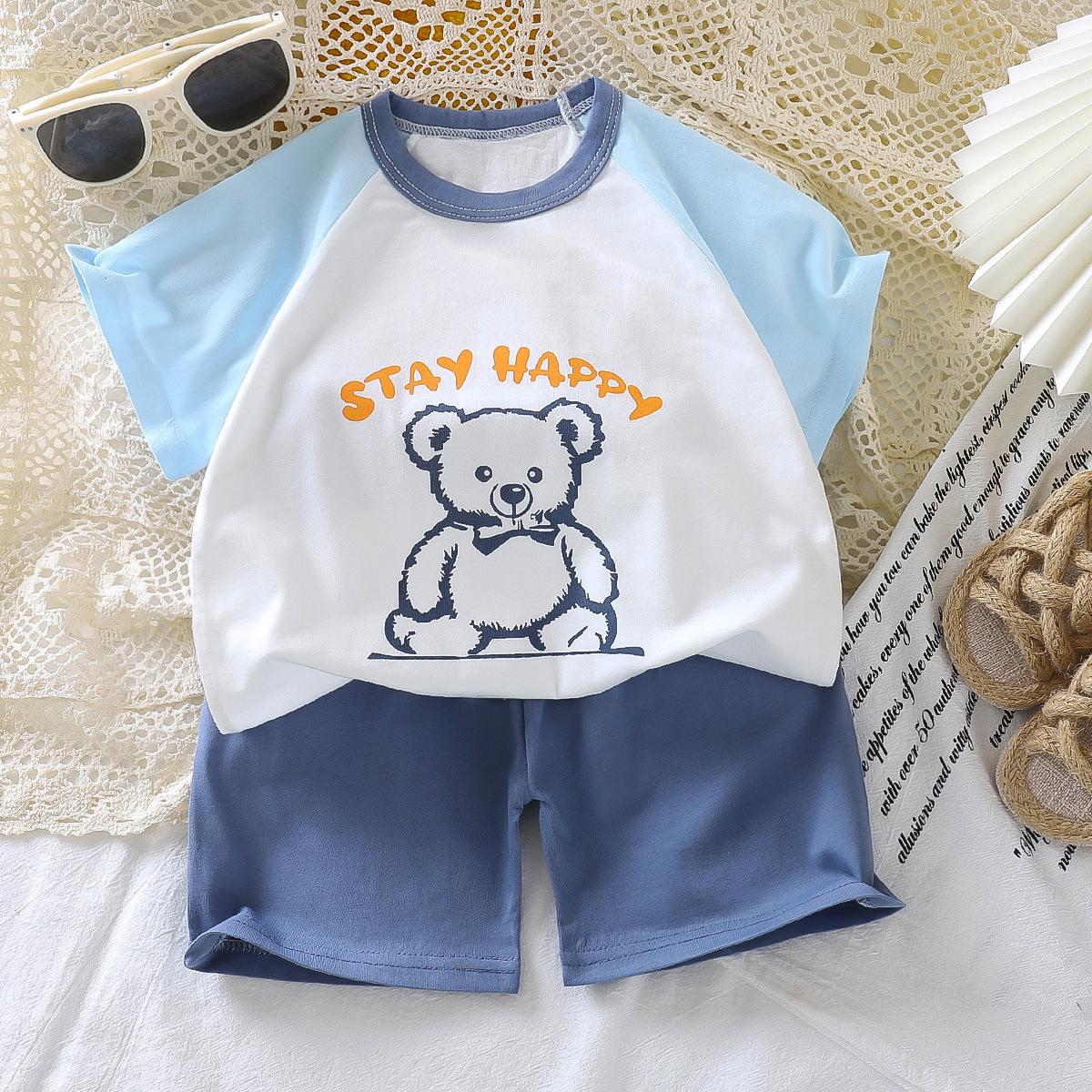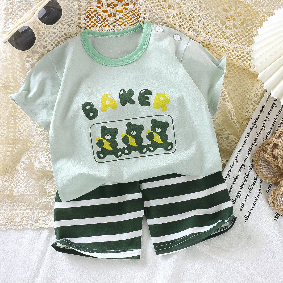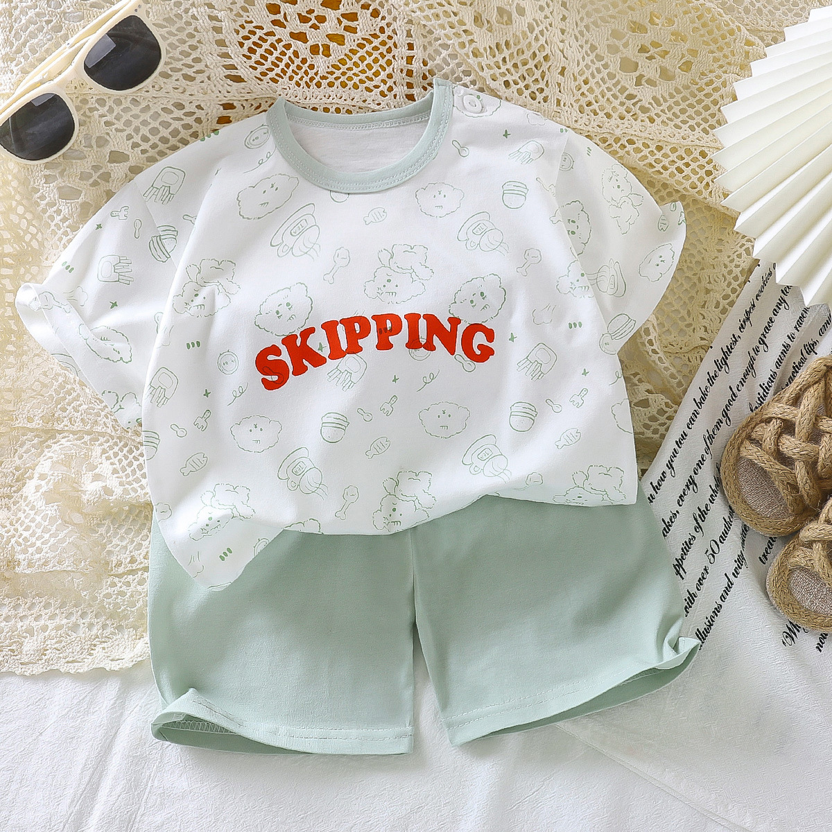 여름 어린이 반팔 세트 면화 여자 여름복 소년 티셔츠 아기 옷 한국식 아동복 반바지 세트