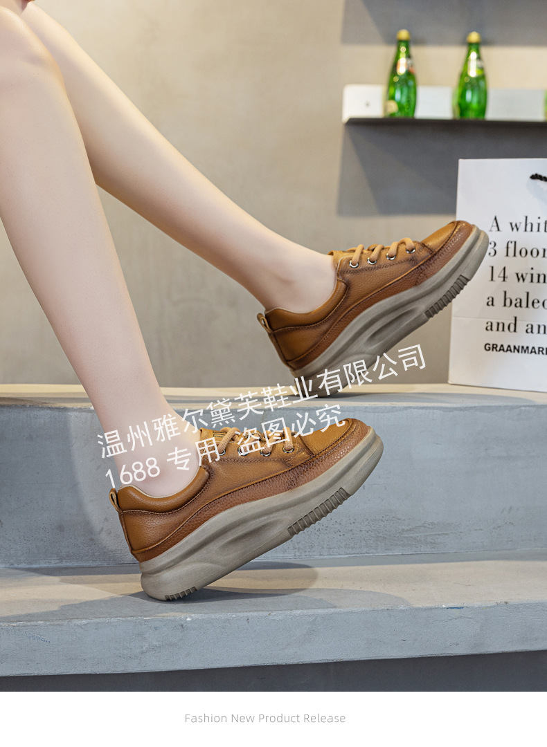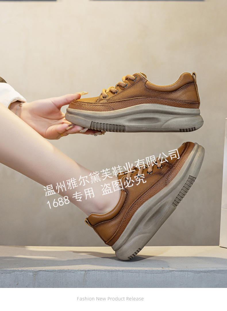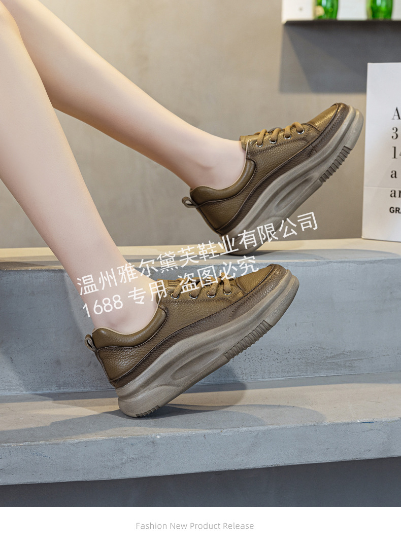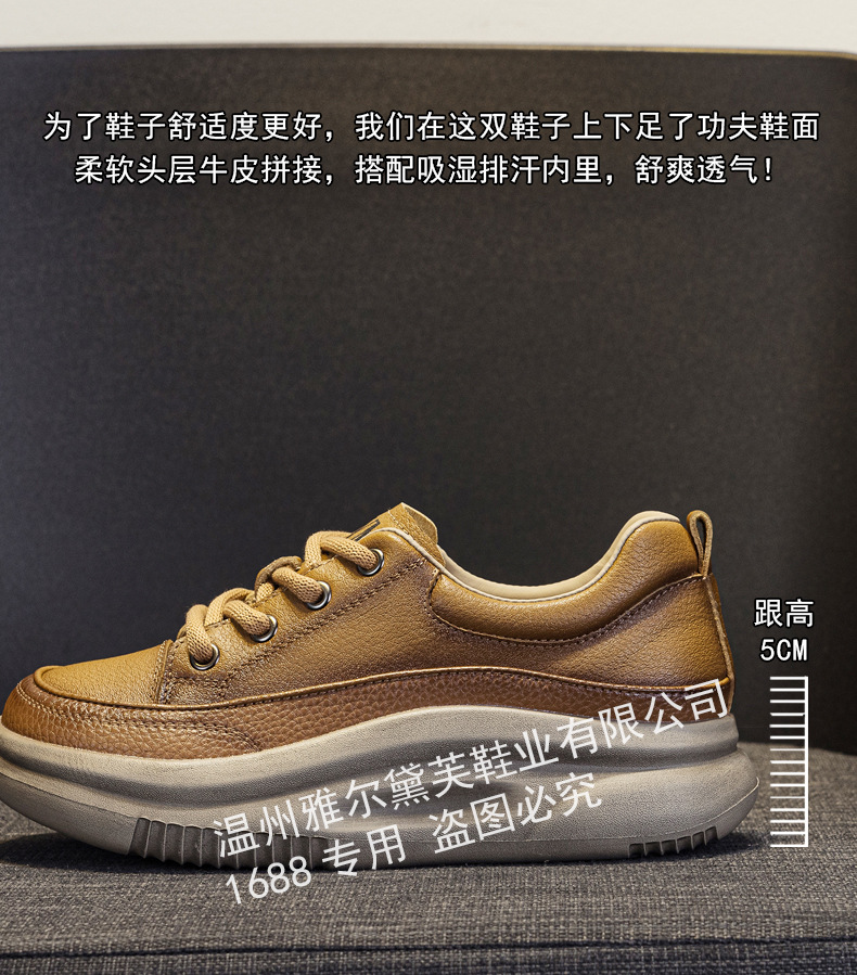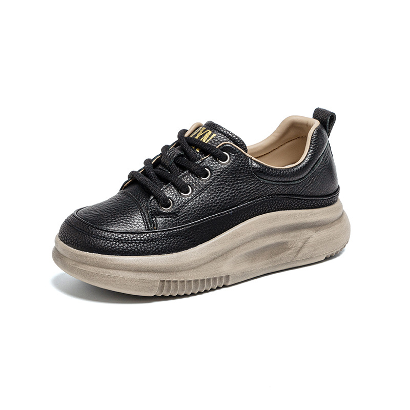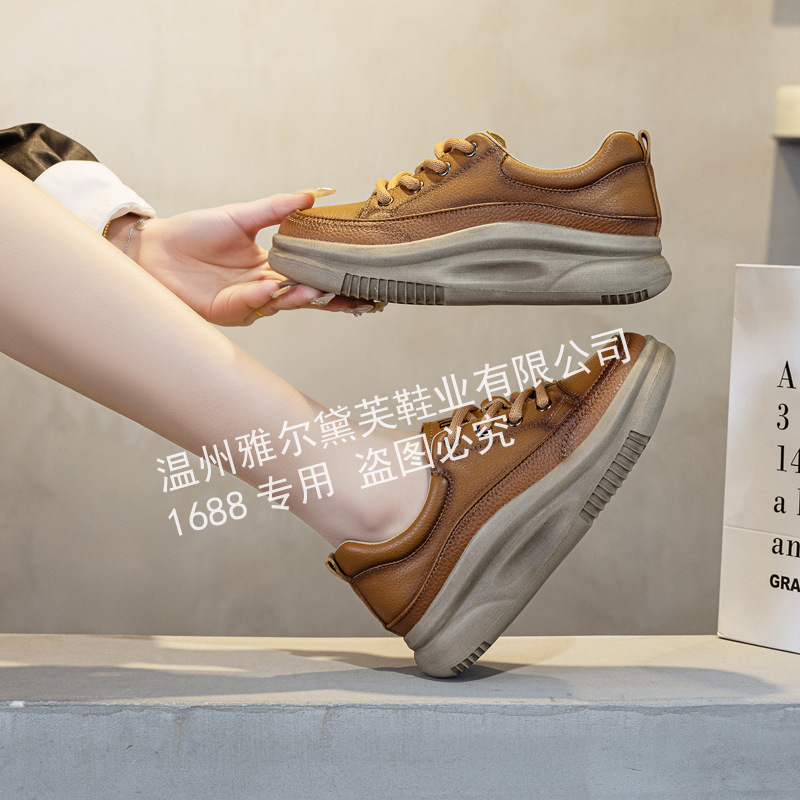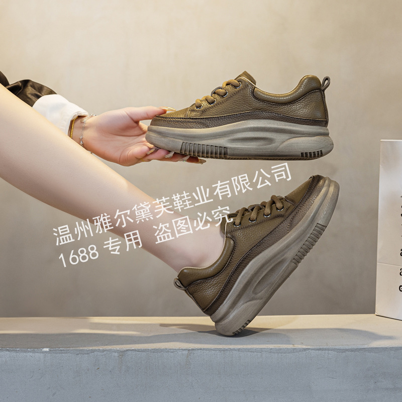 1층 소가죽 두꺼운 밑창 여성 신발 스포츠 캐주얼 신발 여성 봄 신상 다용도 통기성 레이스업 천연 가죽 여성 신발